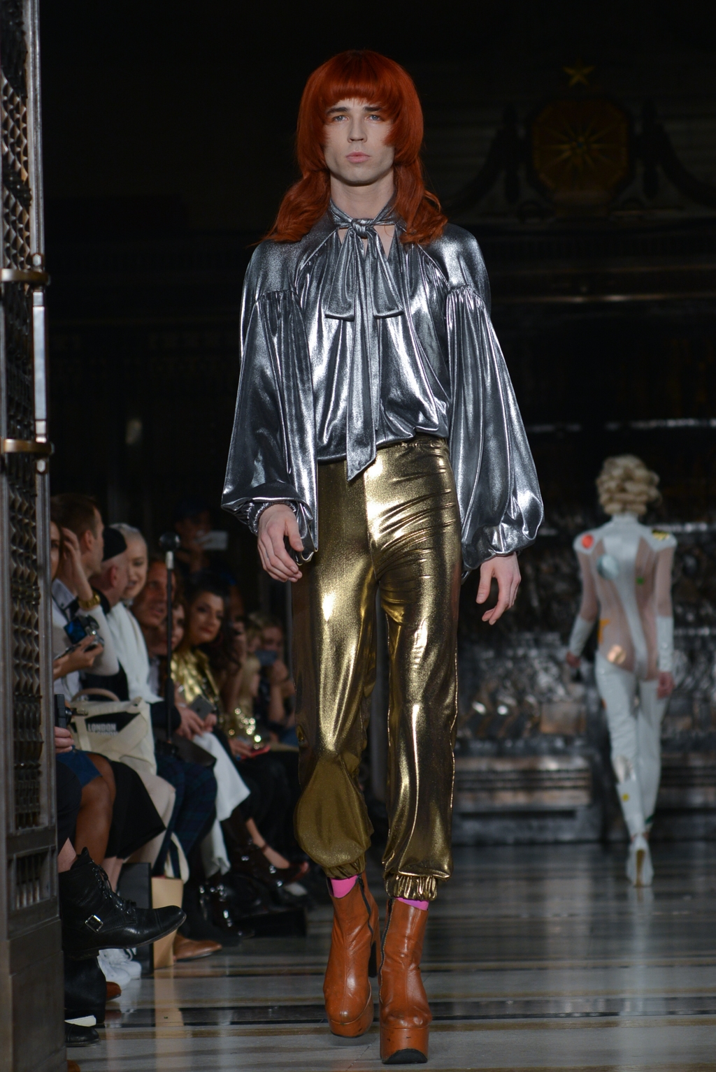 Legendary designer of rockstar status, Pam Hogg and her SS17 collection were received by an overflowing Freemasons’ Hall on Friday night.