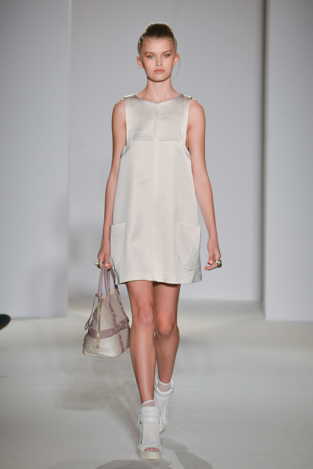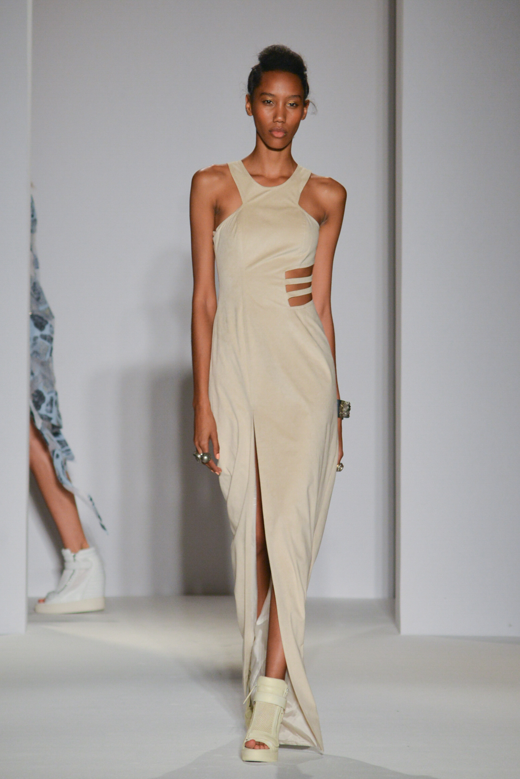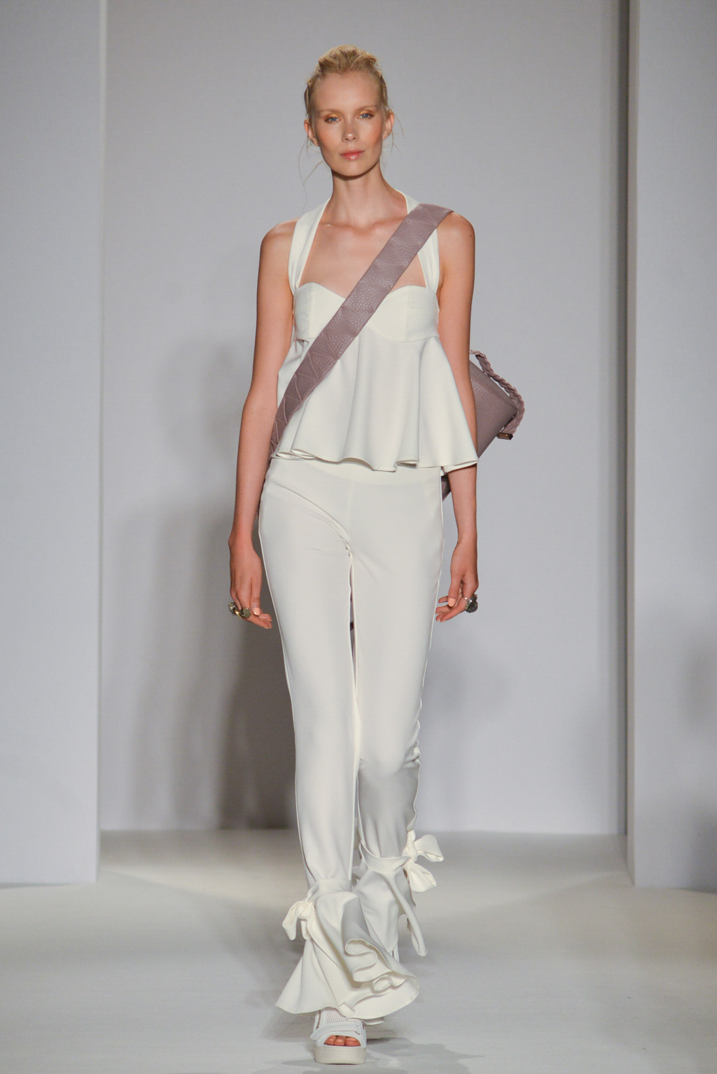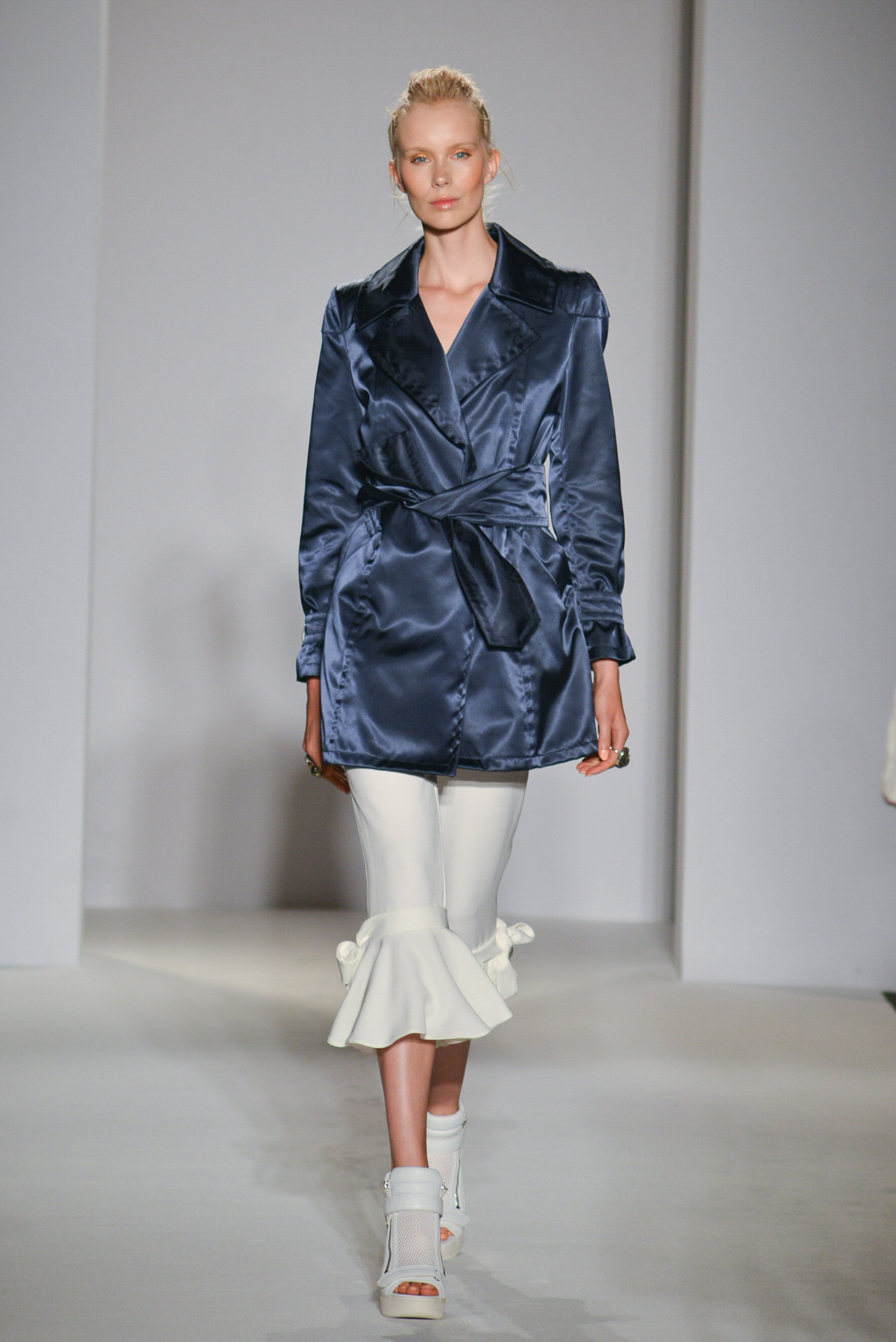 As the name suggests, the designer was hoping to restore one of our most versatile fabrics, linen, with some of its historic prominence and symbolism. Linen pieces dominated the collection in the form of white and sand-hued dresses and coats, their structured tailoring and sharply fitted shapes softened by the natural, breathable material.