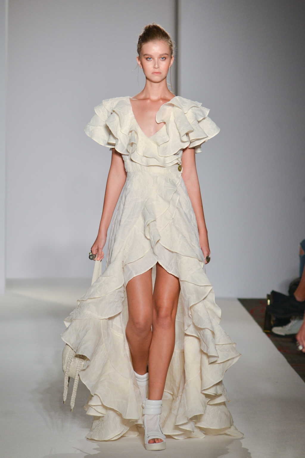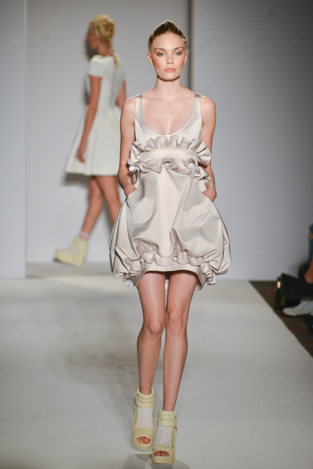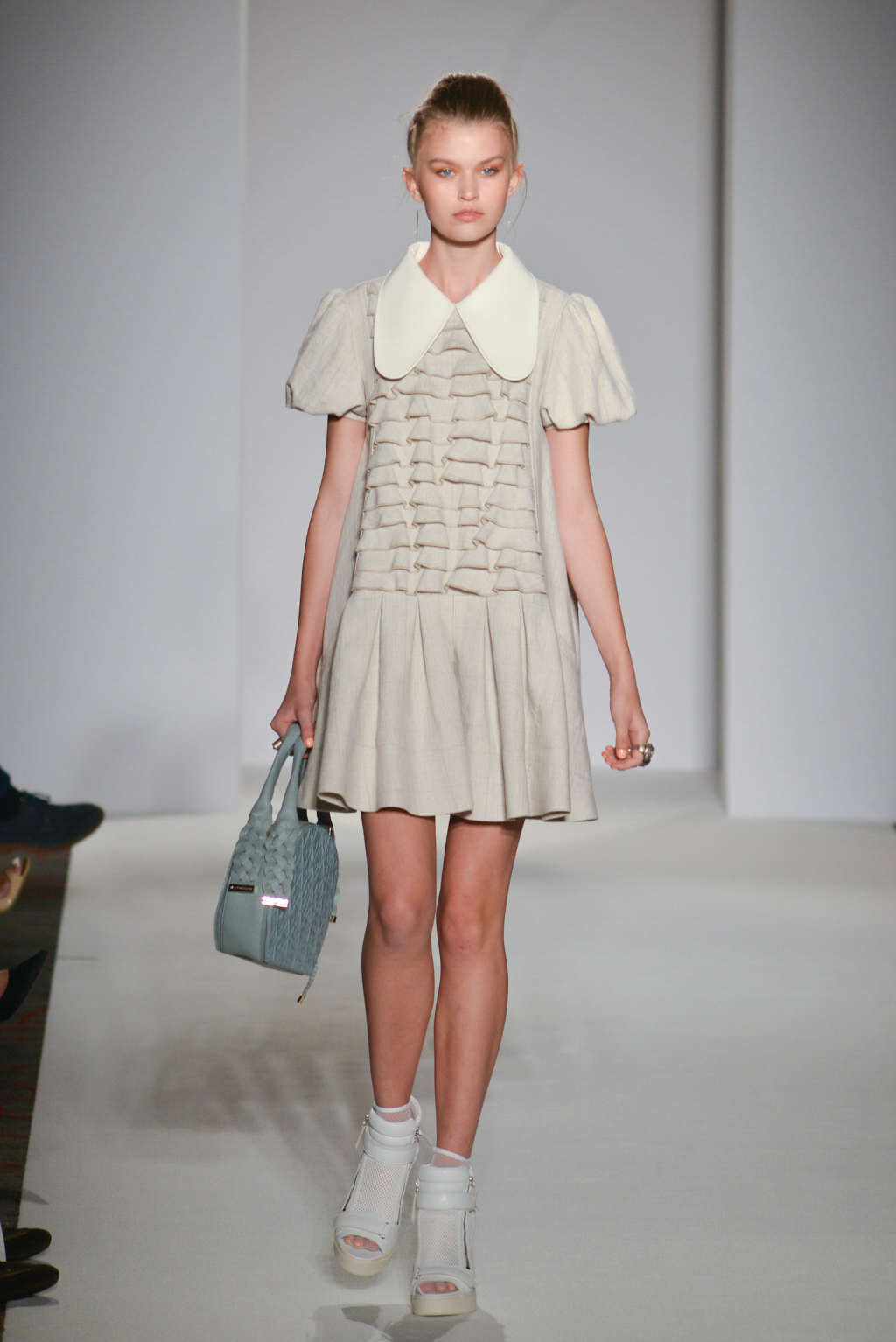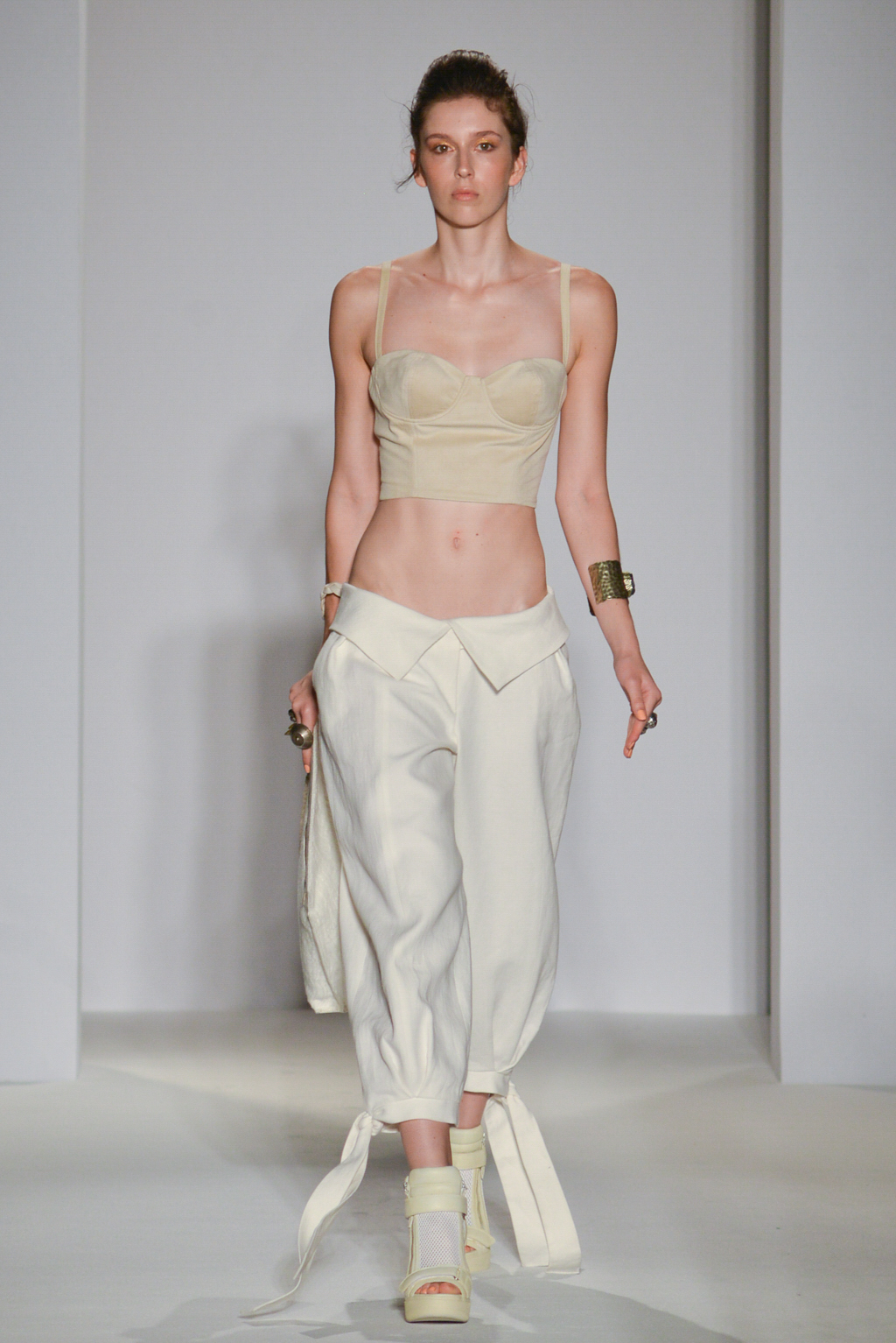 As the name suggests, the designer was hoping to restore one of our most versatile fabrics, linen, with some of its historic prominence and symbolism. Linen pieces dominated the collection in the form of white and sand-hued dresses and coats, their structured tailoring and sharply fitted shapes softened by the natural, breathable material.