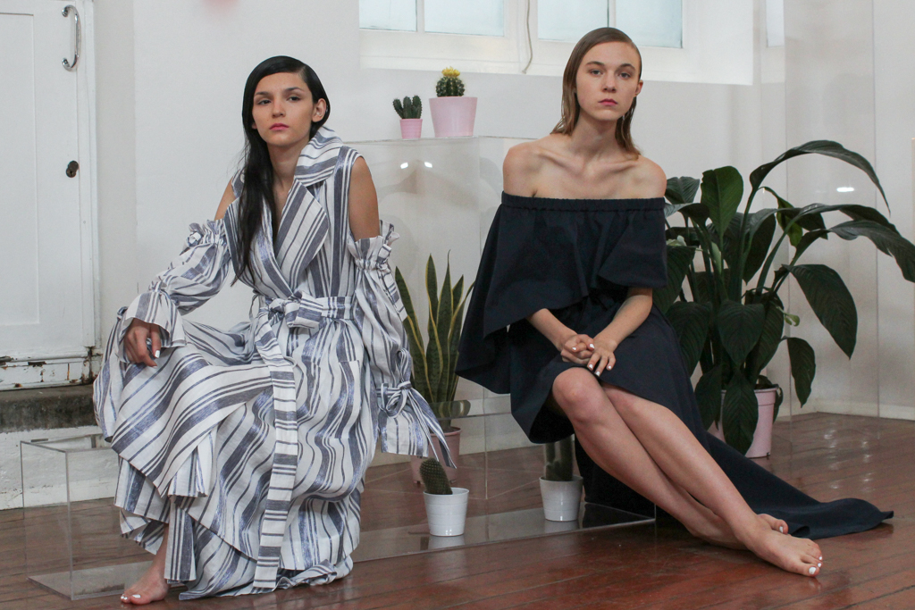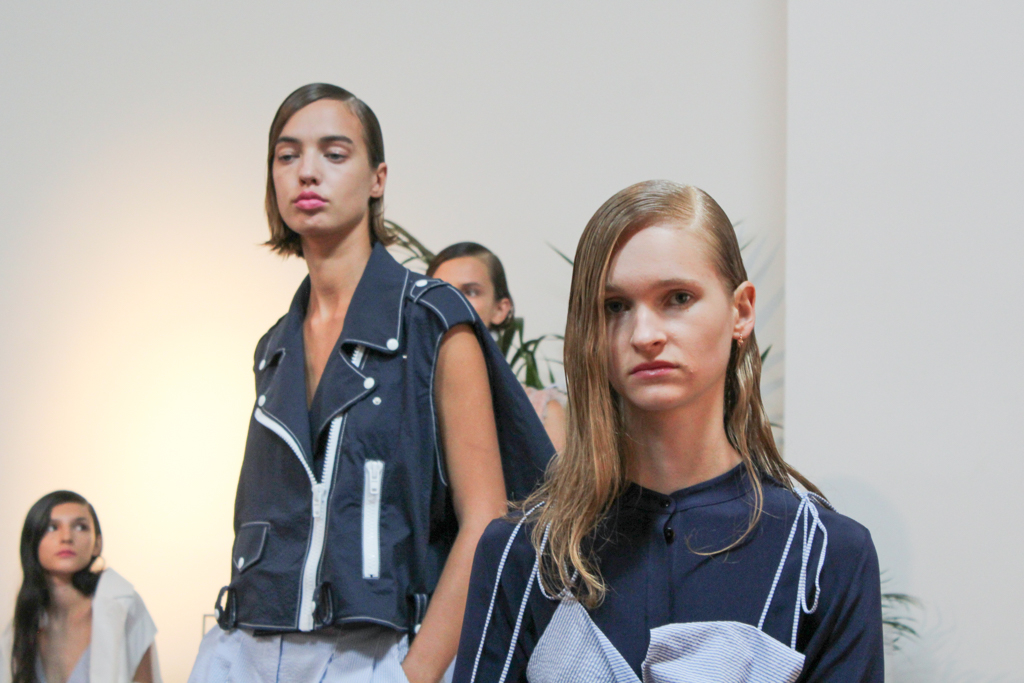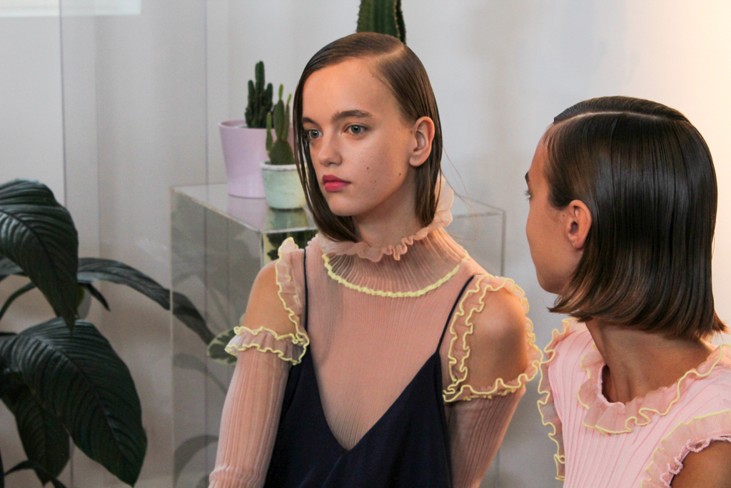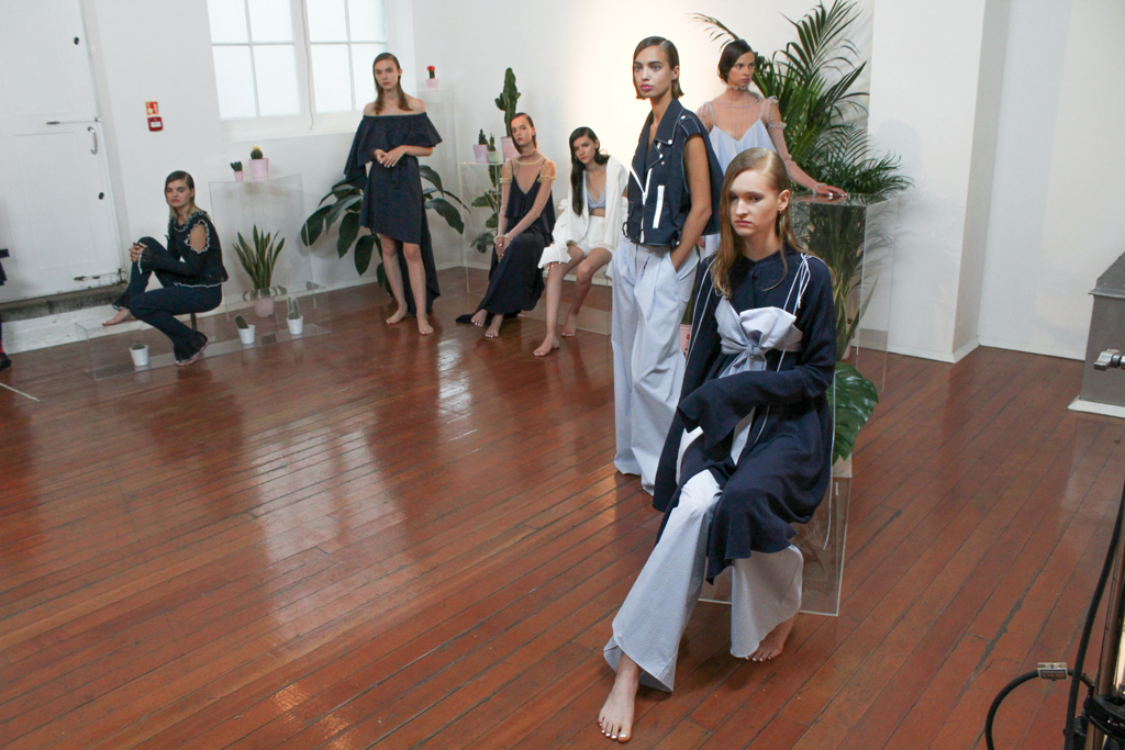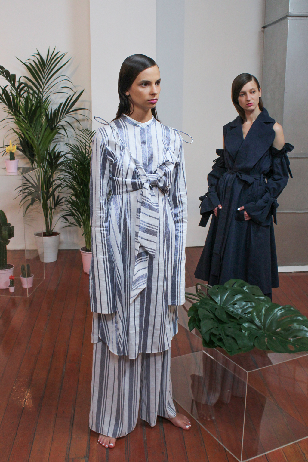 A relaxed soundtrack, cacti and a scatter of green plants stood against plain, white washed walls, providing an appropriate backdrop for the girls and doing well in not taking the focus away from them. Every ten or so minutes, one model would float away from the show space and another would appear in her place, showcasing a fresh, new look.
