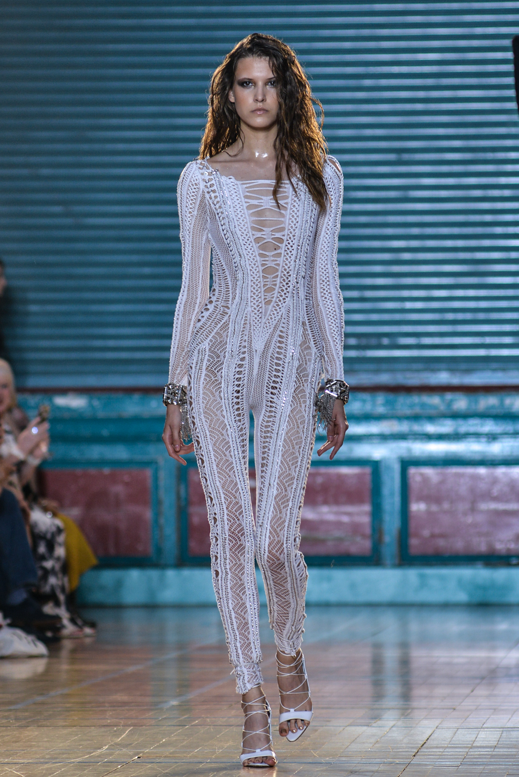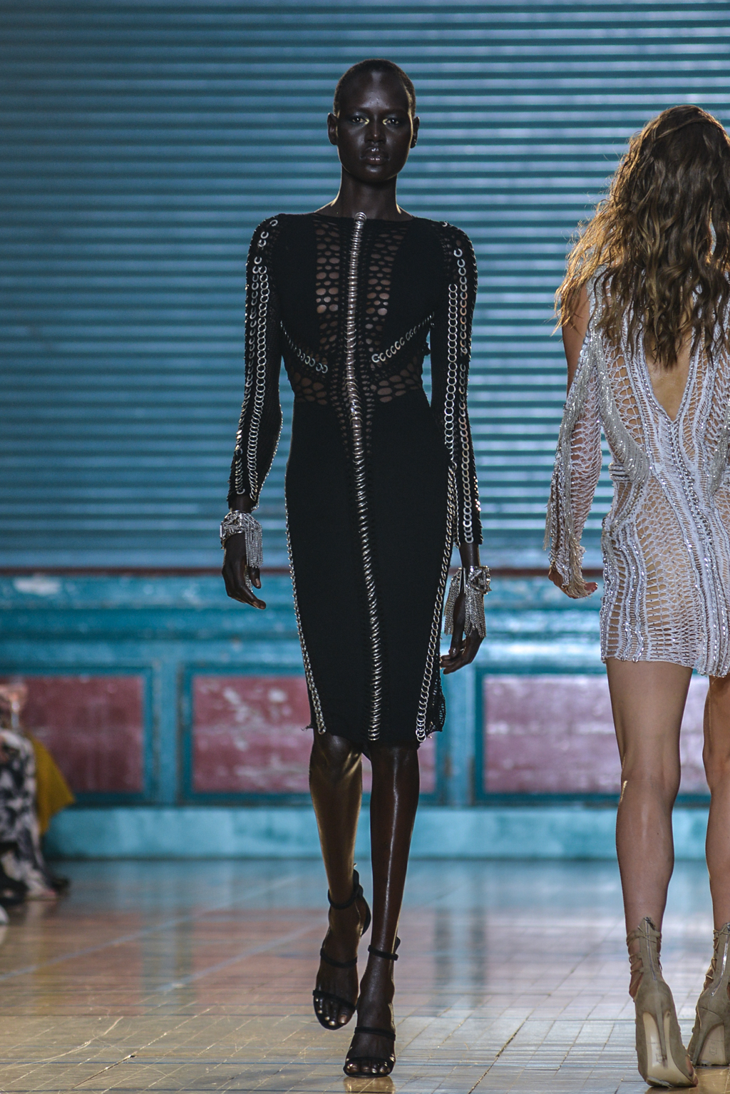 Macdonald’s hero knitwear dresses made an appearance in soft tones of gold and silver, teamed with metallic ombre fringing, acting almost like a second skin to their wearer.