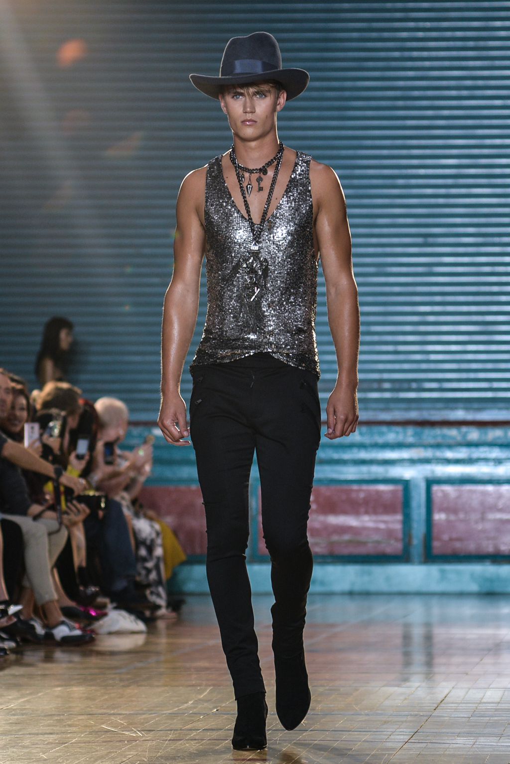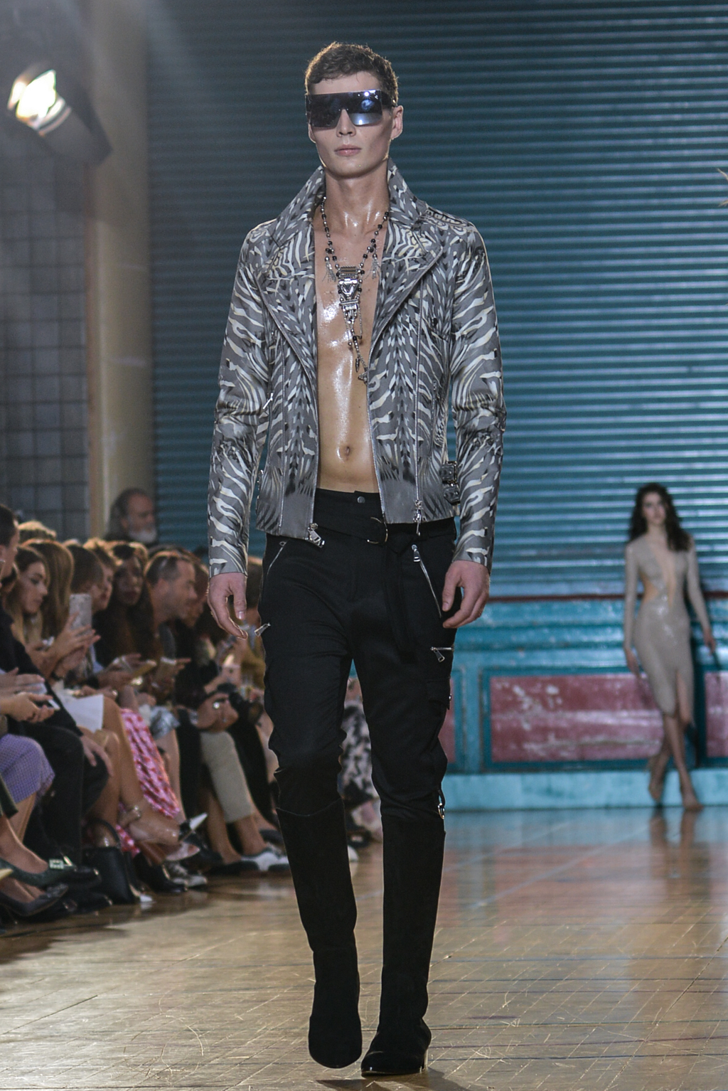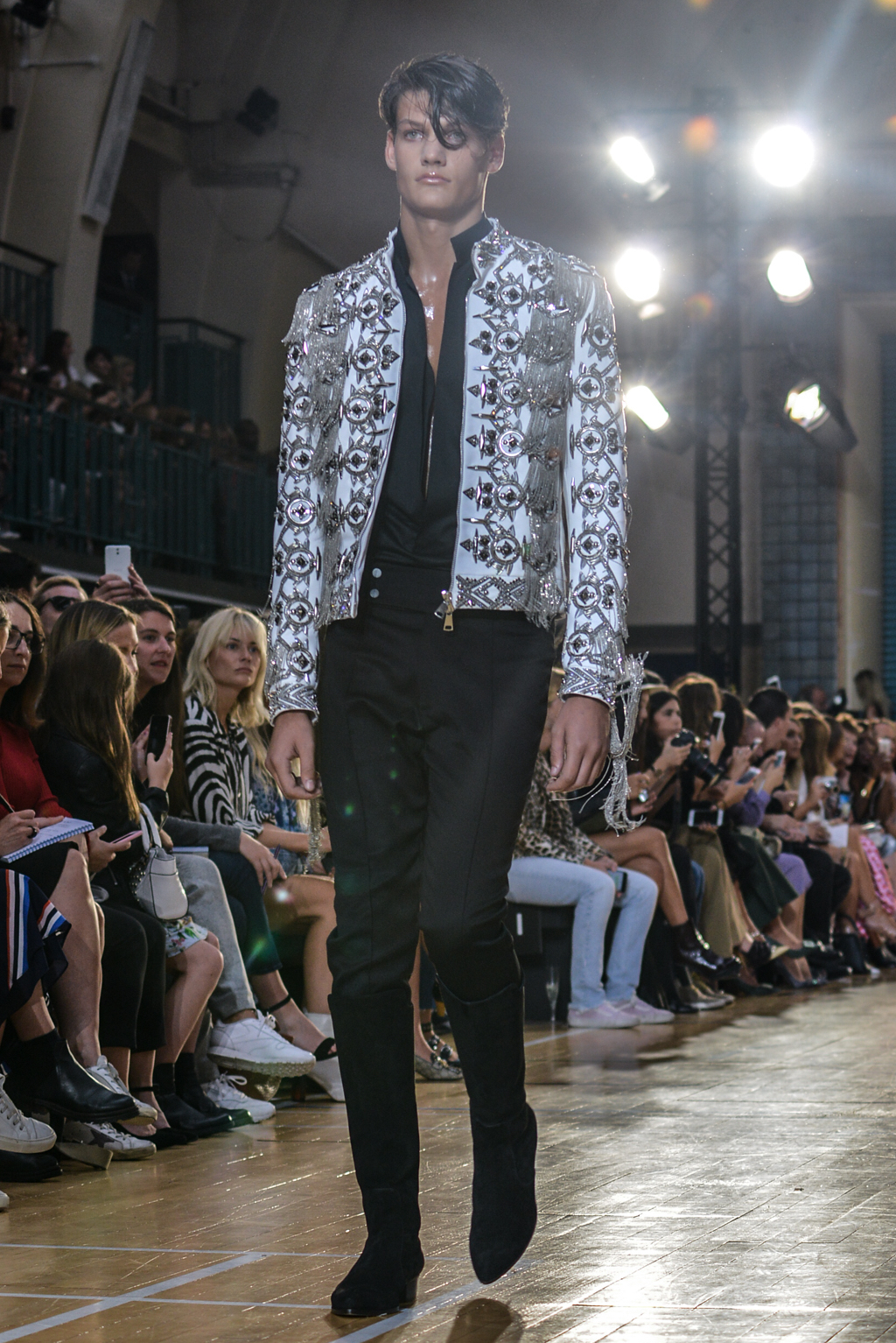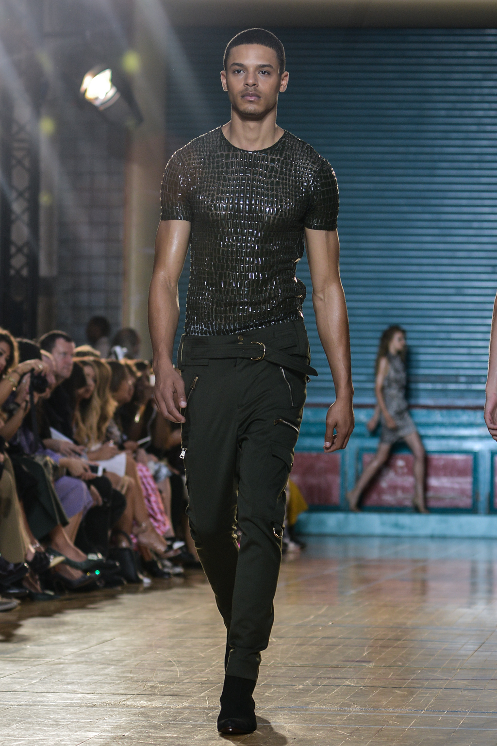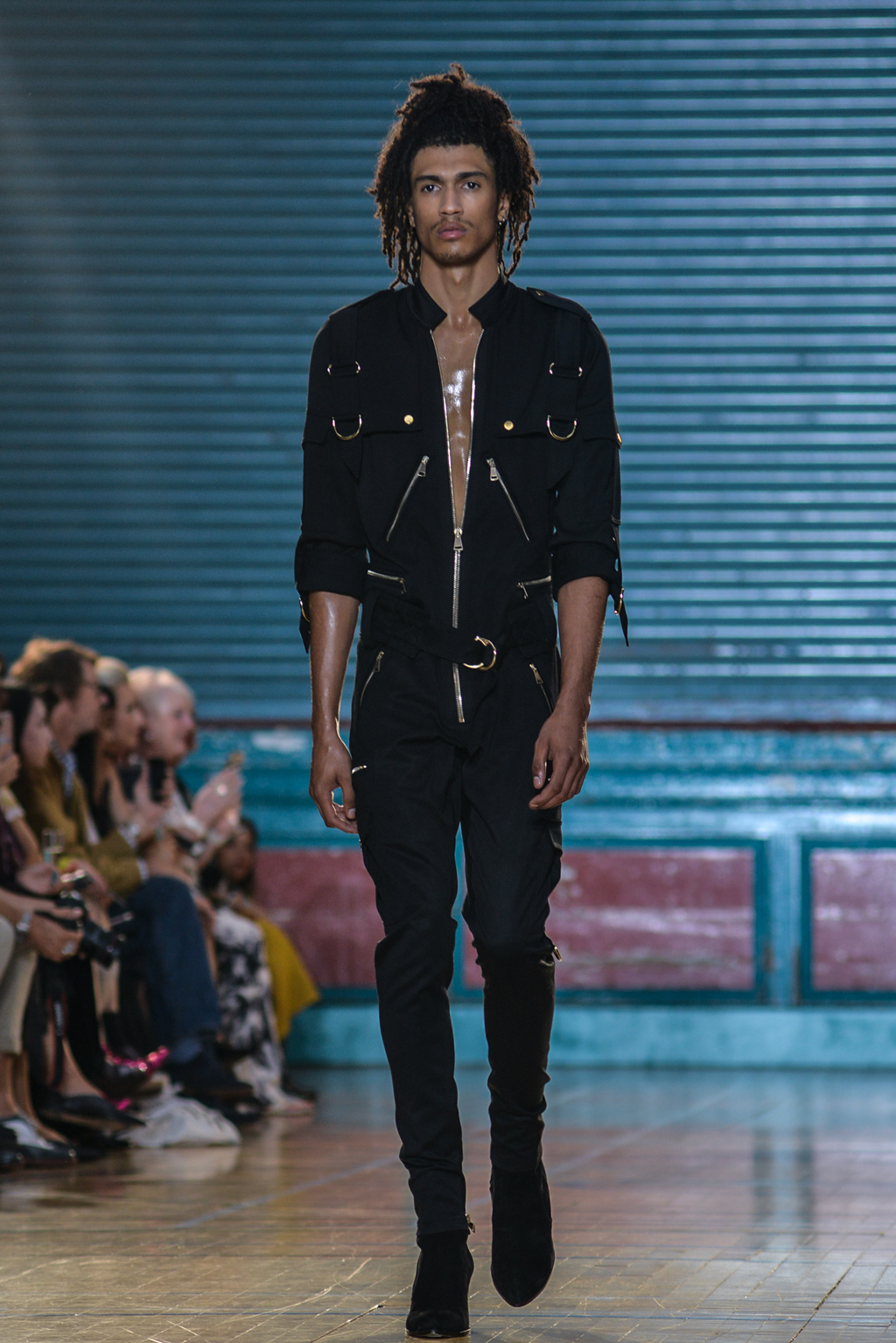 The spring/summer man drew inspiration from utility clothing, seen through modern interpretations of cargo trousers and jumpsuits in jet black, married with striking silver hardwear.