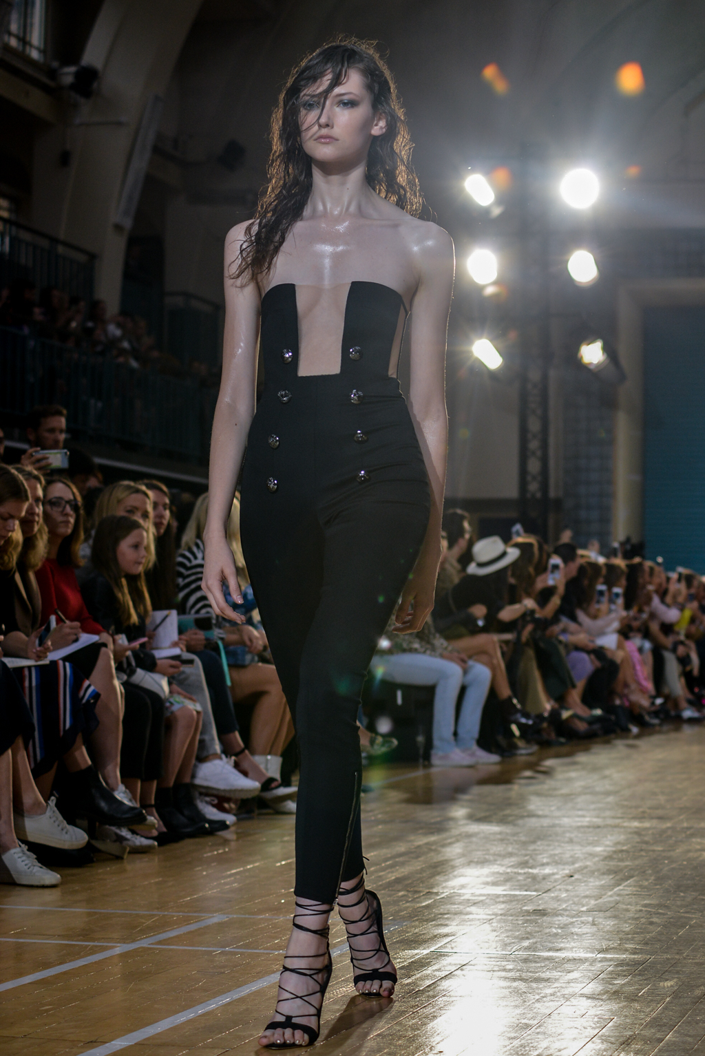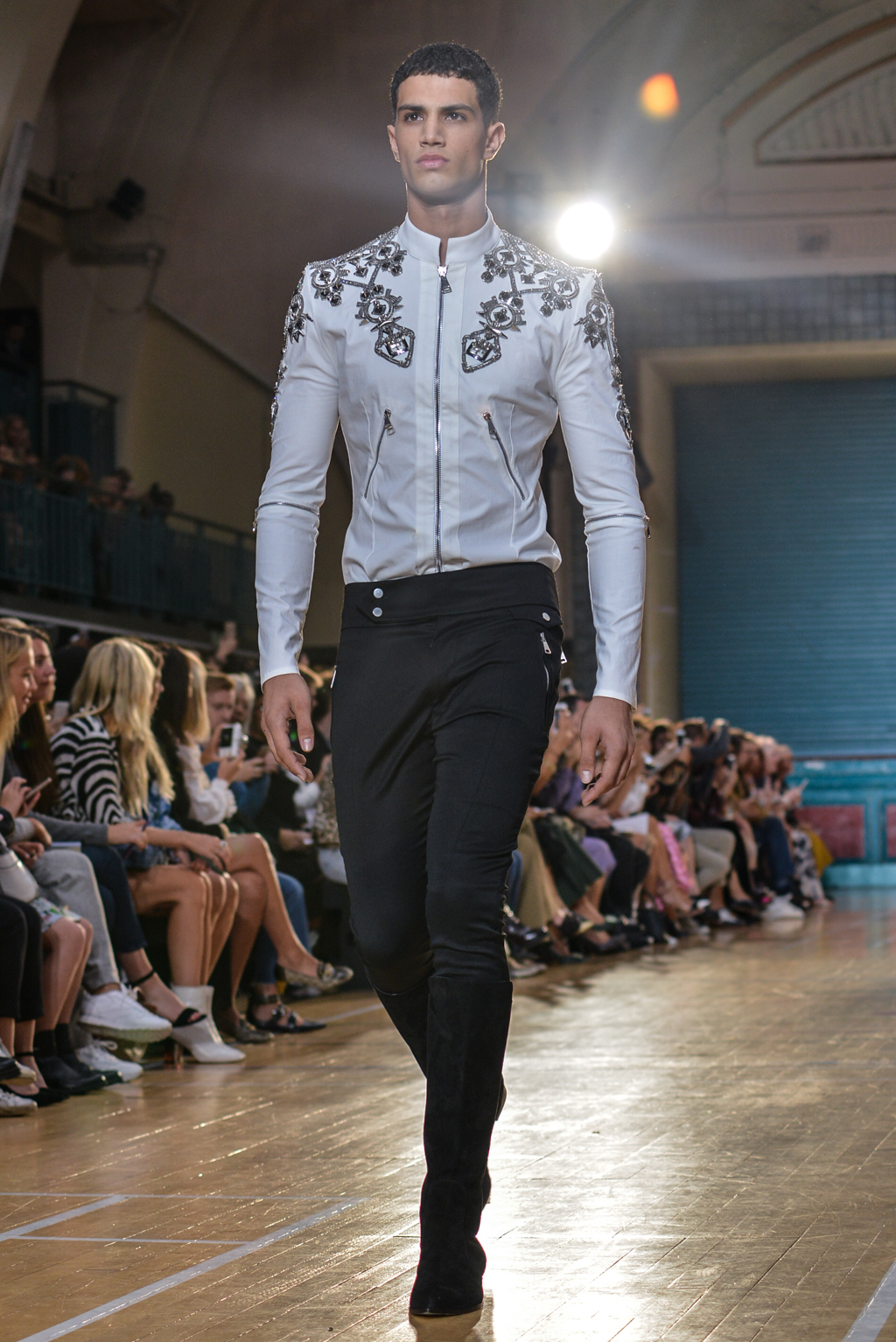 In true Julien Macdonald style, the designer closed the runway by joining his models on stage to a much-earned rapturous applause.