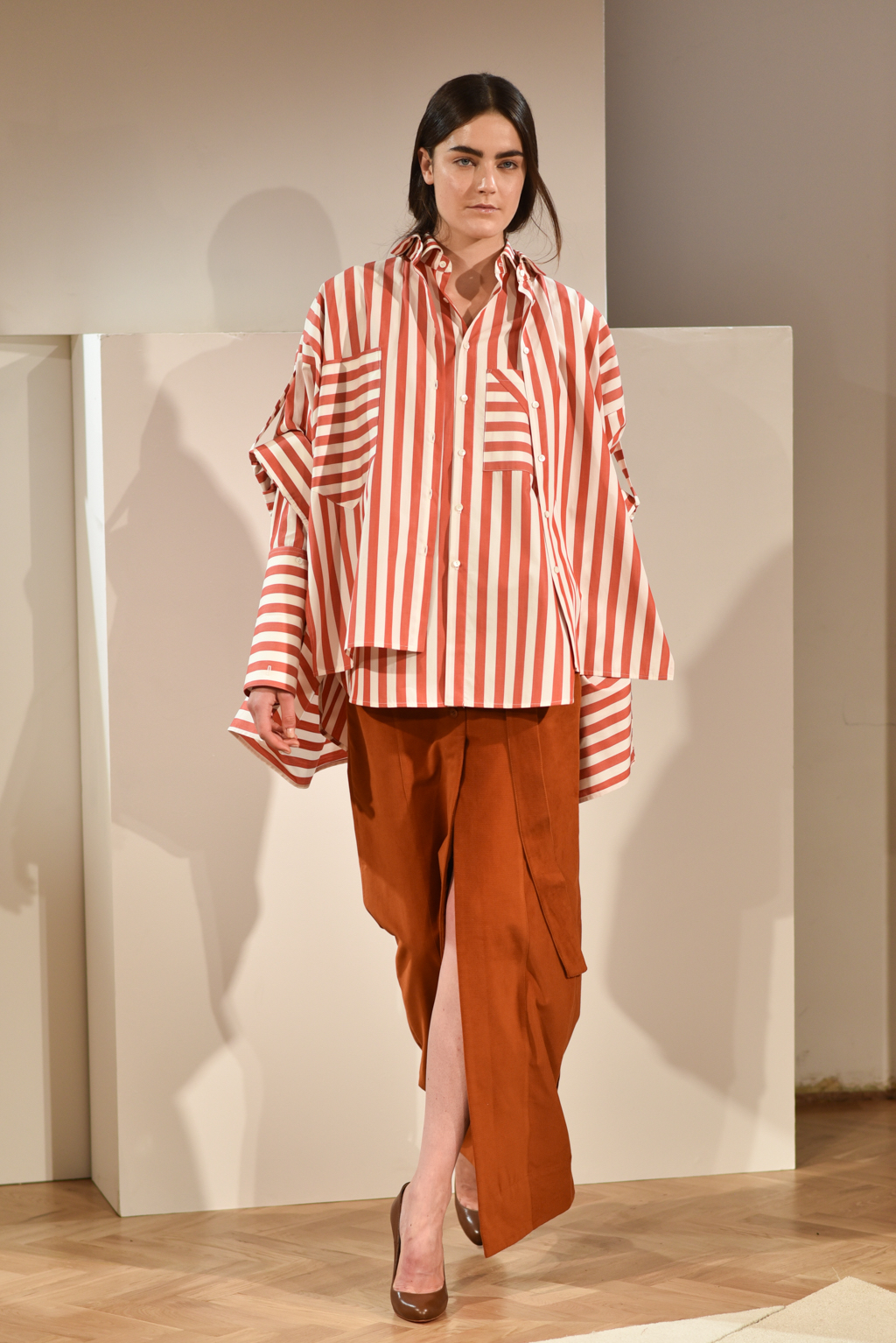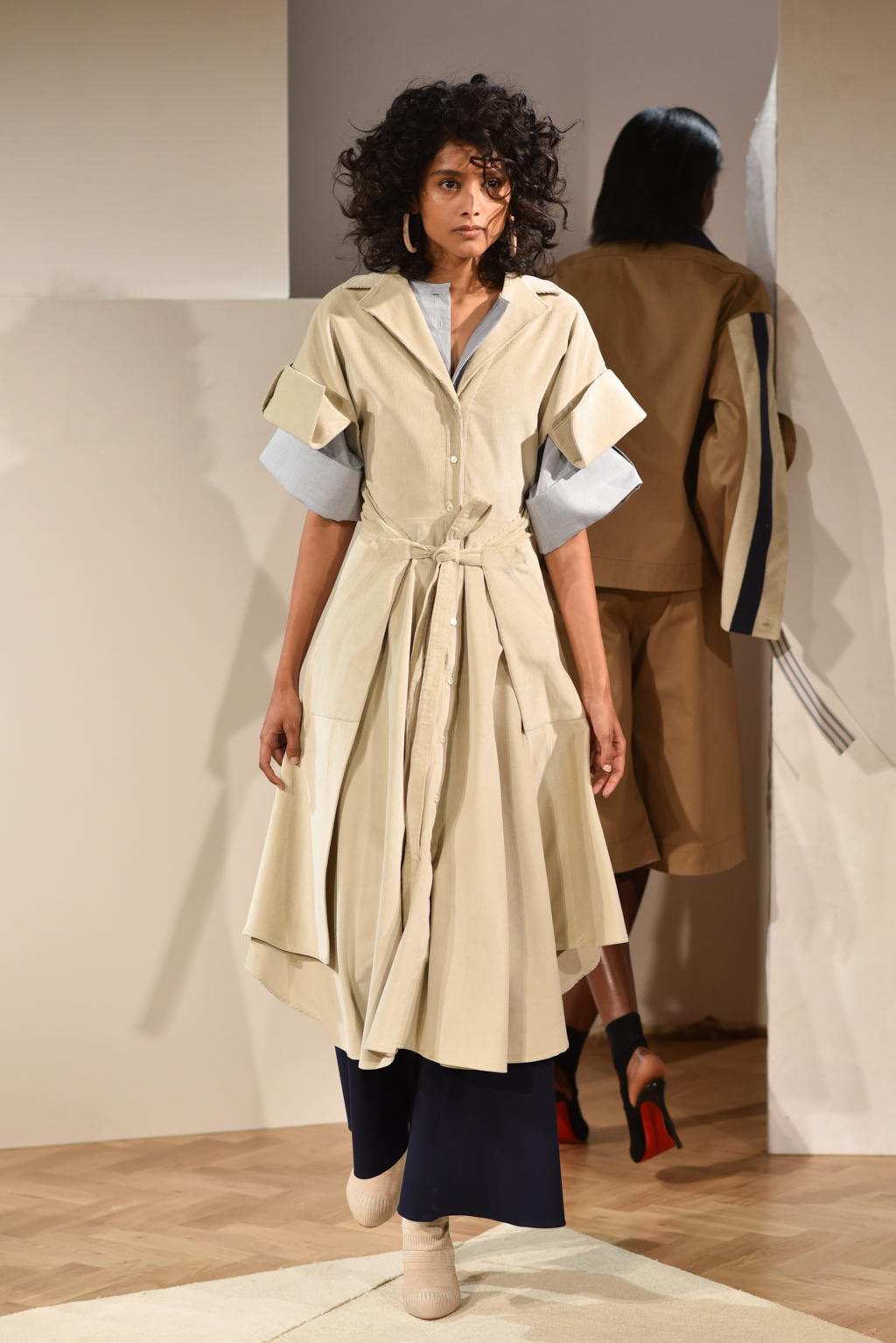 Playing around with the notion of freedom, the spring/summer 2017 collection incorporated joyous volume and exaggerated proportions. Long, loose silhouettes dominated with asymmetric sleeves and oversized cuffs, completed with wide belting to cinch it all in.