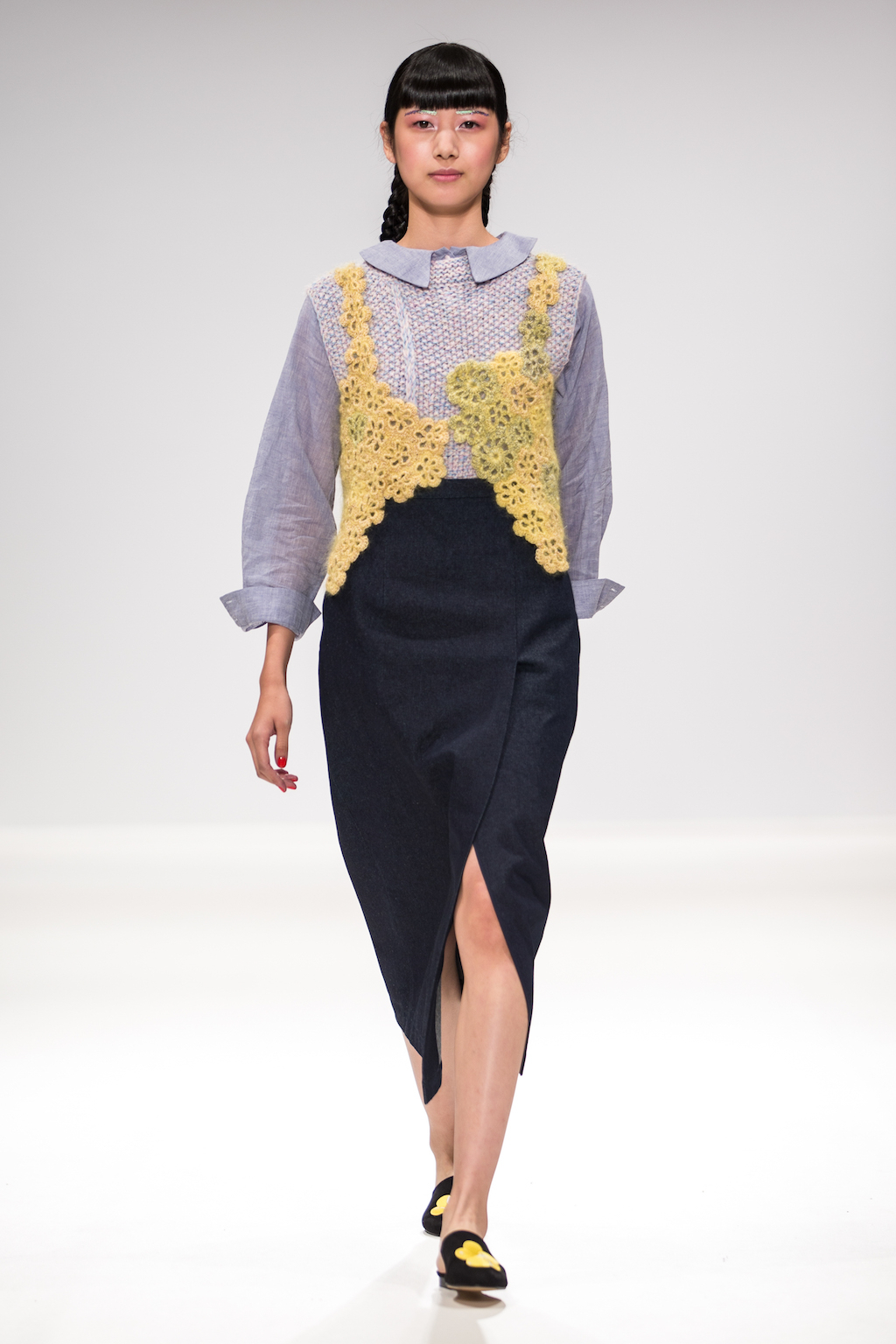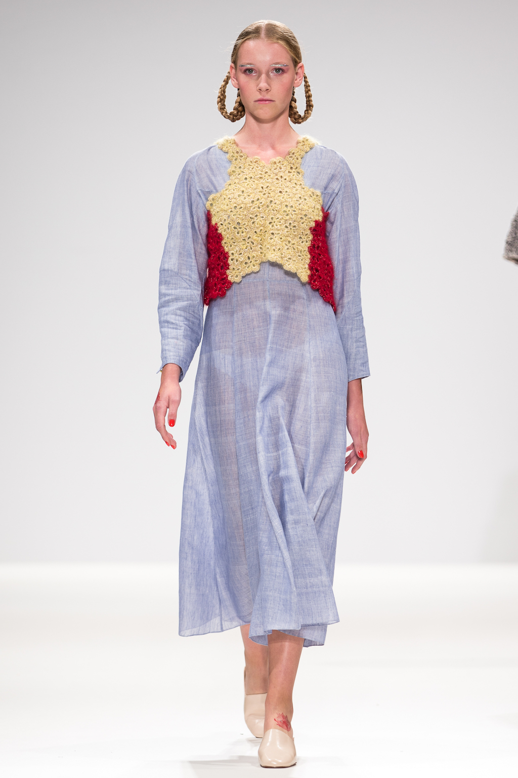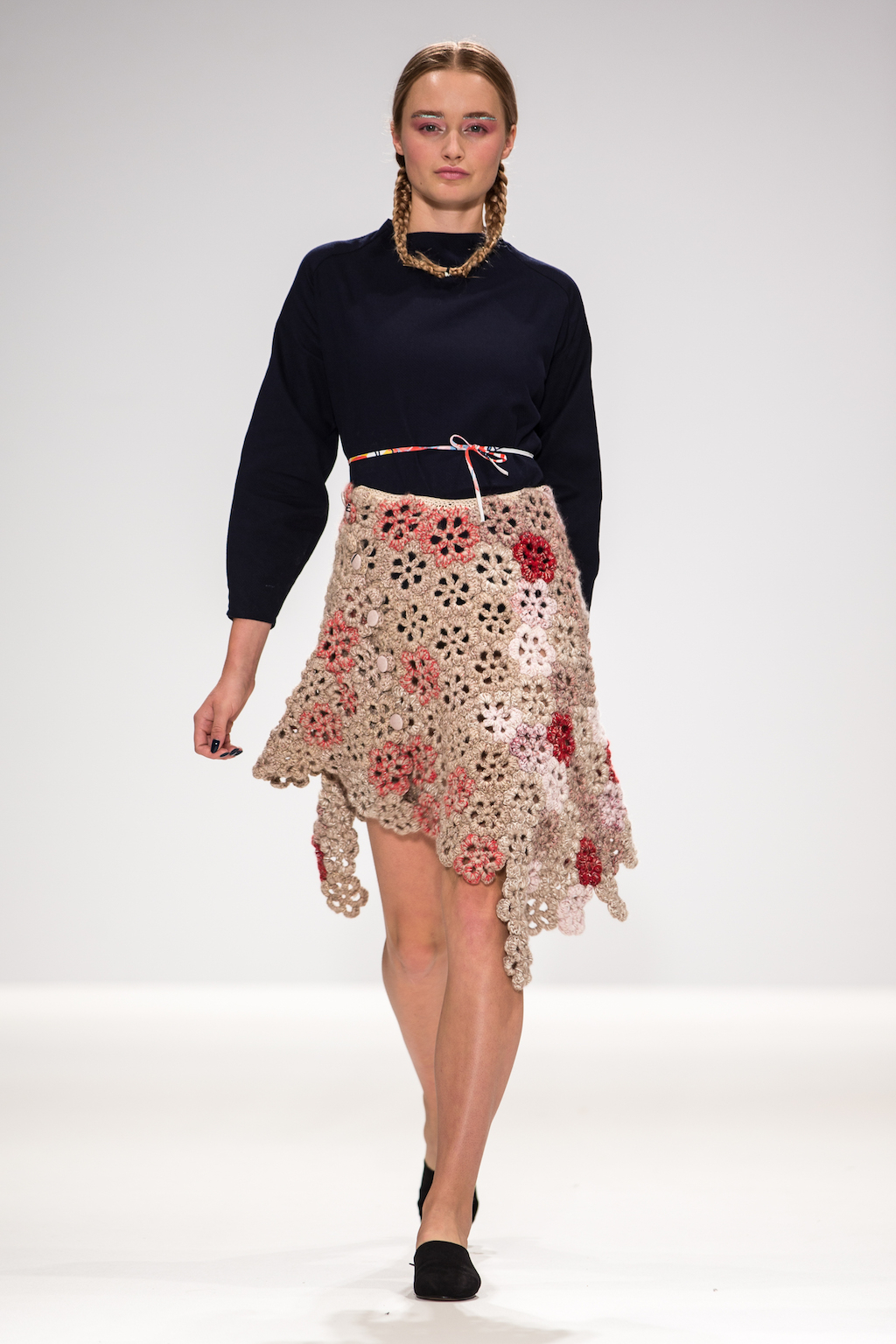 Aside from the beautiful needlework, Sabinna also showed off her ability to integrate feminine tailoring into her work, to create wearable but interesting cuts. Asymmetric dresses used different coloured panelling and boxy jackets had sections removed and crochet flowers added.
