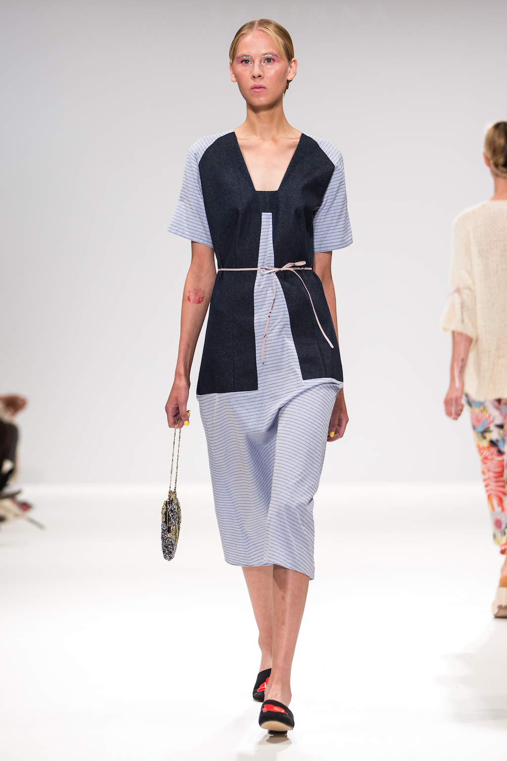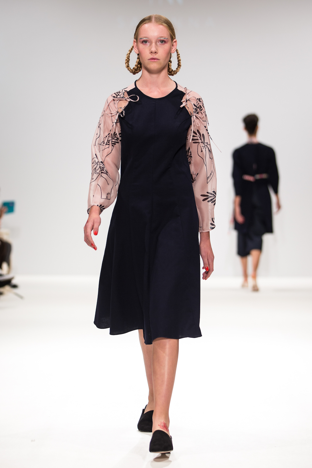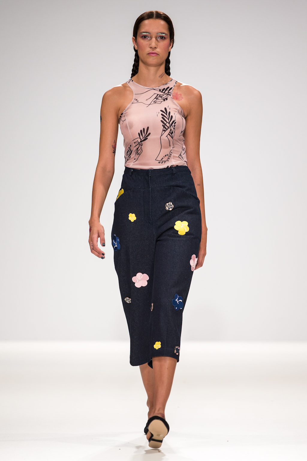 In and amongst the glitter eyebrow makeup, pin badges and cropped tops, as the lights dimmed and models took the stage you would have been forgiven for thinking that you had fallen backwards into a copy of Bliss. Sabinna’s SS17 collection, Kinder Karussell, does dabble in the styles prevalent during her childhood, as she explores that stage between infancy and adolescence.