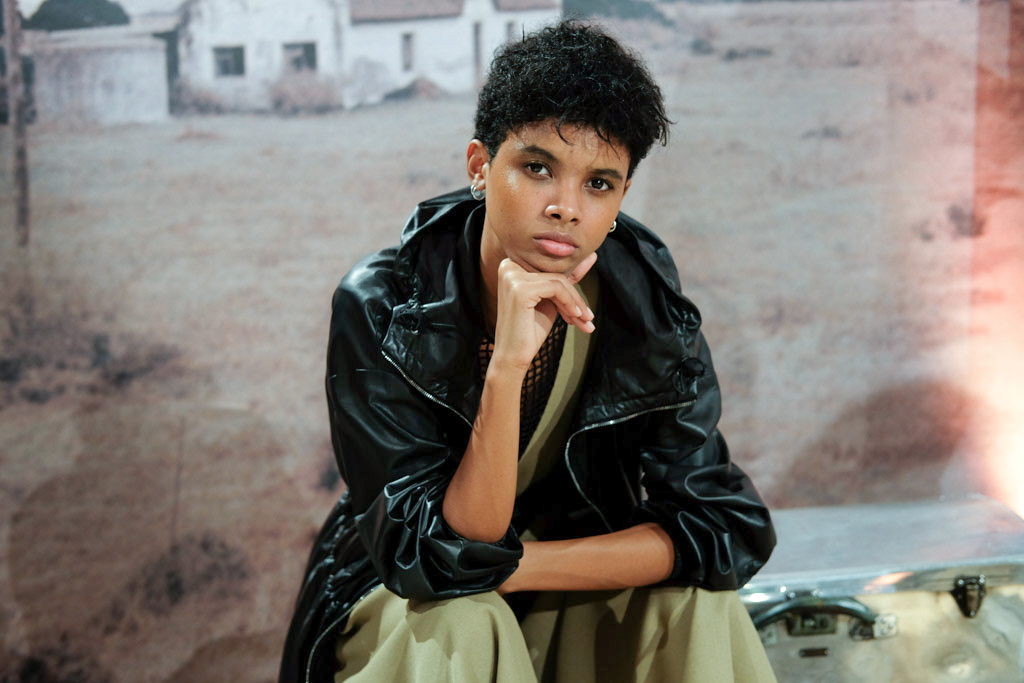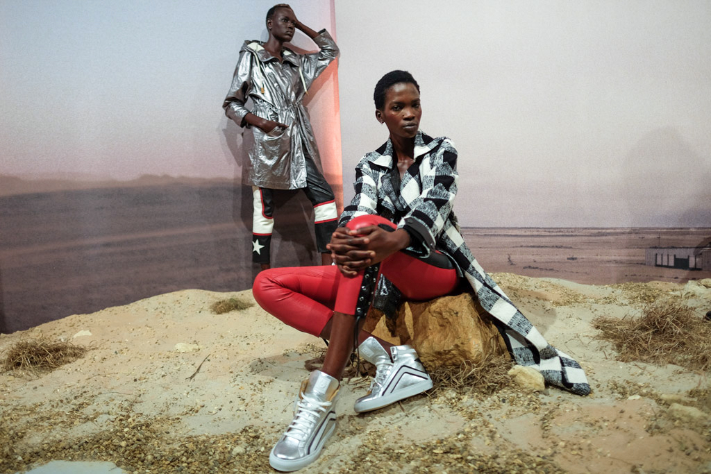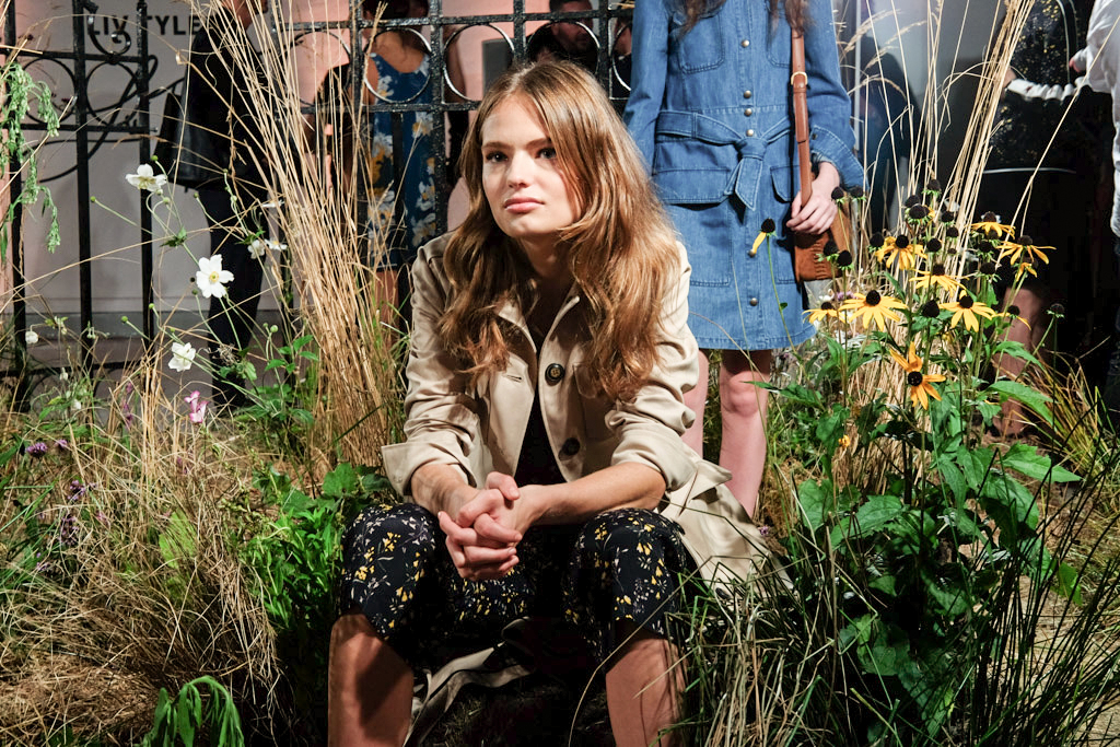 Also on display were four looks from the men’s collection, which reflected the themes of the women’s range with faded, vintage-esque pieces alongside moto-inspired elements.
