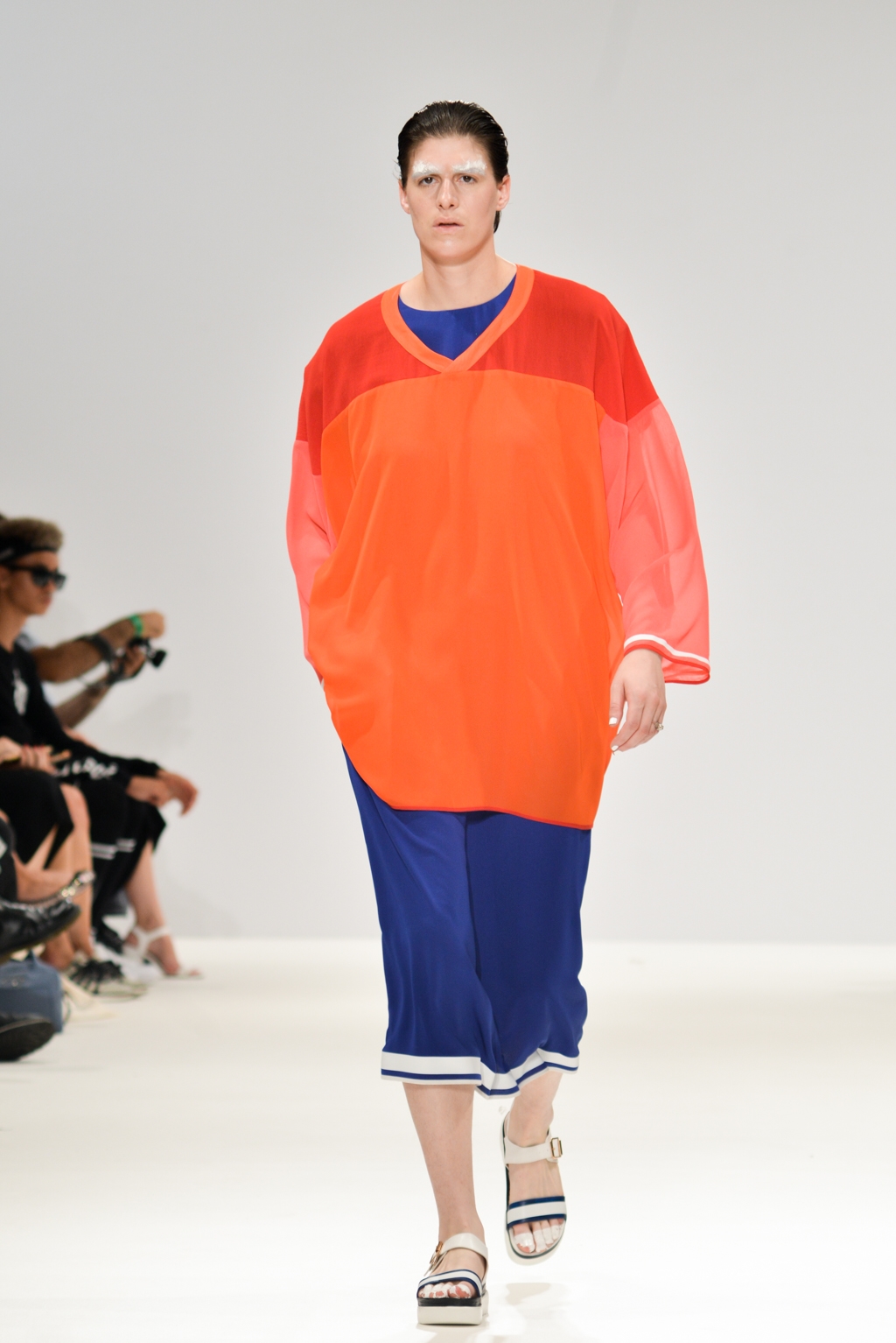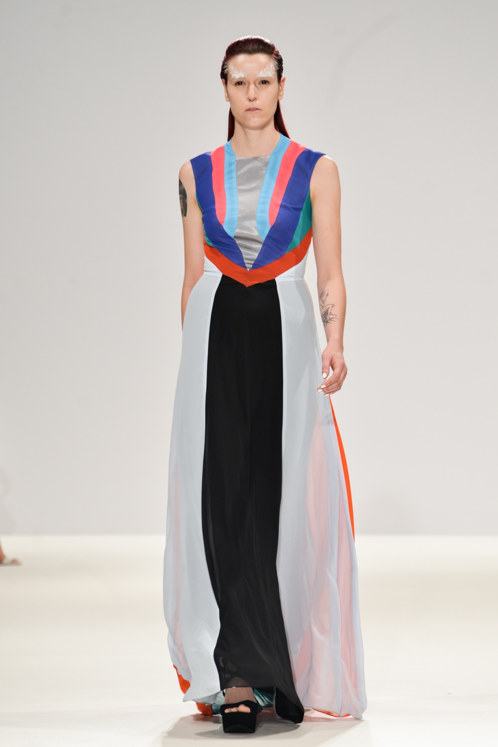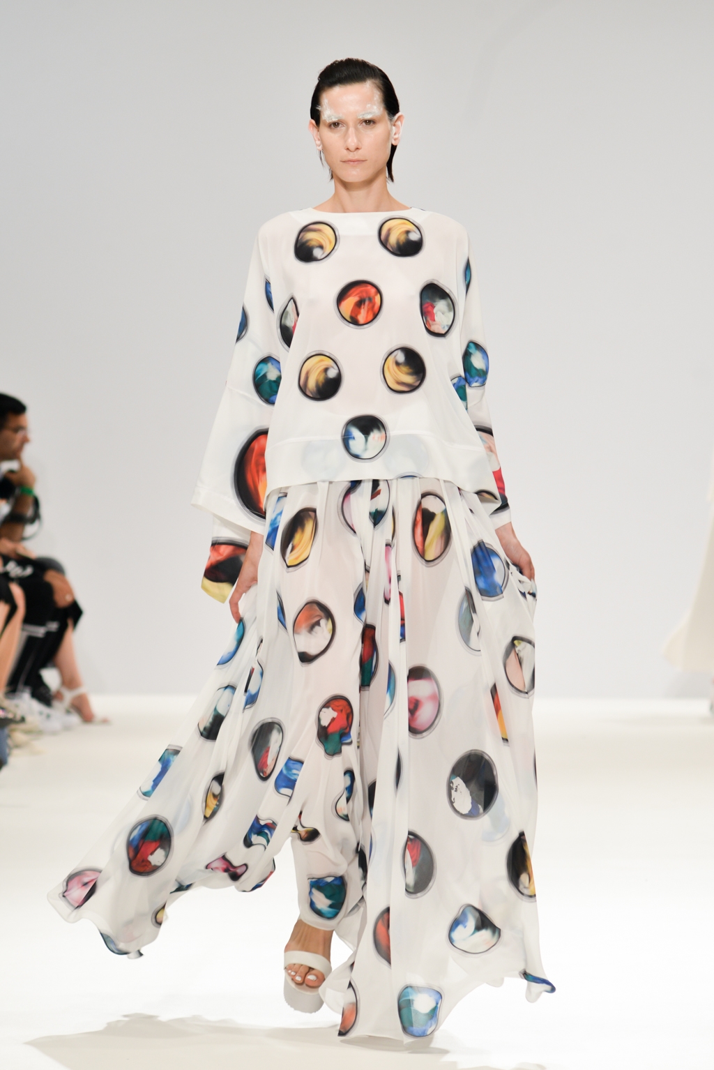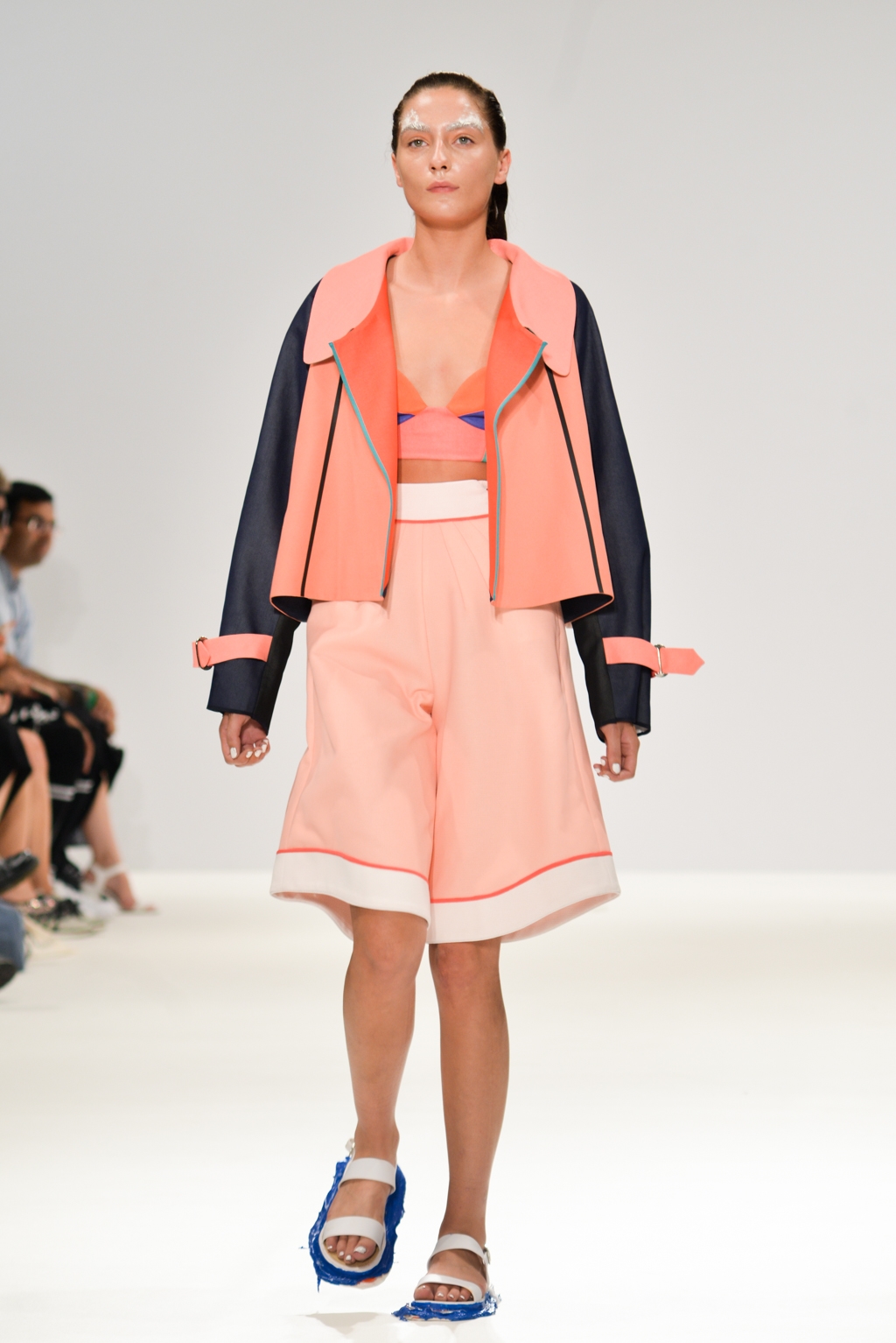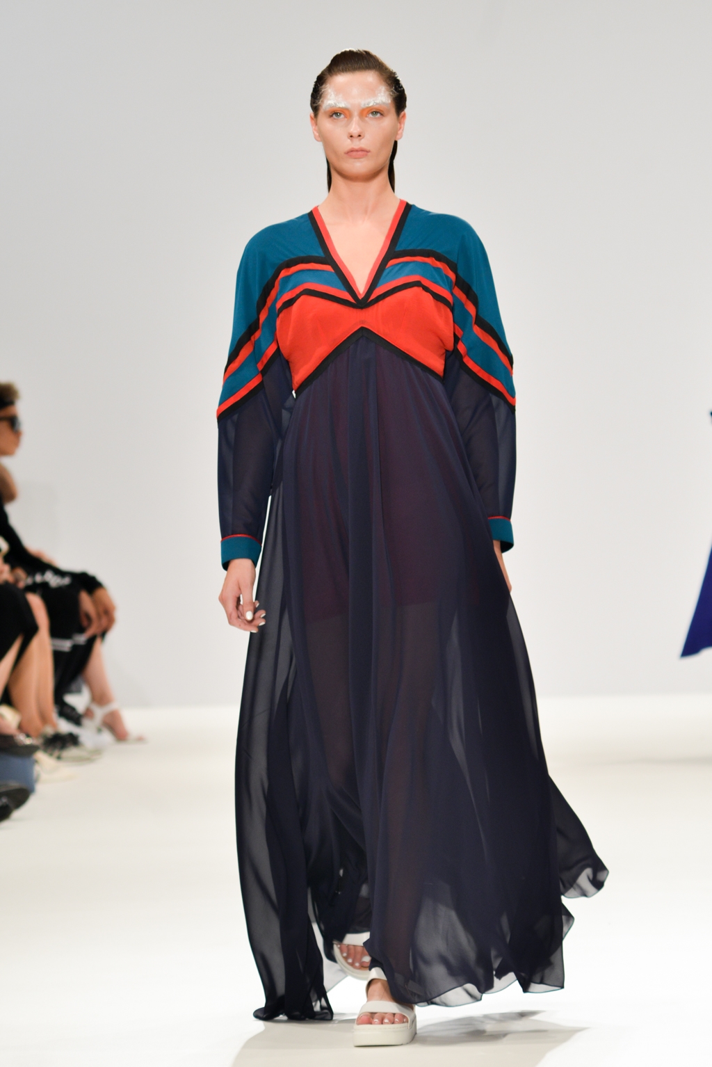 Dresses were gathered and cinched in with ties around the waist and oversized collars on short boxy jackets also featuring the signature laser cutting. This collection was not only cleverly colourful, childlike and playful in spirit but also extremely well-constructed and strong. I am sure Cimone will go from strength to strength and judging from the huge cheer at the finale, I am not the only one.