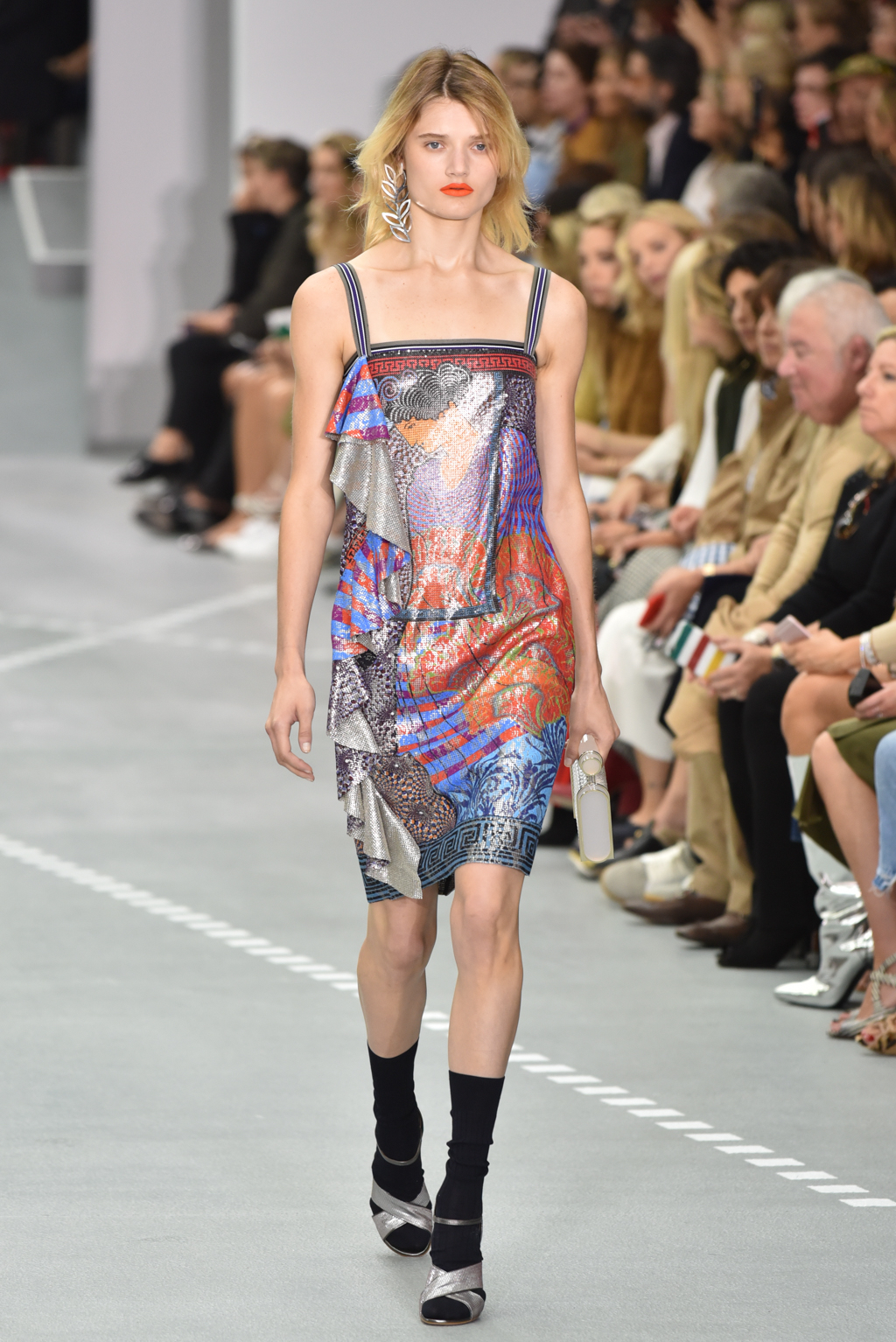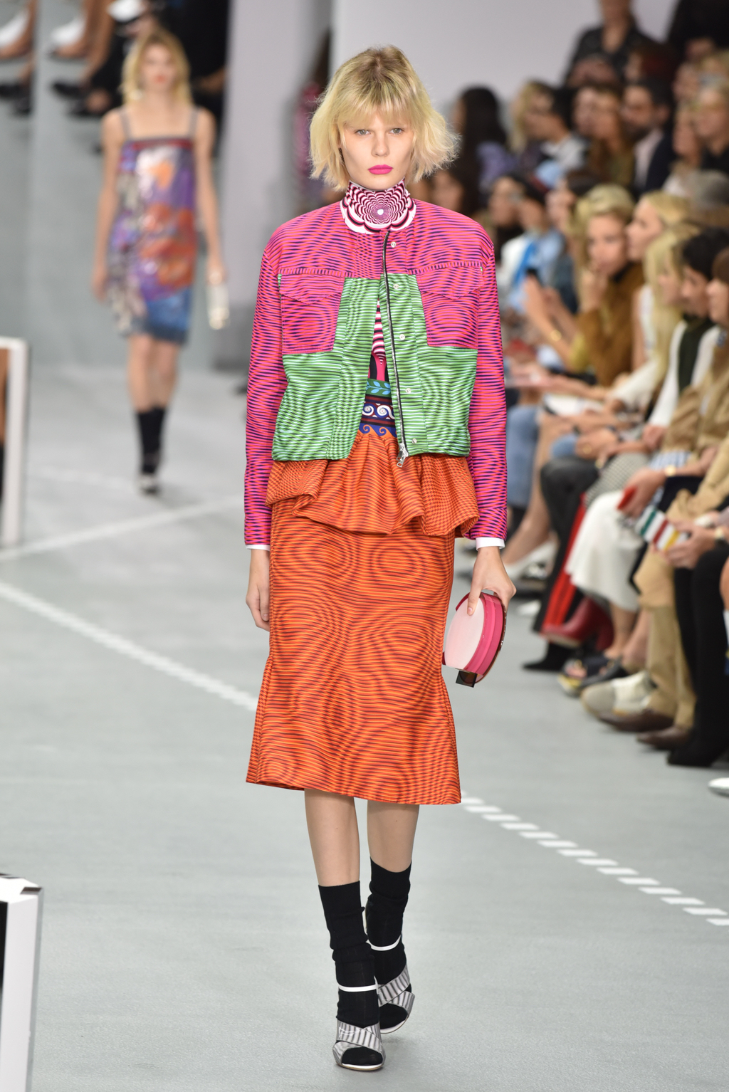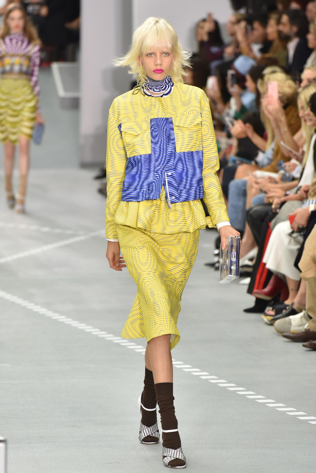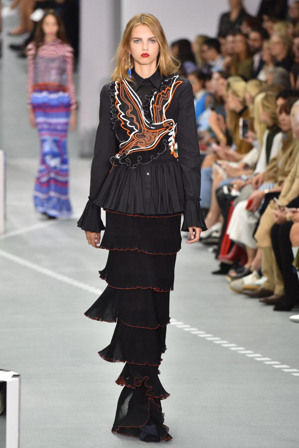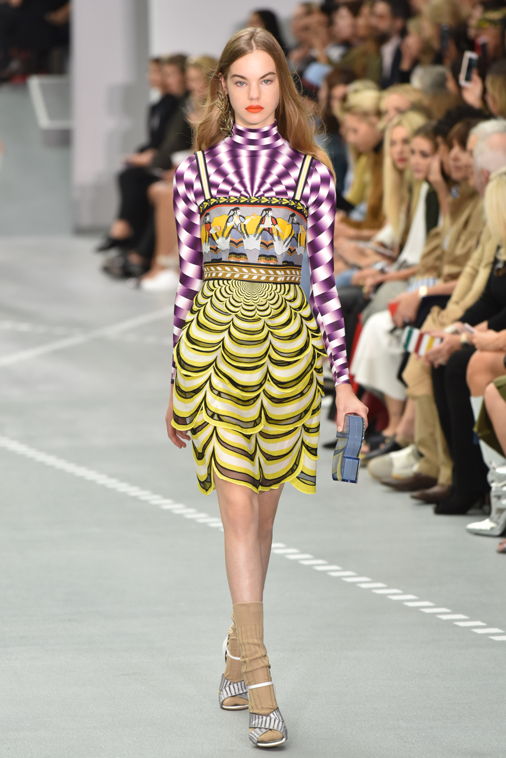 Mary Katrantzou today offered a statement Spring 2017 collection characterised by bold colours, psychedelic prints and Ancient Egyptian-inspired motifs.