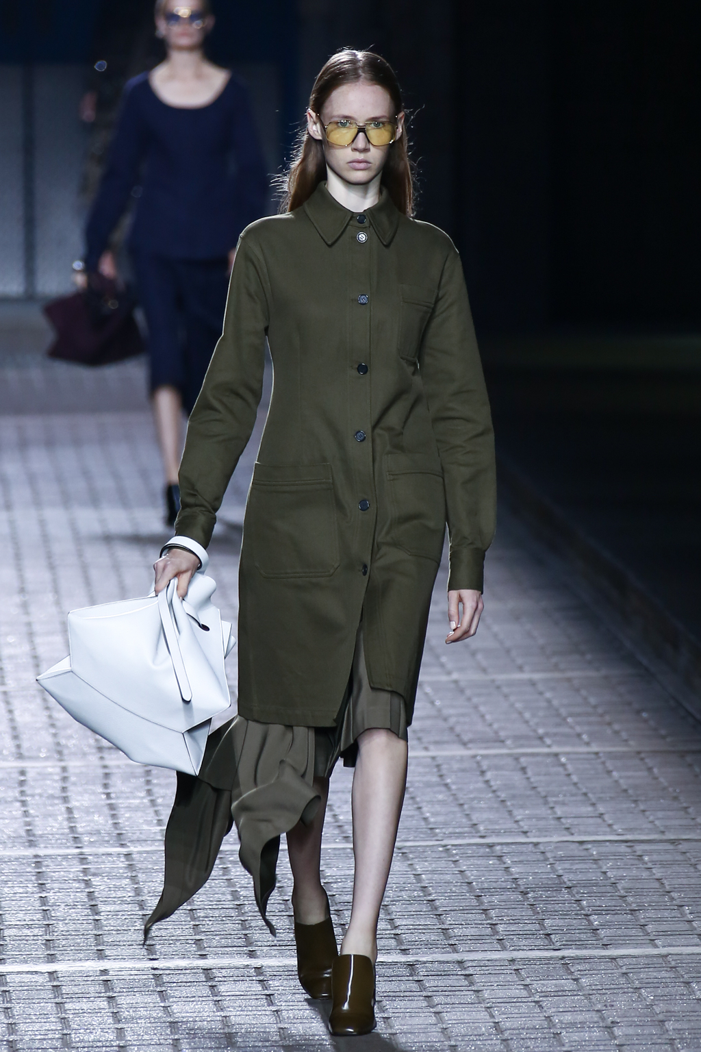London Fashion Week was seemingly taken back to a variety of time periods during the spring/summer 2017 collection showing from Mulberry. Models showcased the style of an everywoman on her daily routine, yielding a simple colour palette of burgundy, navy, olive, powder blue and a surprising interjection of canary yellow in the opening looks.