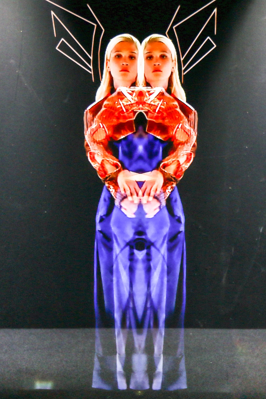As opposed to the traditional catwalk exposé, Clayton’s presentation of her Fashion as Art framed by industrial drainpipes reinforces the idea that we are all held in time and space being observed by others. This stillness is contrasted with the suddenness of movement created by the award-winning MDH holograms who in the past have collaborated with Christian Louboutin, Burberry and the British Fashion Council.