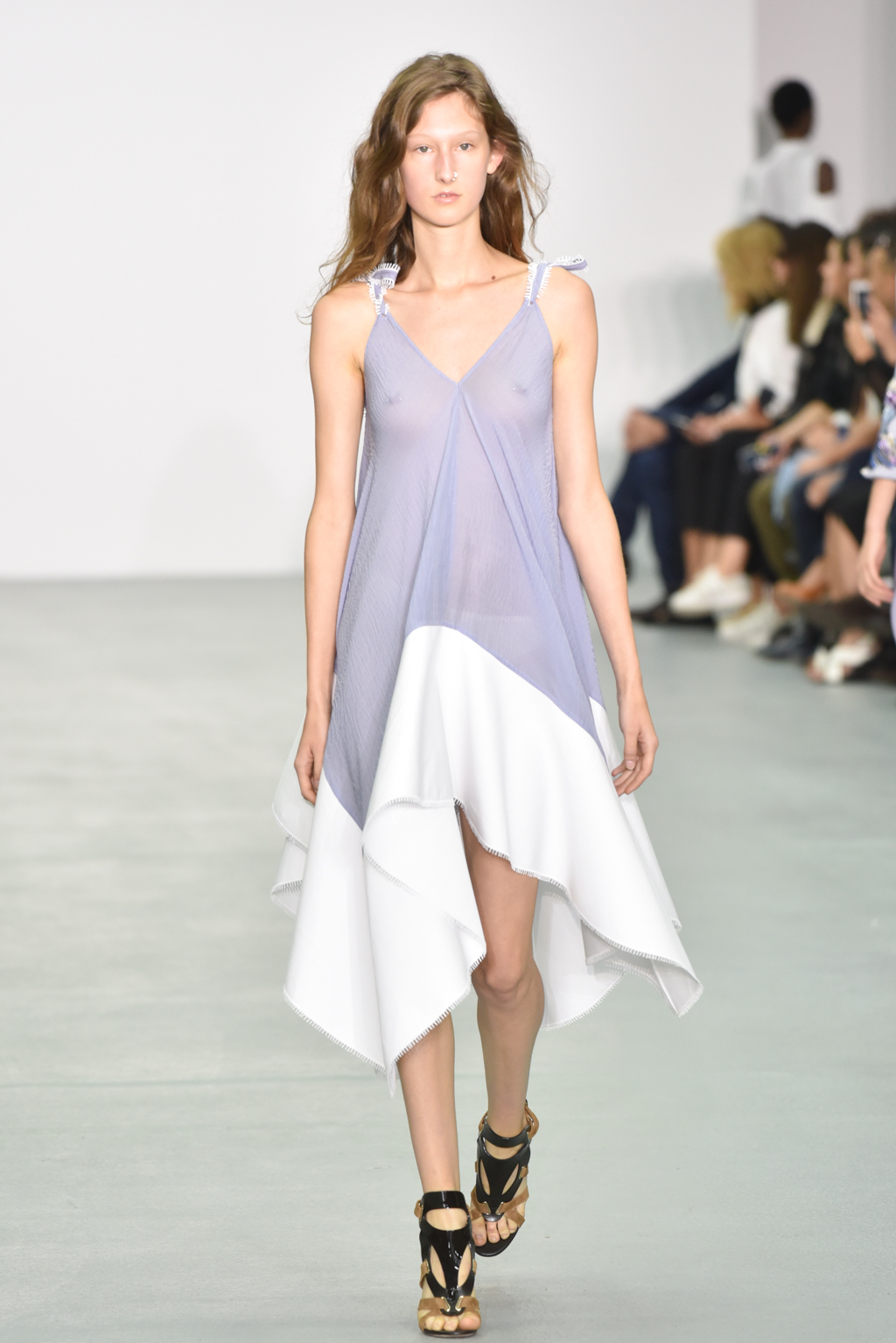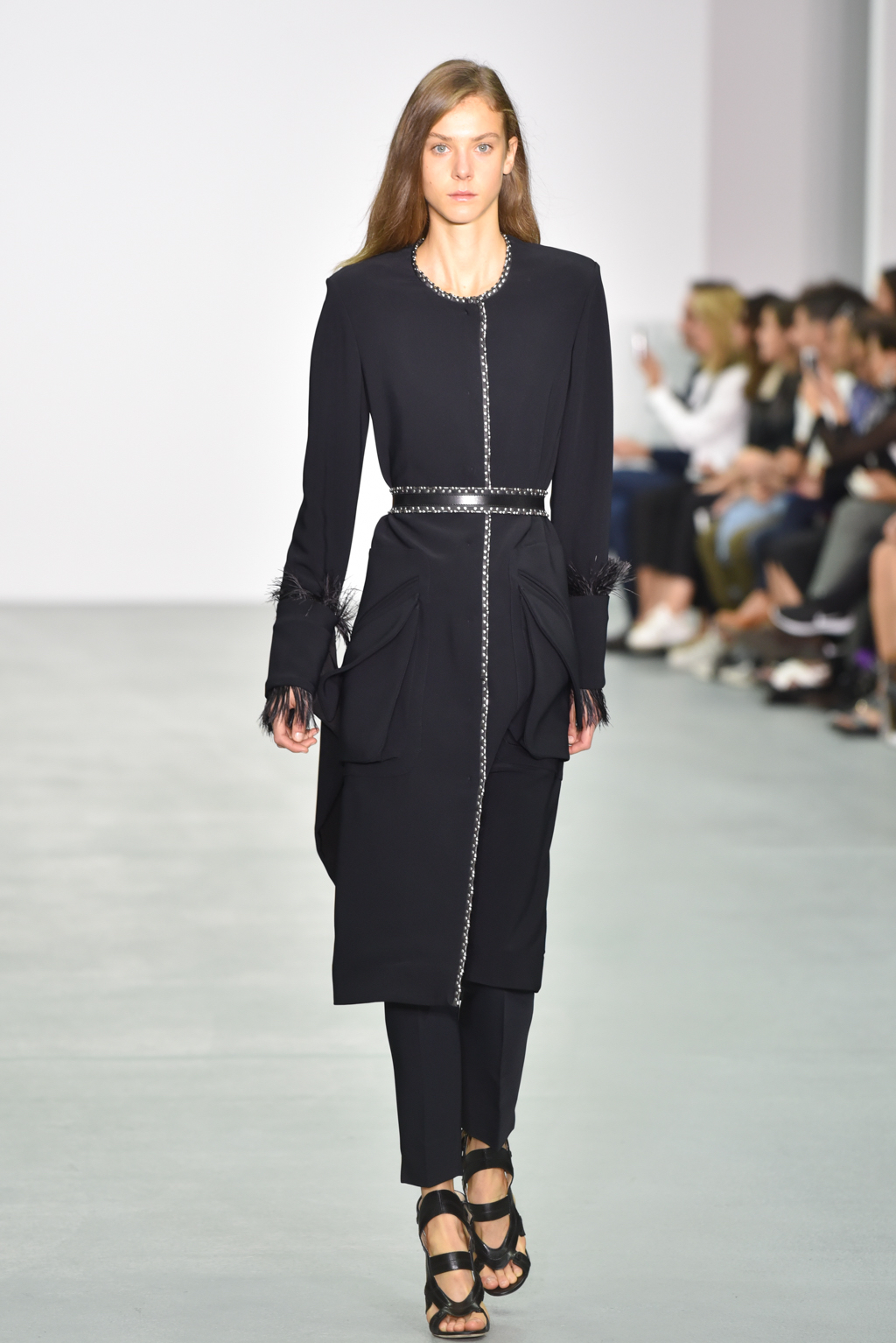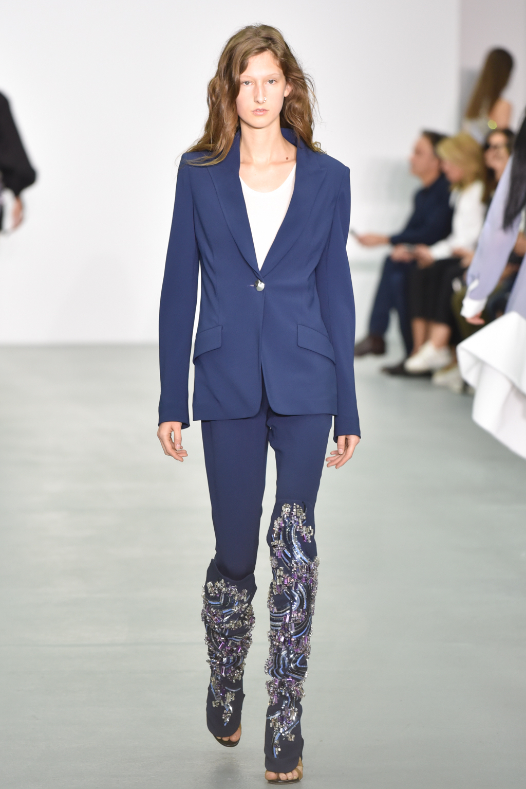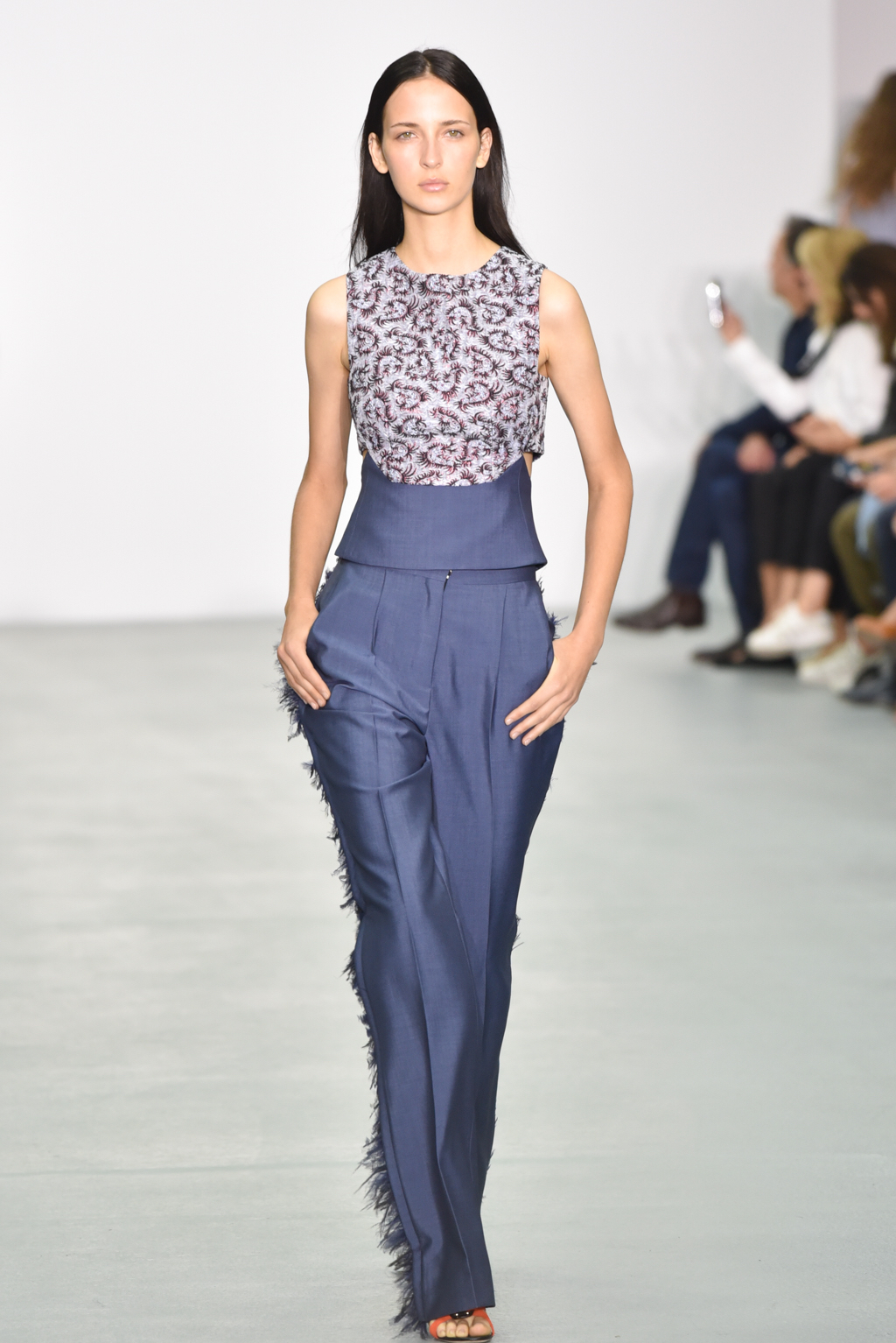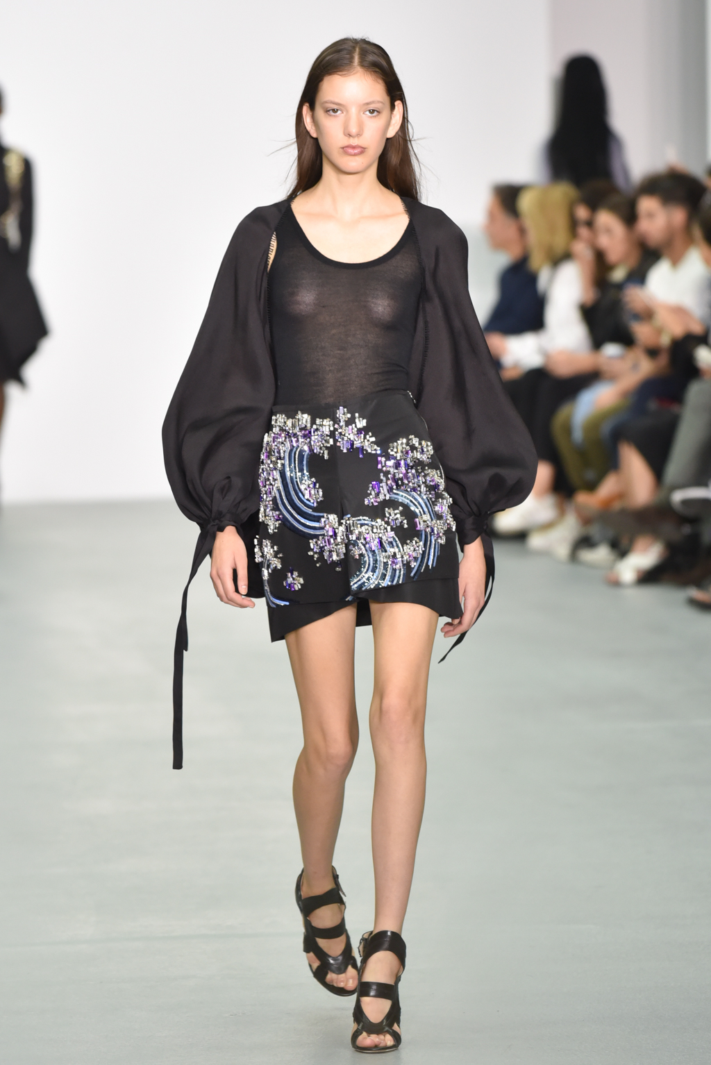 There were strong parallels between Antonio Berardi’s latest collection and that showcased at the same time last year for his SS16 show. The use of fine, distressed feather-like yarn and the focus on detail at the back of pieces featured once again on the catwalk and, once again, created a fascinating balance across the whole of an outfit that few other designers explore in as much depth.