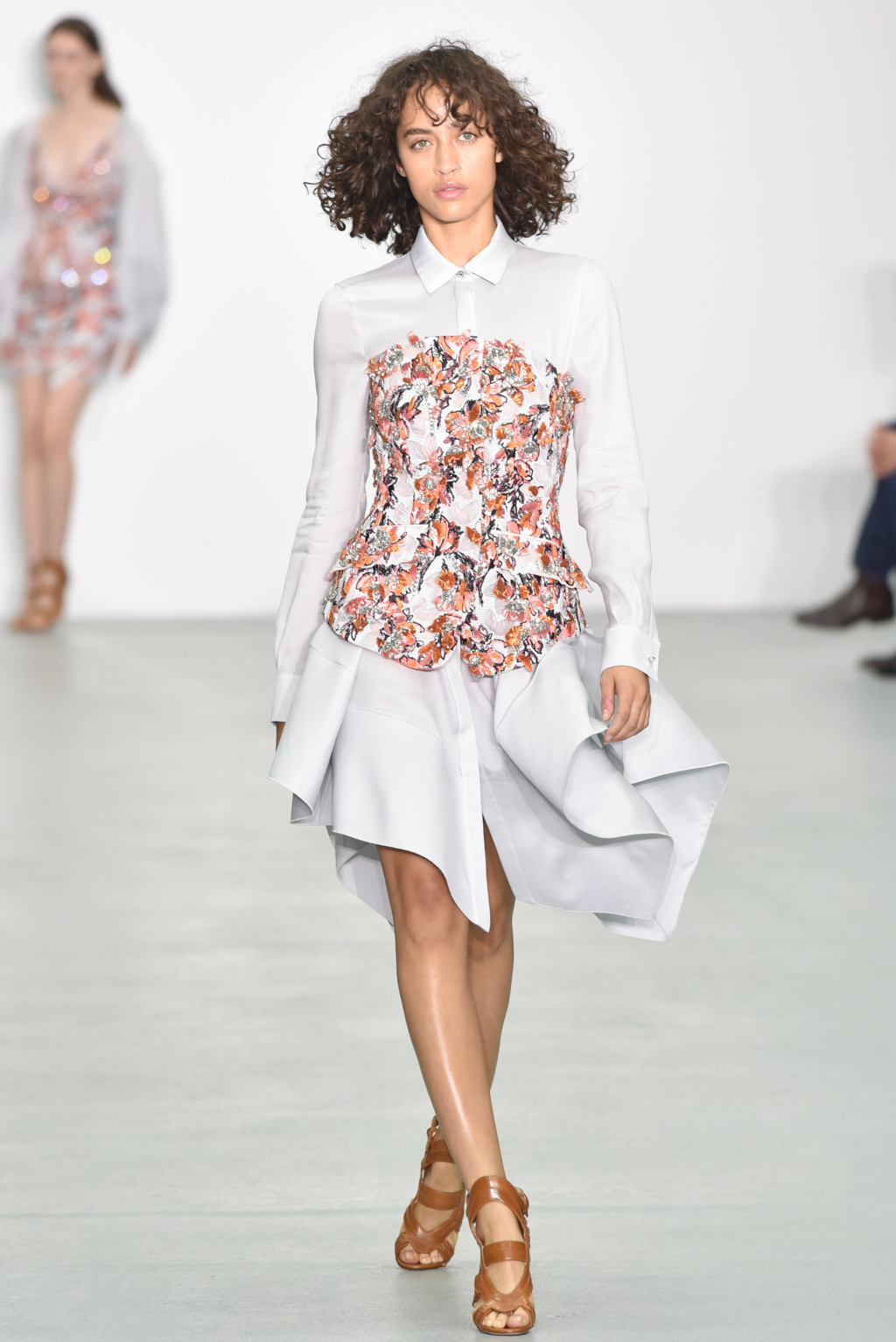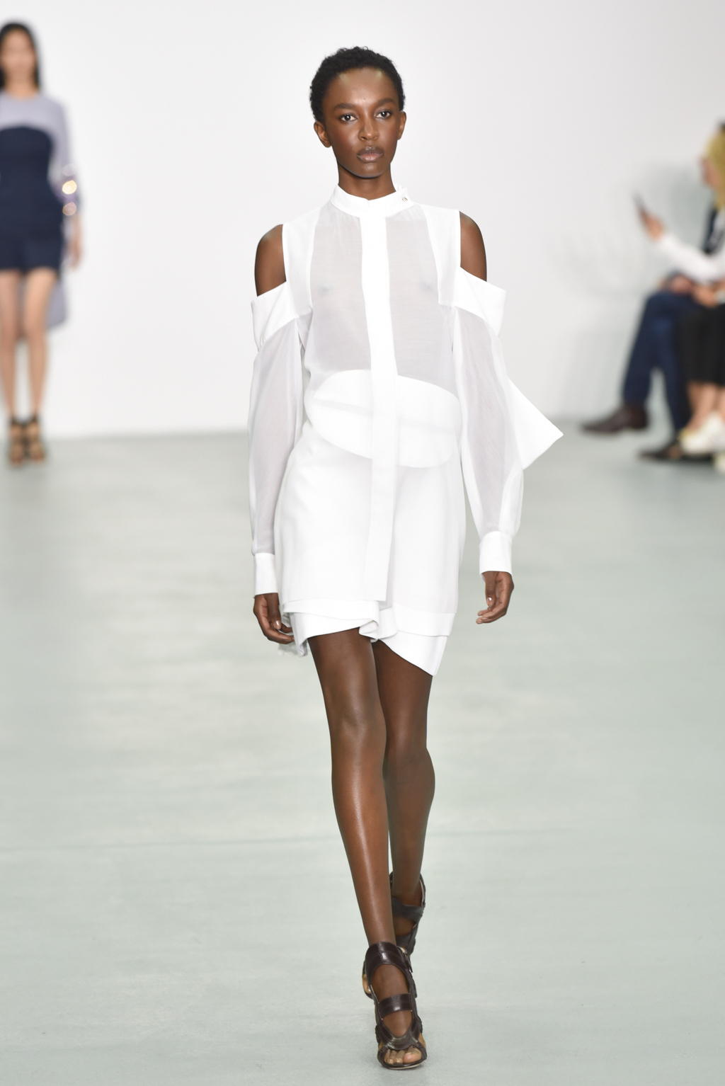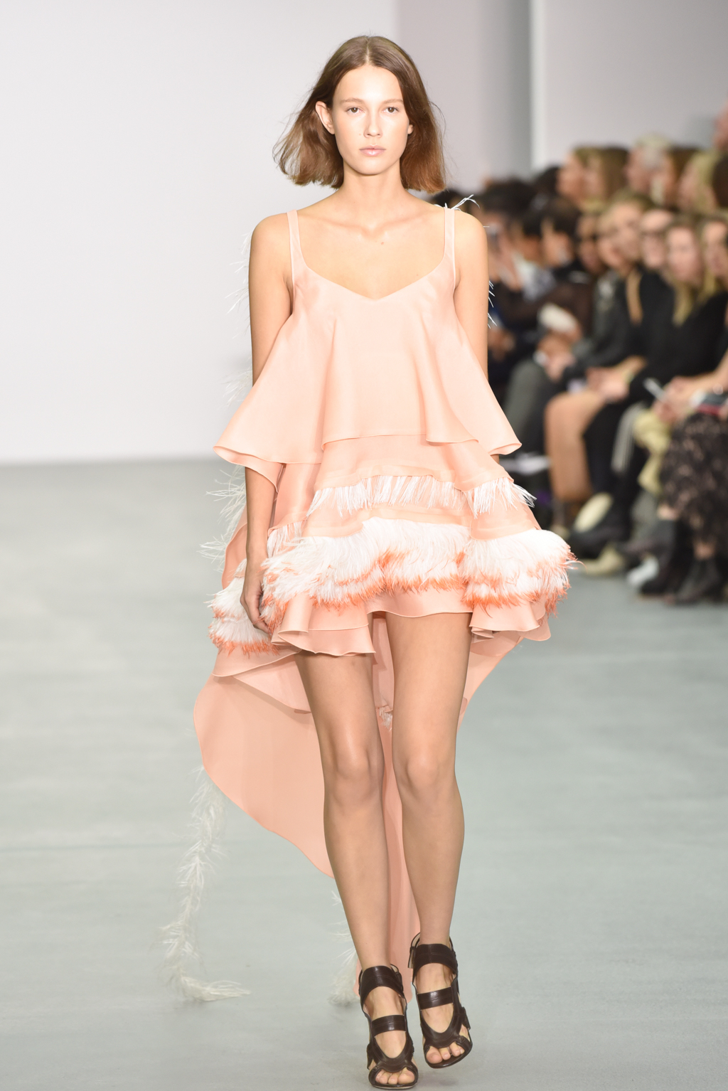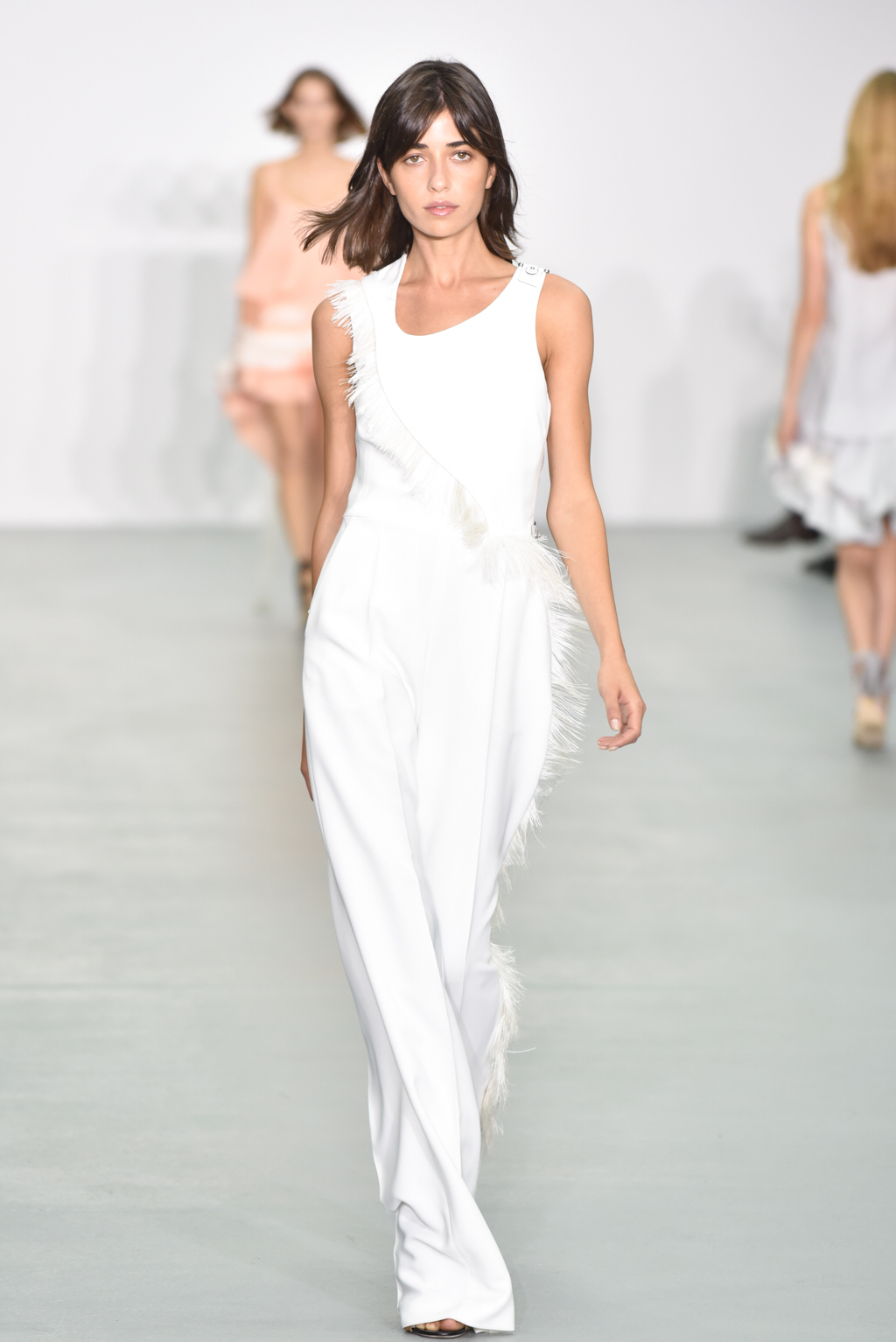 There were strong parallels between Antonio Berardi’s latest collection and that showcased at the same time last year for his SS16 show. The use of fine, distressed feather-like yarn and the focus on detail at the back of pieces featured once again on the catwalk and, once again, created a fascinating balance across the whole of an outfit that few other designers explore in as much depth.