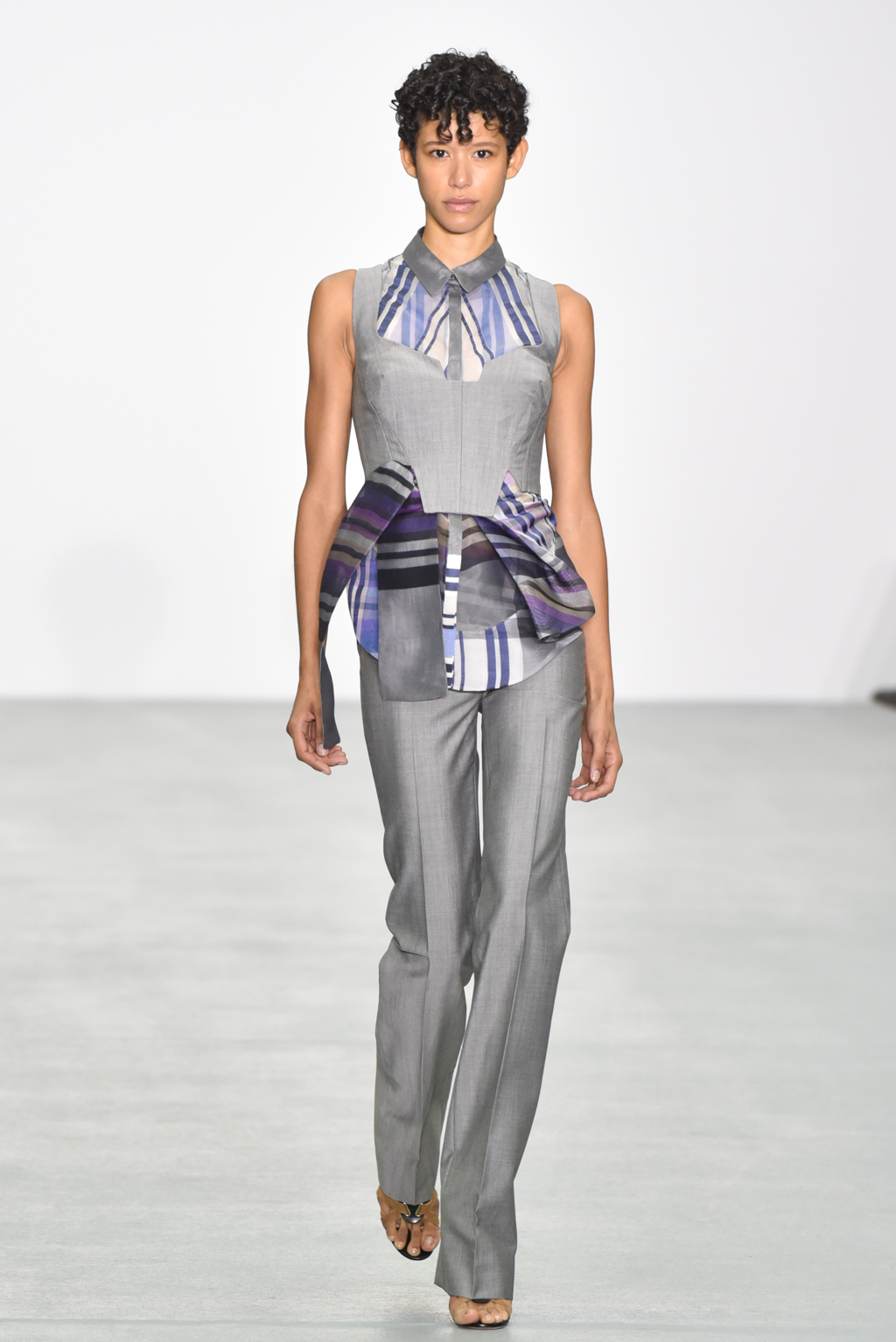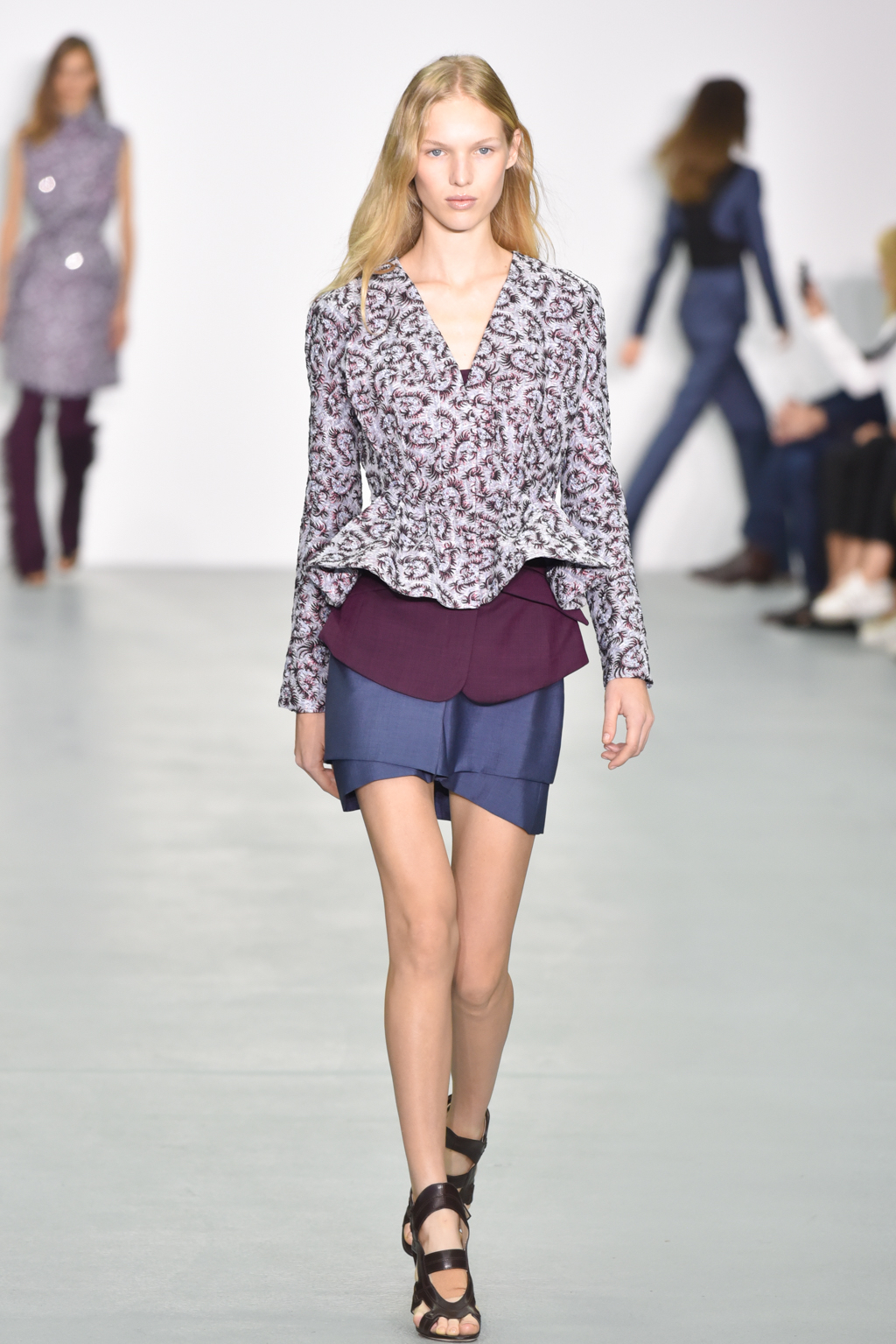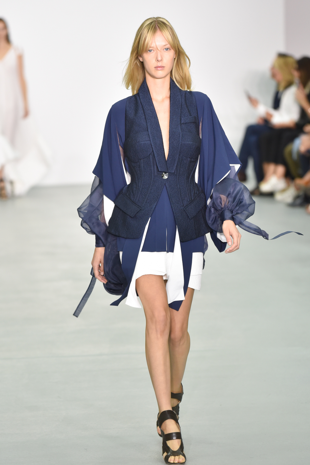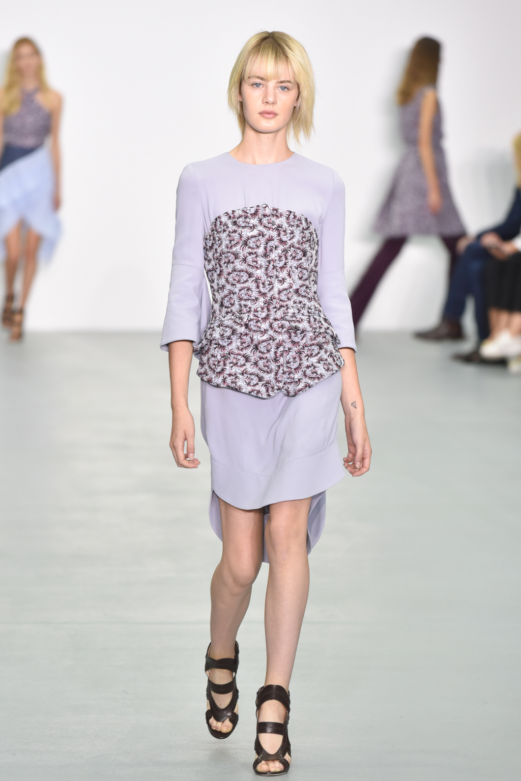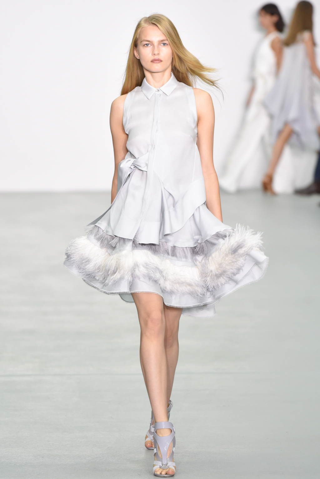 There were strong parallels between Antonio Berardi’s latest collection and that showcased at the same time last year for his SS16 show. The use of fine, distressed feather-like yarn and the focus on detail at the back of pieces featured once again on the catwalk and, once again, created a fascinating balance across the whole of an outfit that few other designers explore in as much depth.
