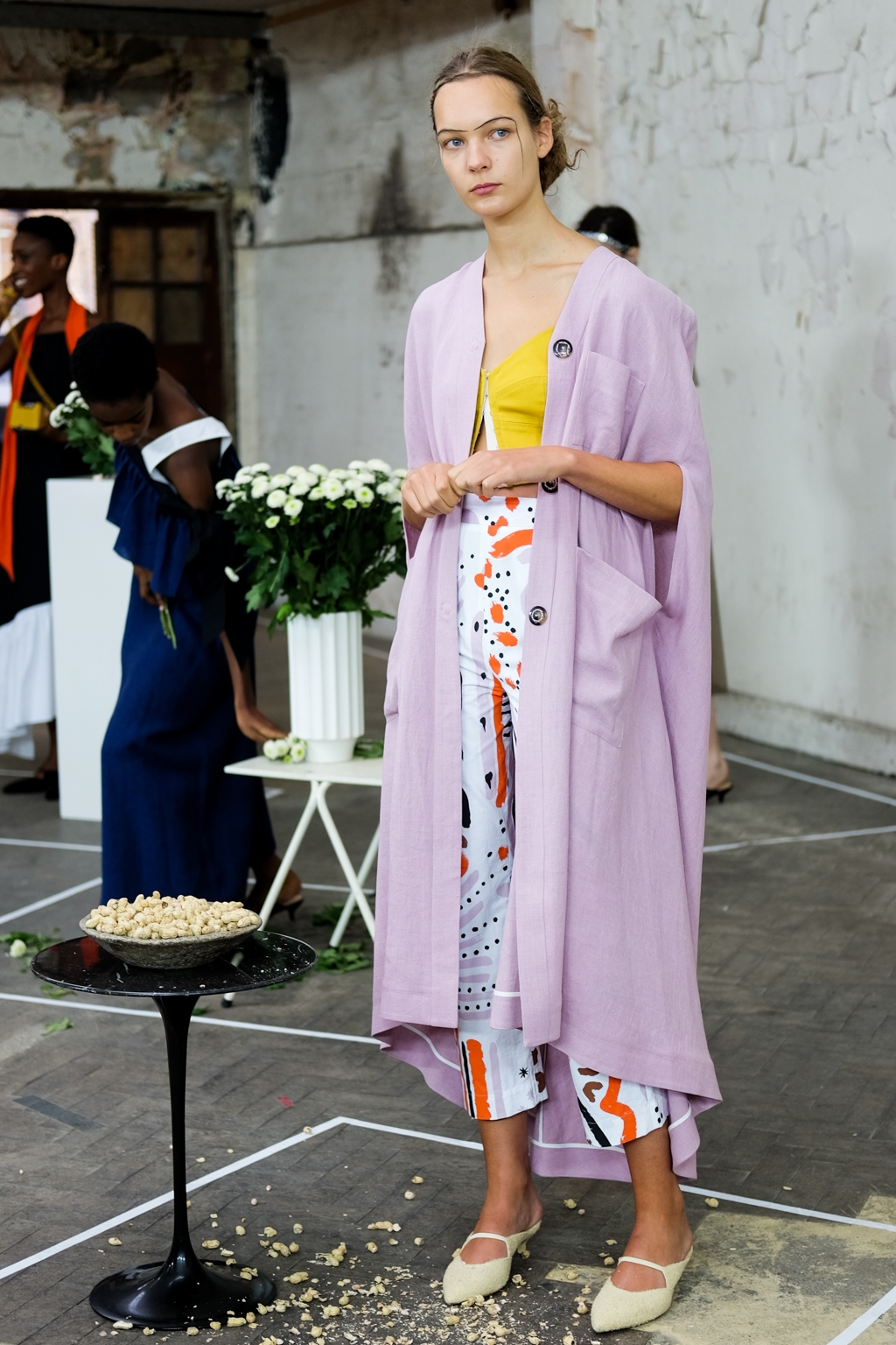 References to Pina Bausch on the press release would explain some of her elegant classic silhouette choices; however designer Serafina Sama has drawn on a range of influences for this season’s prints, including the Omo Valley tribes and early 1960s portraits of Malian women. Perhaps this is where the softly pleated ruffle hems and earthy ochre tones came from, along with the domesticated, typically mid-20th century presentations of women in their individual scenes.