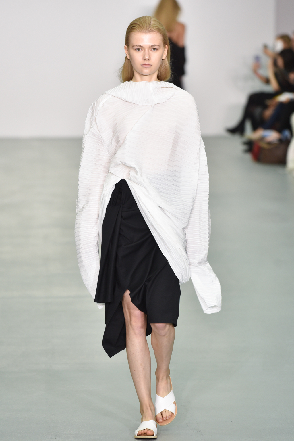 Press packs for front-row guests to the Sid Neigum SS17 catwalk show are scrawled with the handwritten note “less is always more”. It is interesting, then, that the collection comprises a number of innovative designs that seem to fall outside the limits of this statement.
