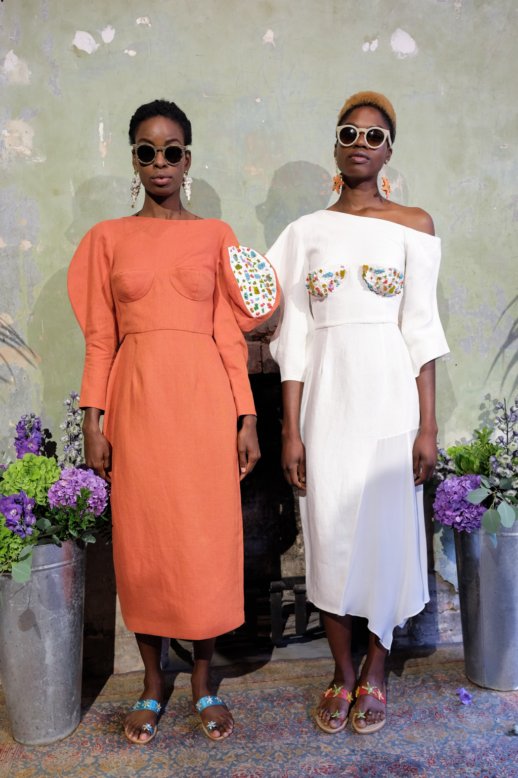 Some looks are completed with shell earrings and round, thickly framed sunglasses deliberately reminiscent of the 60s. These bring the modern cuts of the collection full circle, back to the early coastal inspiration behind the look. If Tata Naka’s intention was to immortalise the memory of early Naples, these small details have helped it succeed – but have not prevented it from incorporating a uniquely modern twist on the classic beach dress.