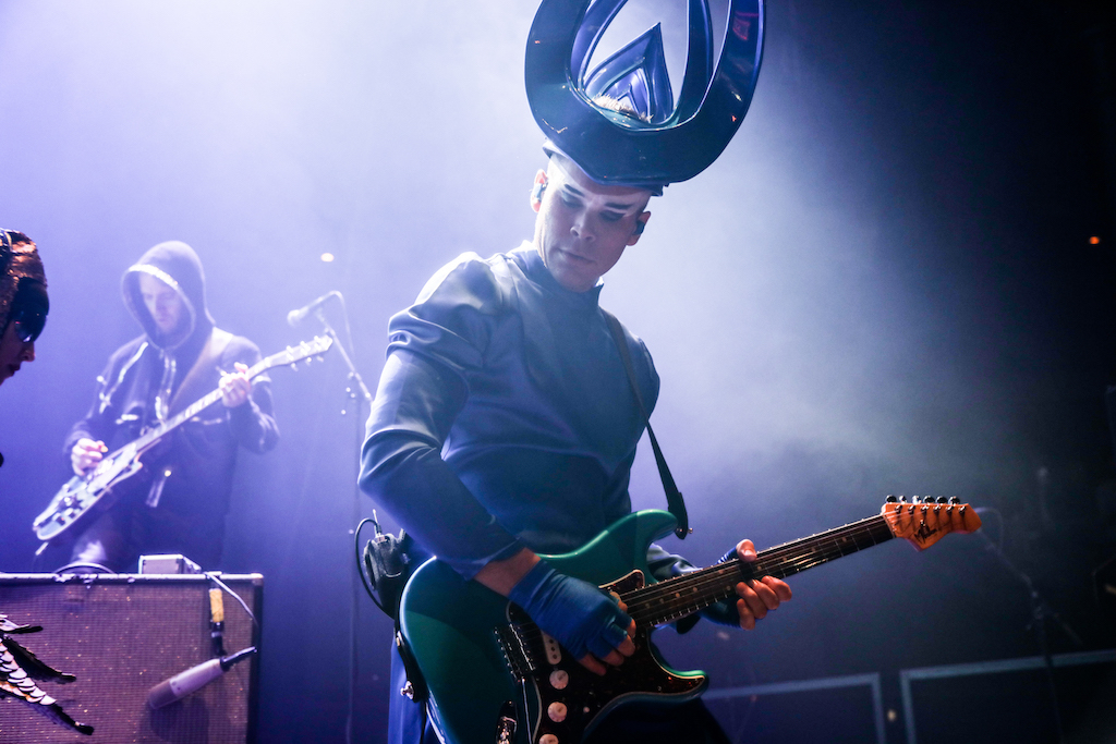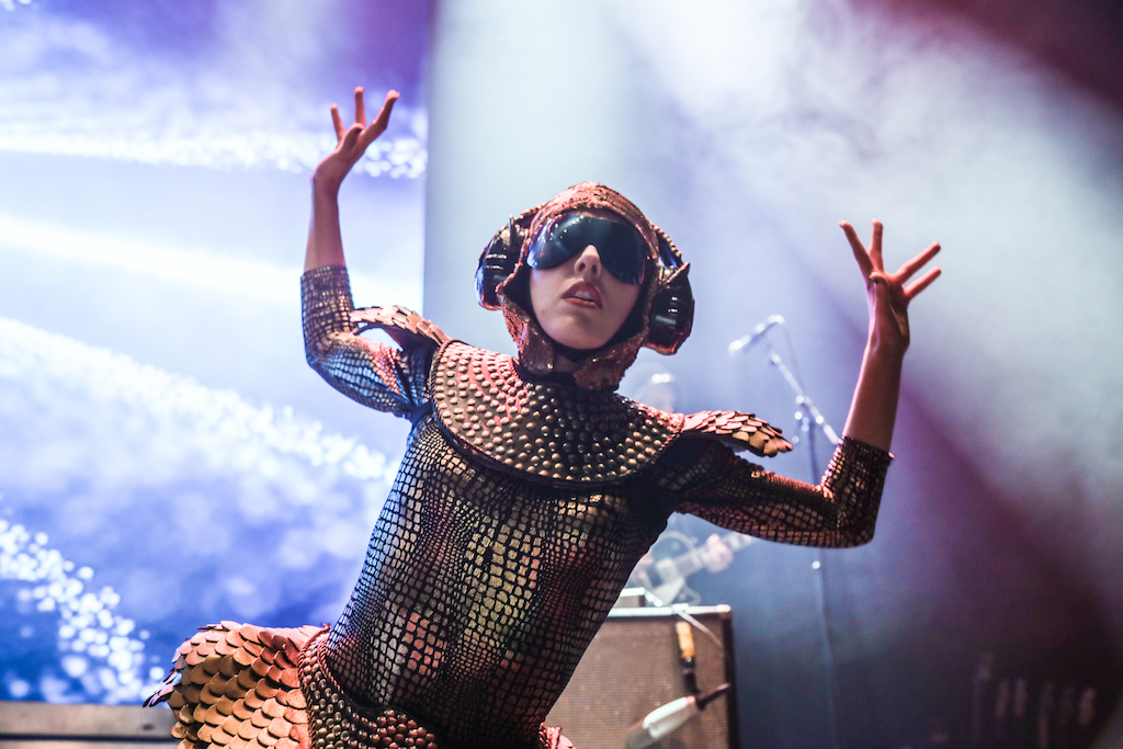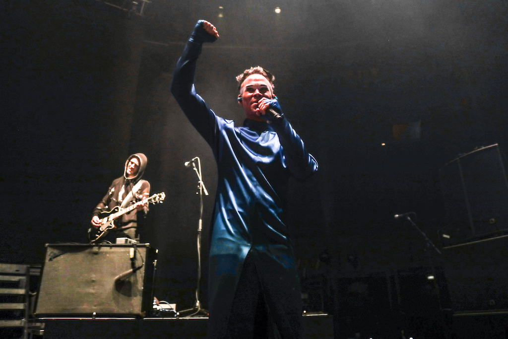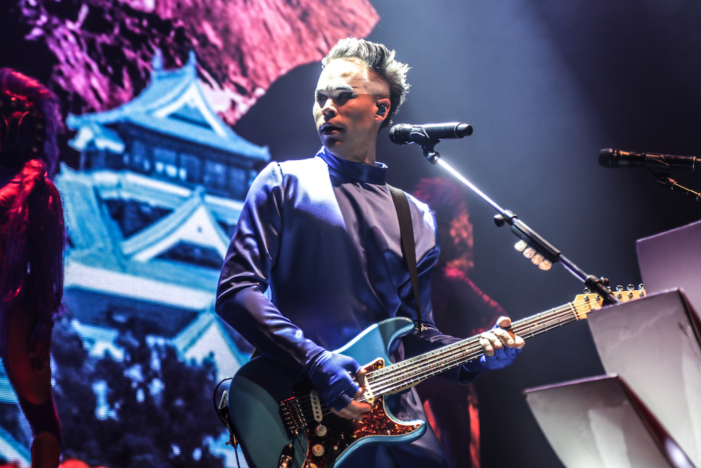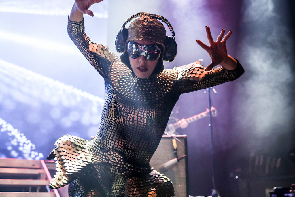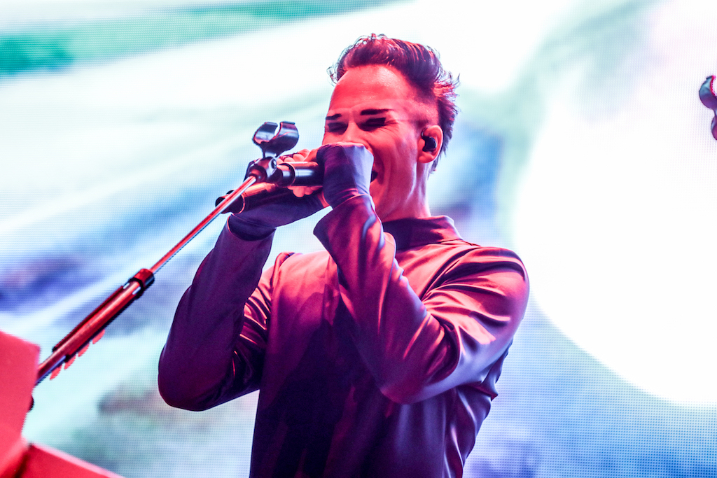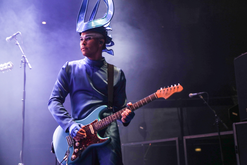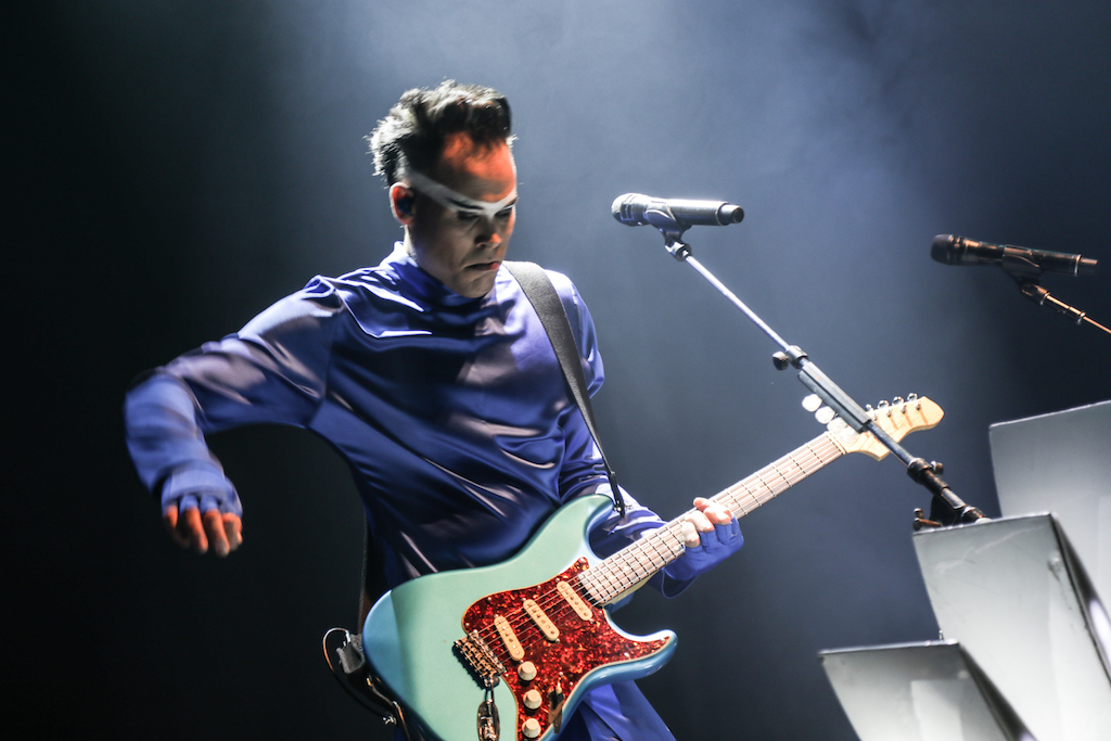 Empire of the Sun are all about their visuals, and this gig was no different. Steele, who is the live performer of the duo, comes out garbed in his illustrious album artwork headdress accompanied by four dancers, equally eccentrically attired in shiny gold intergalactic suits. Throughout the performance the dancers change into a variety of similarly stunning and bizarre costumes, their synced movements against a backdrop of swirling colours and pulsating tracks mesmerising the audience. It’s truly an acid trip like no other. For all the costume changes, stand outs have to be the all-white with papal hats, neon-lit guitar props and the translucent winged suits twirling to the flaring guitar notes.