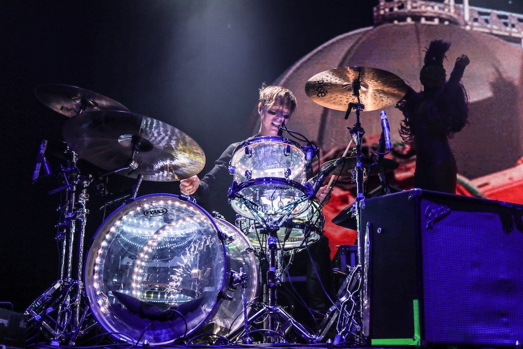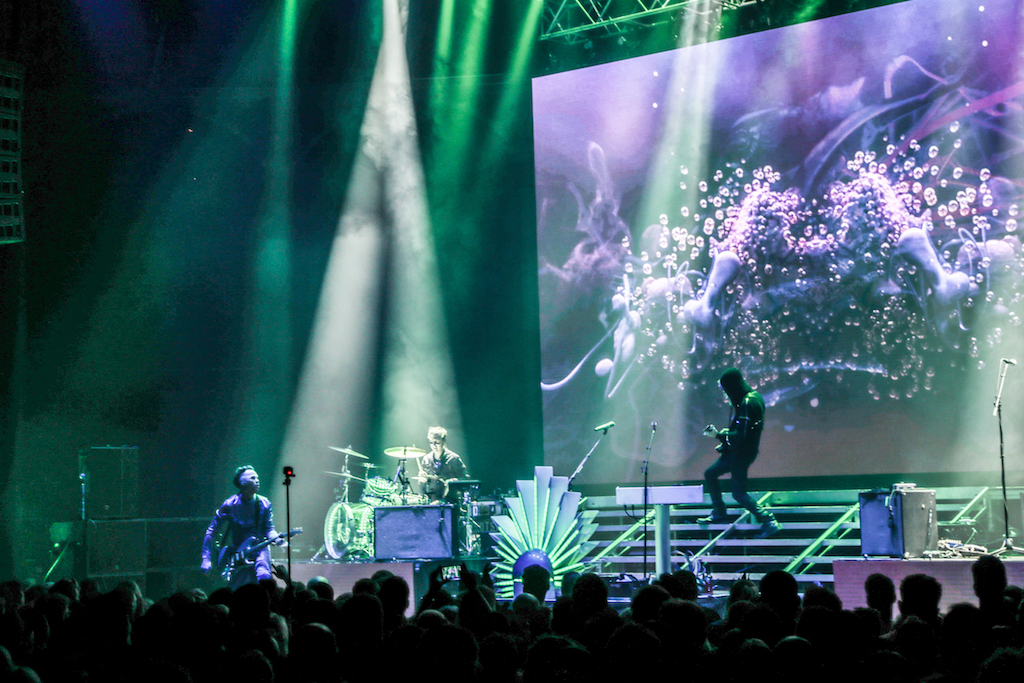 Playing a variety of tracks from their repertoire, Steele’s voice borders between irritatingly whiney and fantastical. His vocals are difficult to pick up and a live gig only accentuates the problem. In truth the visuals take precedent here and it doesn’t so much feel like a concert but a theatrical display. Fan favourites We Are the People, Walking on a Dream and High and Low from the new album were met with the best reactions, but the atmosphere maintained its high throughout. Steele has been known to smash up guitars in previous gigs, and once again, breaks not one, not two, but three guitars in a frenzied borderline neurotic display. It’s not entirely necessary, and a bit frivolous, but performers will be performers.