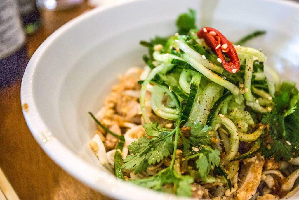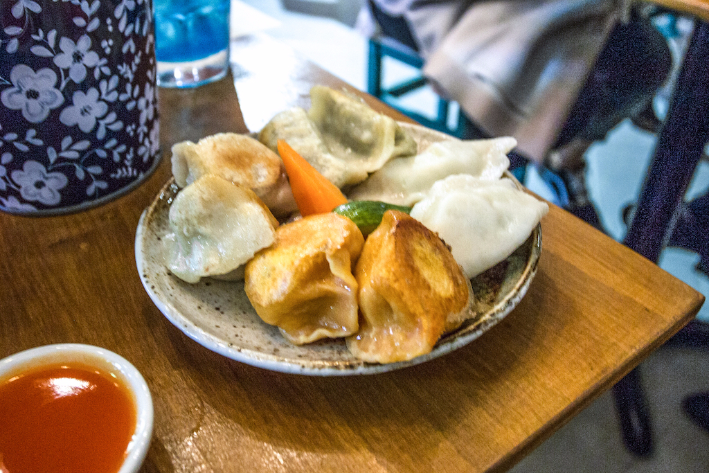 A plate of dumplings is the first dish to arrive, with three different fillings: vegetable, pork and beef. All are delicious, having been steamed and lightly fried, leaving one side of the casing perfectly crispy and one side velvety soft.