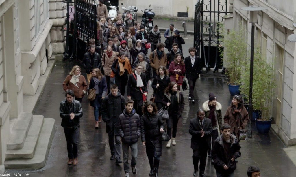 Simon is a practitioner of direct cinema, which is highly non-interventionist by definition; her camera observes with no agenda, simply aiming to capture the truthfulness of the situation. It could be argued that the mere presence of a filmmaker and their camera will affect what the audience sees and how it is played out, although without necessarily affecting the outcome of the given situation. Simon has a distinct advantage in recording the happenings at La Fémis in this respect. Her past as a member of the teaching staff at the school means that her presence is simply that of a co-worker or teacher sitting in on various events at the school, and being a school of filmmaking, it’s not as though anyone involved would be overly interested in the existence of a camera capturing them during an unguarded moment.