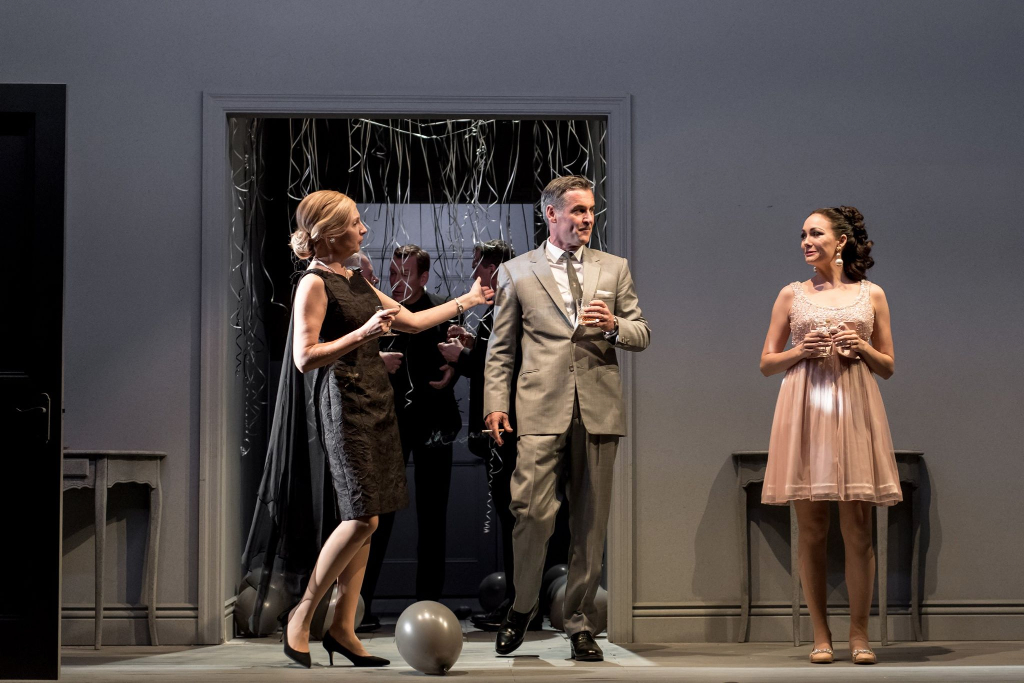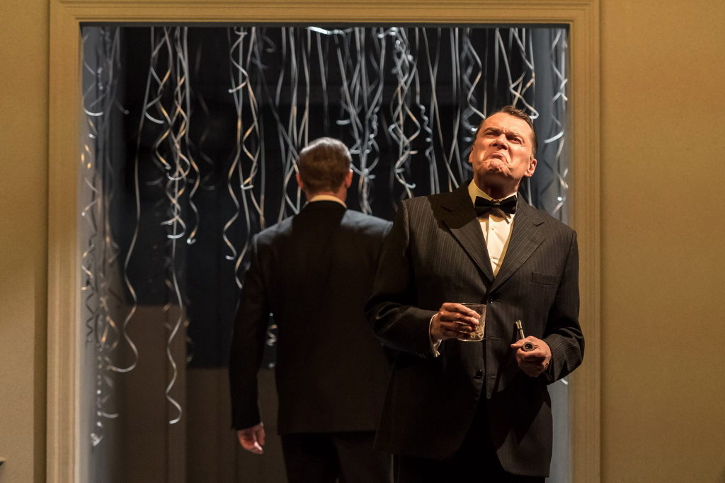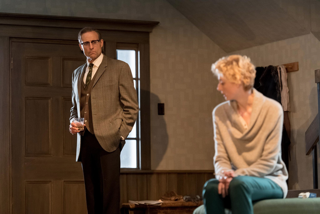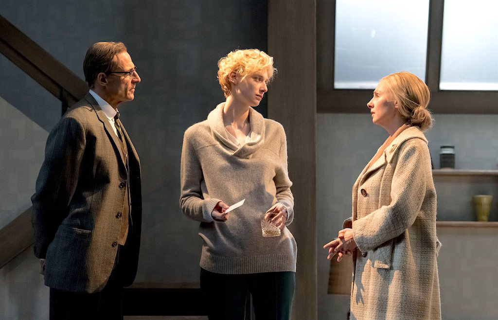 Georges Simenon understanding of how to disturb is not lost in David Hare’s adaptation. It’s Connecticut 1969, a death in the snow begins and propels the drama which forces characters to question their identity, each other and their role in the world. More than anything it is a work of art. It perpetually messes with perspective; scene and set changes are accomplished by a series of moving screens which interplay with darkness. The audience’s vision is subject to TV-like screens that both conceal and reveal the interiors of the character’s respective houses.