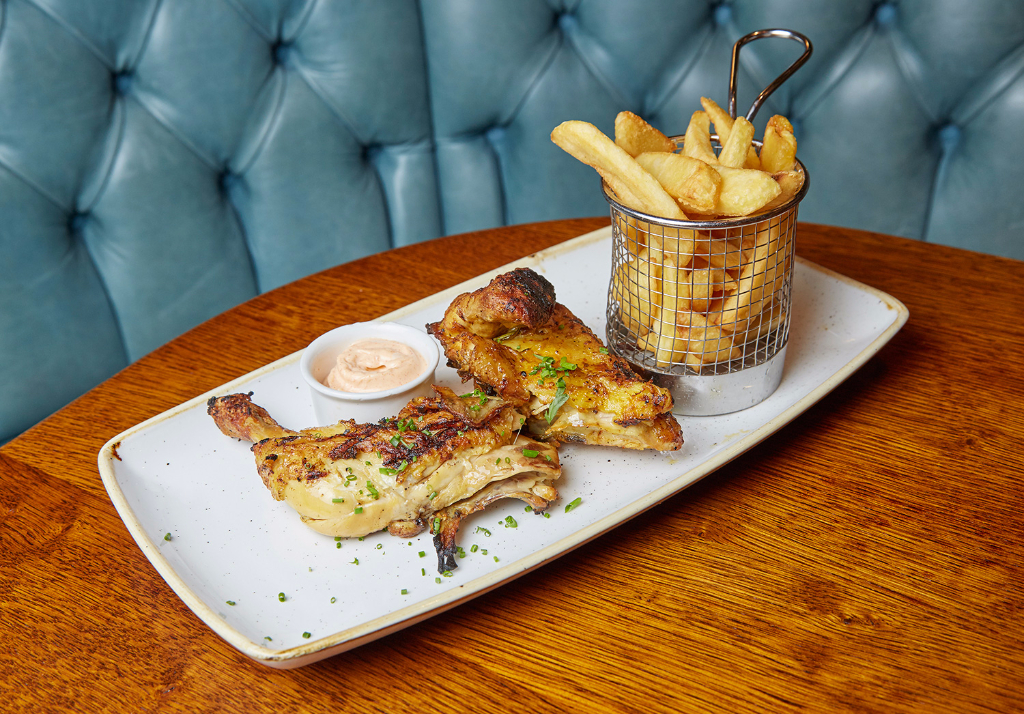 Next, we set our sights on the extensive grill section. A slow-roasted, free-range half chicken with rosemary, lemon butter, french fries and paprika ali-oli sounds too tempting to miss. The plate is a little smaller than expected, but the chicken is perfectly roasted and the crispy skin is full of flavour. A generous portion of thick-cut chips accompanies both the chicken and the flavoursome lamb shish kebab, which we also try.