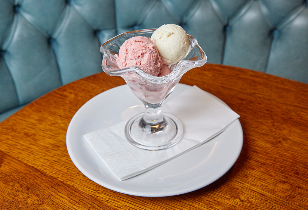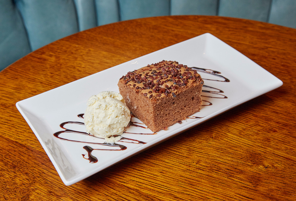 For dessert, we decide on a selection of fine British ice cream, and a chocolate brownie. The brownie is not quite as drenched in chocolate as the menu description had suggested, and is rather more dry and spongy than we’d imagined; not bad by any means, but more of a cake than a brownie. The ice-cream on the other hand, is a perfect way to finish off the meal, creamy and full of flavour.