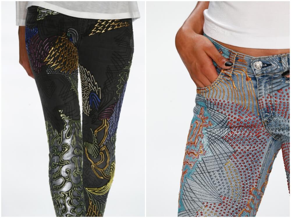 For the exhibition, 100 pairs of jeans have been donated by celebrities such as Emma Watson, Sir Elton John, Harry Styles, Julianne Moore and Victoria Beckham. Dar has painted each pair with elaborate patterns, and they are all up for auction in order to raise money to help refugees.