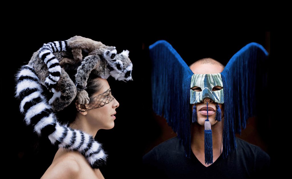 Fashion houses who have contributed masks include Burberry, Jimmy Choo, Preen and Chloe. The designs range from a Swarovski crystal-encrusted cat mask to a fluttering blue and gold macaw. Some of the masks are even more unexpected, with Leonara Ferguson offering an amazing headpiece topped with a furry replica of a lemur. The result is both humorous and, somehow, distinctly chic.