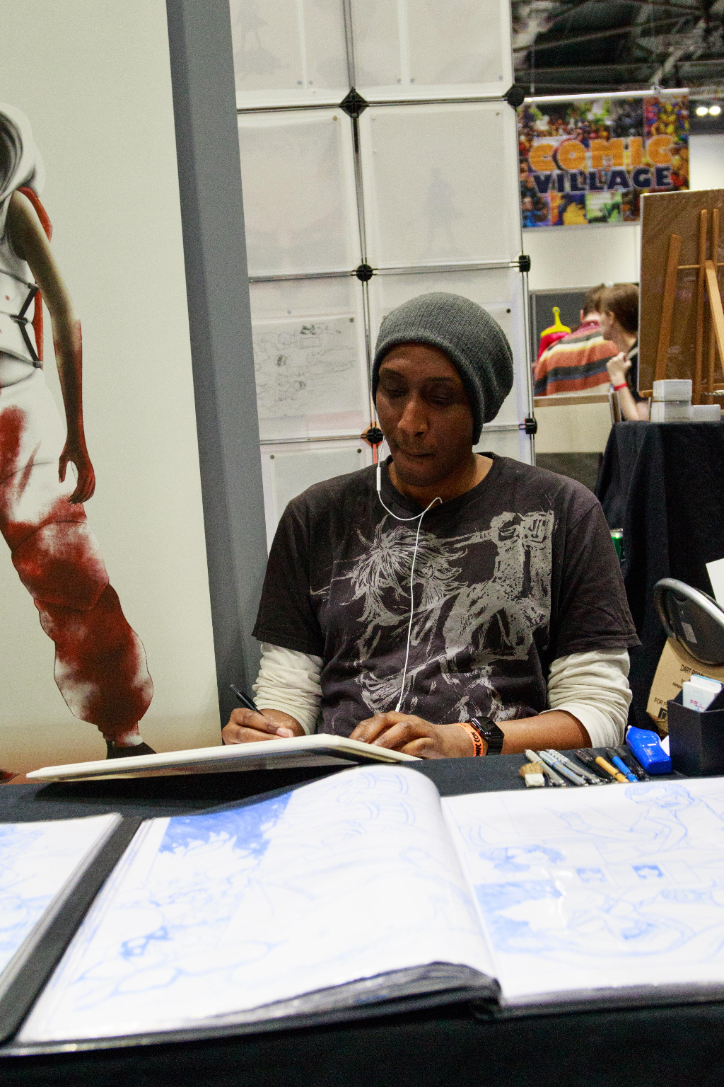 While Comic Con is not usually renowned for attracting legends from the urban music scene, this weekend’s event pulled off a coup by attracting spoken word legend and UK hip-hop’s man of the moment Akala to the MCM Gold Arena. The local hero wowed the crowds with an immersive performance, reading from his debut graphic novel Visions, a semi-autobiographical work charting the evolution of rap music.
