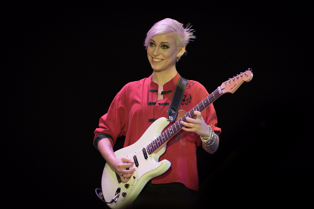 Looking every bit the rock star, donning a diamond-encrusted bracelet and shades for much of his electrifying blues-rock set, Jeff Beck more than justified his place among the greatest guitarists of all time on the last day of the UK Blues Fest, showcasing the genre-defying style that has made him the stuff of legend. Steering clear of the microphone, Beck let his instrument and his band do the singing, speaking up only to introduce a surprise rendition of Elvis’s Suspicious Minds, explaining cryptically, “It has special significance for me, in case you were wondering”. Carmen Vandenberg surely made herself one of the coolest musicians of the moment as she kept pace aside the seasoned artist, Jonathan Joseph was ferocious on drums, plus singer Rosie Bones brought some punk passion to her vocals on poignant tracks such as Scared for the Children from new album Loud Hailer.