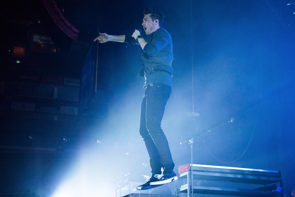 Introduced by a newsreader on looming screens, Bastille stormed the stage in a flood of red light, opening with Send Them Off, a song dominated by a Hypnotic Brass Ensemble-esque riff that drew the crowd in. The Chris Martin-like frontman Dan Smith – singer and songwriter – managed to do the impossible and create a sense of intimacy in the cavernous venue. At one point during the show he walked through the crowd, revealing a welcome humbleness to the chart-topping band.