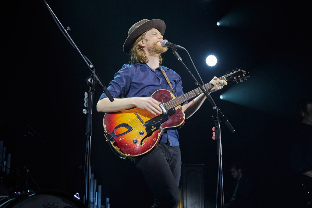 After masterfully covering Bob Dylan’s Subterranean Homesick Blues, the folk-rockers dove back into a more upbeat track, Submarines. The Hammersmith Apollo became more invested with every tune, as the clapping got louder and the singing more heartfelt. Sweeping away the hearts of every audience member, Wesley performed Gun Song, a tribute to his late father, followed by fan-favourite Angela. His husky yet angelic voice sent vibrations through every corner of the icnoic venue as he walked through a sea of avid fans.