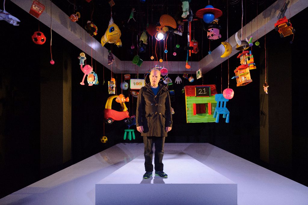 To say that the set design is eye catching would be an understatement, as spectators are greeted by a vista of floating children’s toys. There is a Beano annual, a child’s playhouse and a glow-in-the-dark skeleton among many other brightly coloured trinkets, and credit must go to Lily Arnold for producing this wonderful spectacle.