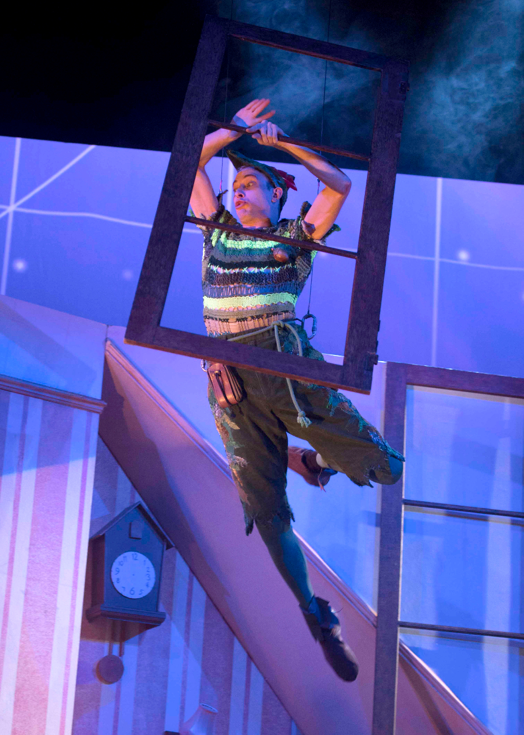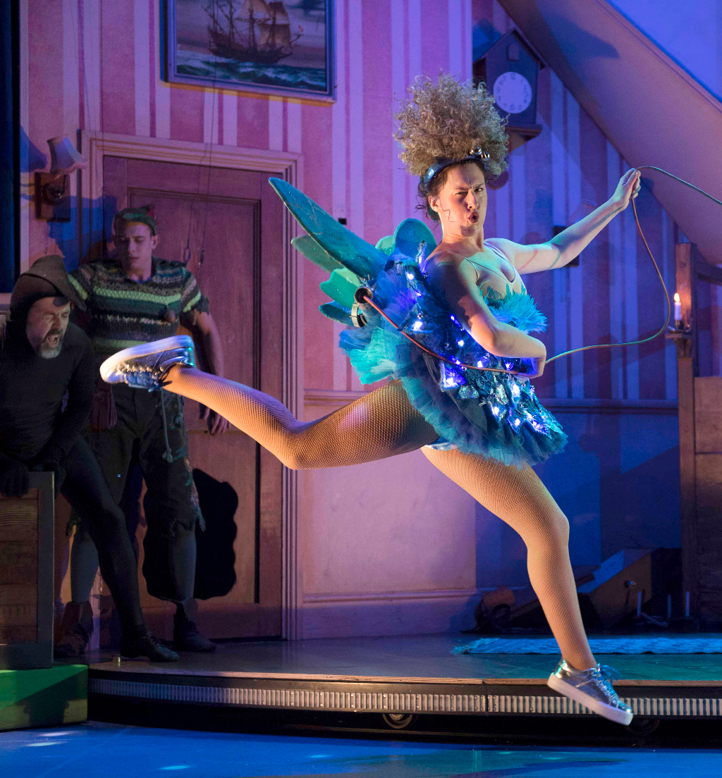 Anarchy is everywhere: Nana becomes trapped in the dog flap; Peter flies into the scenery and is often upside down; the Darling children’s bunk beds collapse into each other; Mrs Darling’s costume changes frequently leave her exposed in her underwear. The set is often sent spinning around without any means of stopping it, with the three different scenes being exposed to the audience when the actors do not realise they are on stage. An exciting medium for exposing the backstage drama to the audience.
