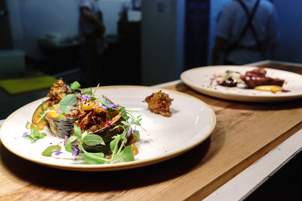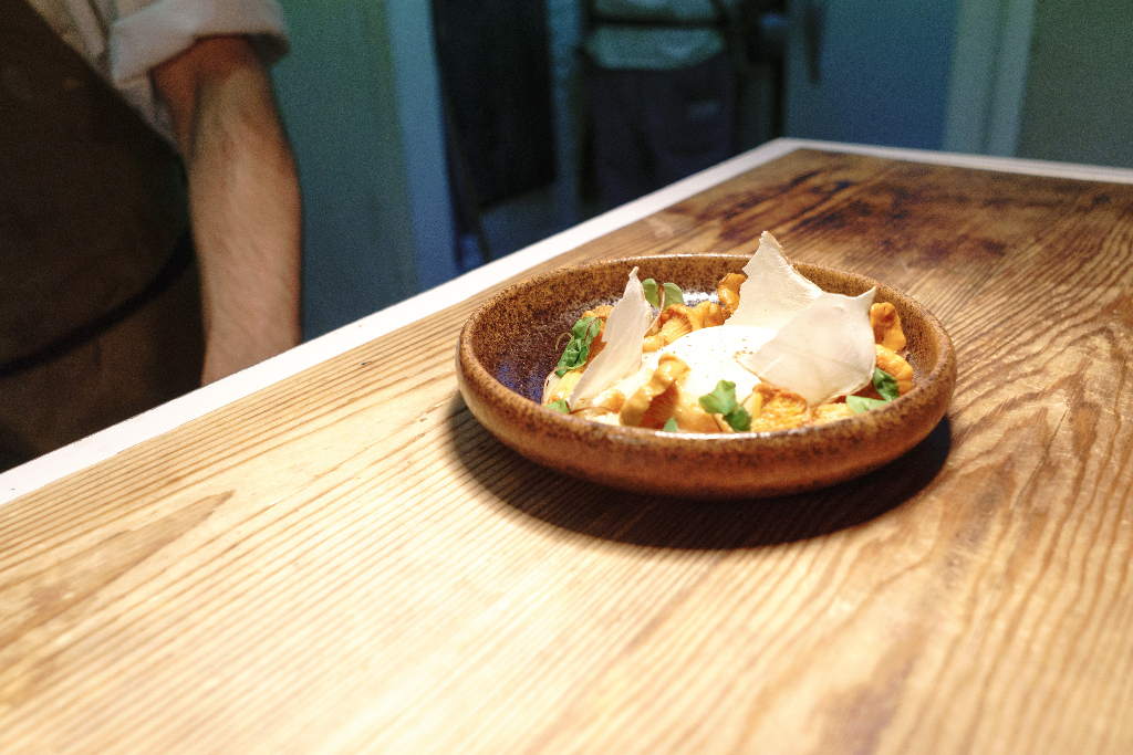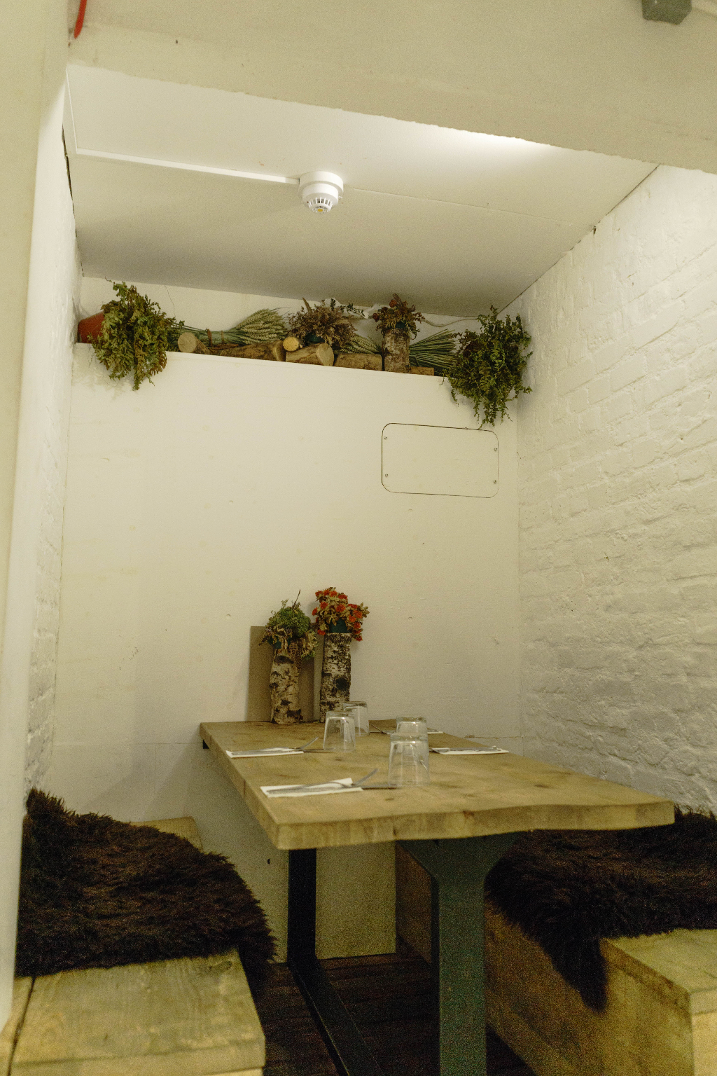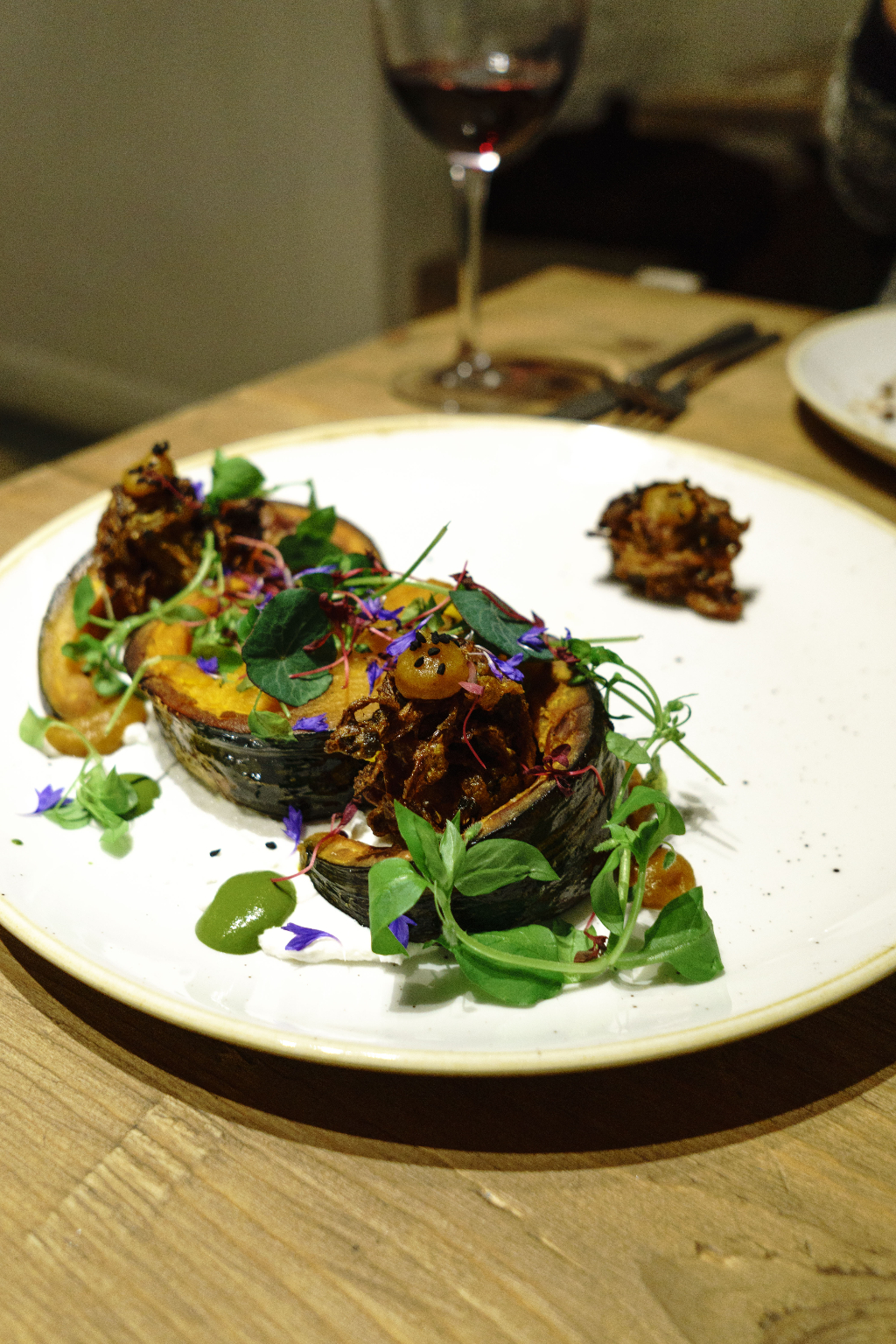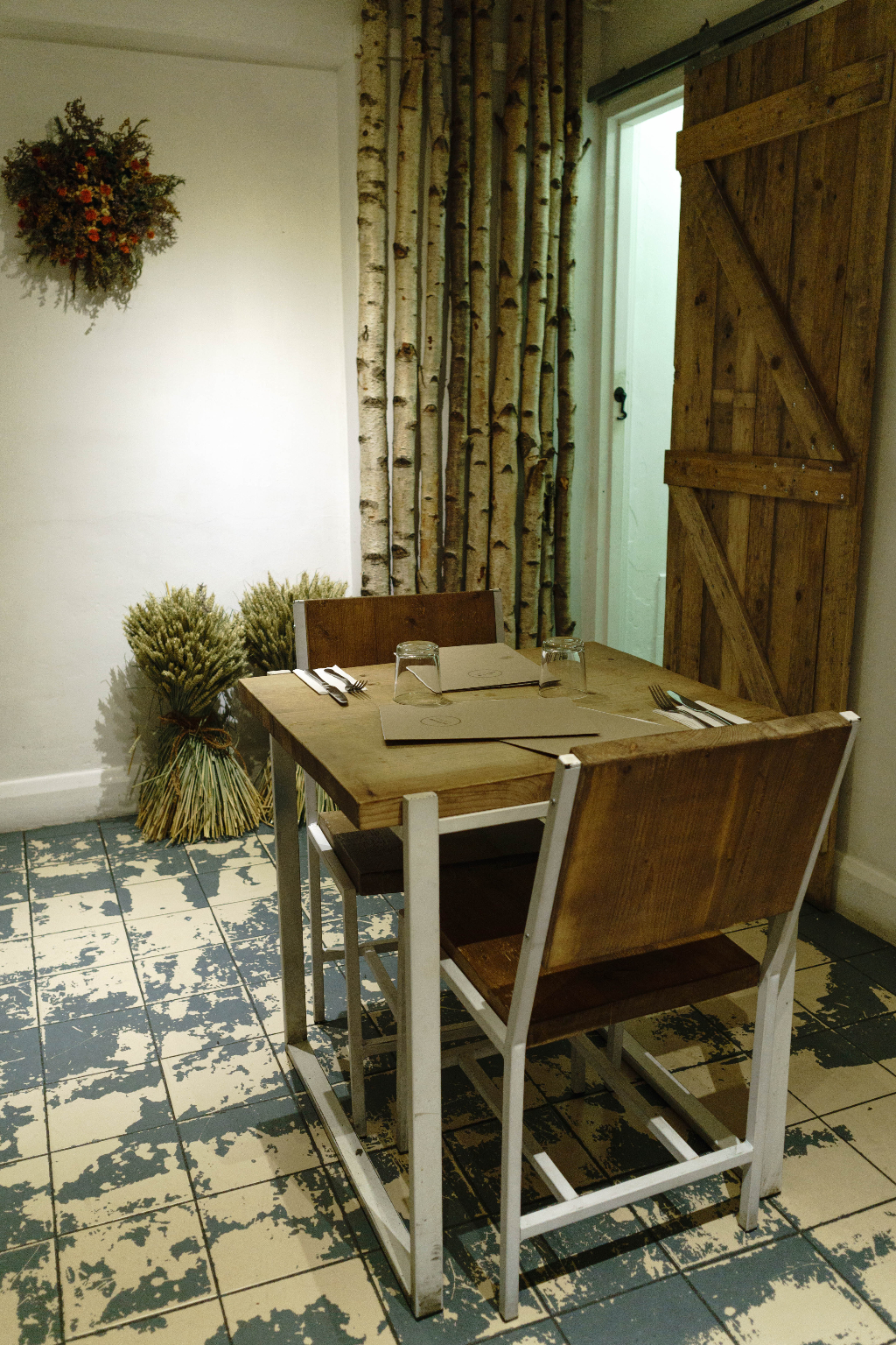 Walking in, the design is simple and the place is welcoming, with an open kitchen permitting a lucky few to see the theatre of their meals being prepared. Downstairs, it’s all bare white walls and light wooden features, with wall decorations adding pops of colour and creating a cosy, autumnal feel (think plant and feather wreaths, twigs and low lighting).