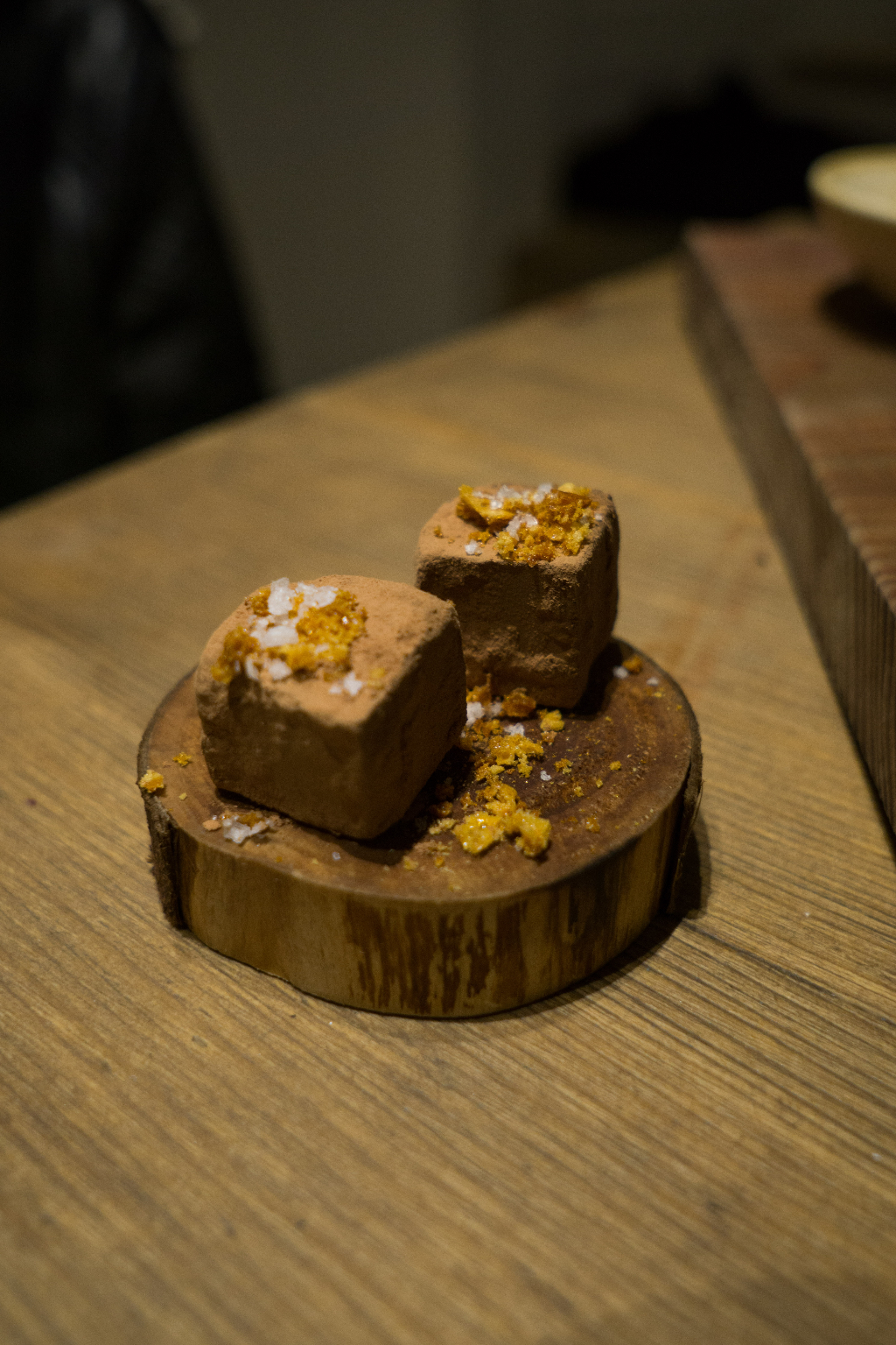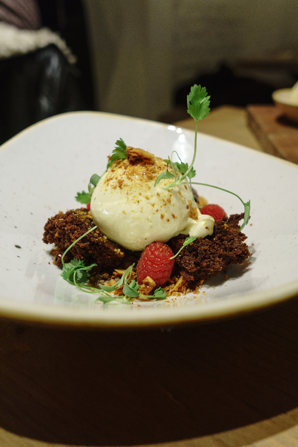 The Berkshire Raspberries, Chocolate and Beetroot Cake, Buttermilk Ice Cream is everything a dessert should be: creamy, crunchy, sweet and indulgent. A chocolate crumb comes topped with a rich brownie-like chocolate cake that is very moreish, broken up by perfectly ripe raspberries that add a jammy flavour. Shavings of crunchy honeycomb add a chewiness that gives the dish a New Zealand hokey pokey feel, especially when eaten with the milky ice cream. A total winner, this is a dessert worth coming back for. Little Caramelised Honey Truffles pack a bite-sized chocolate hit, coated in a thin dusting of high quality cocoa and topped with salt for serious flavour enhancement, while the Toasted Hay Ice Cream Affogato is the ultimate finisher after any meal.