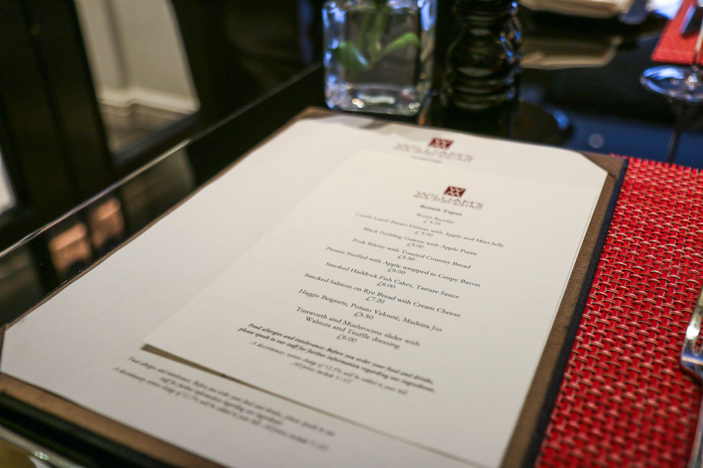 With windows facing the elegant and quiet cul-de-sac of St James’s, it feels good to sit on the leather sofa bench of this small but vibrant room. The menu has nine courses to offer and the most expensive comes at £7.20. While we consider what to order, a lively hotel guest sits alone next to us and tells the manager he’s never heard of British tapas before, and is excited to try them. That is probably the sign that this idea works.