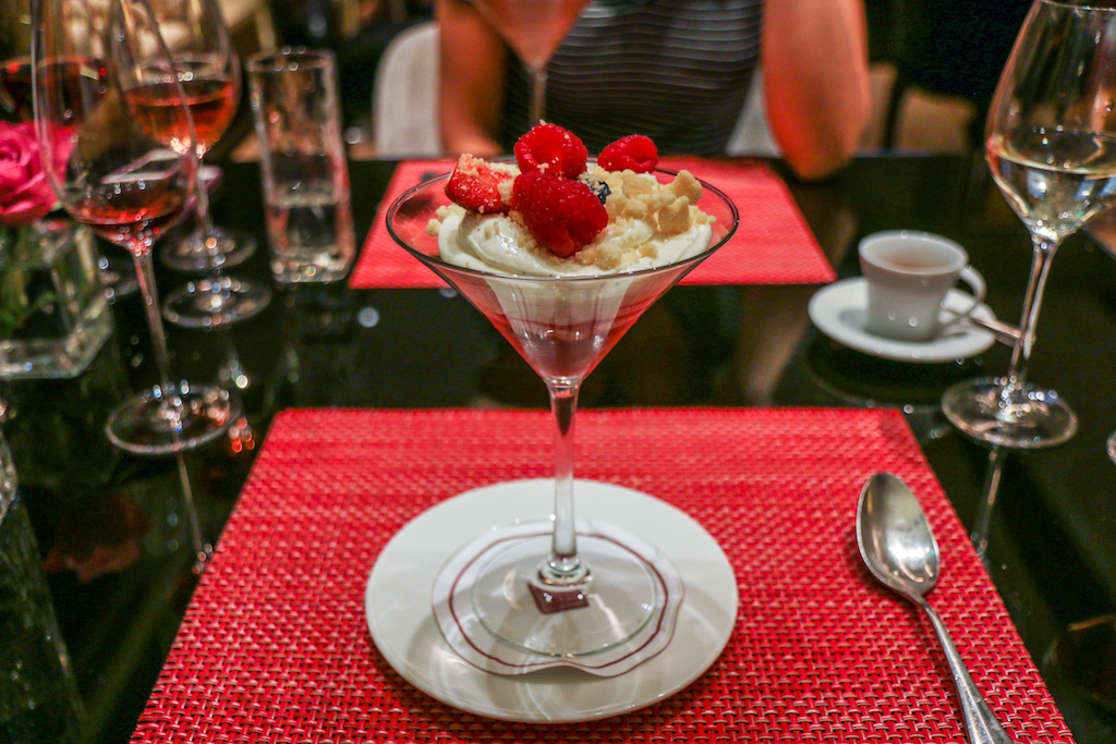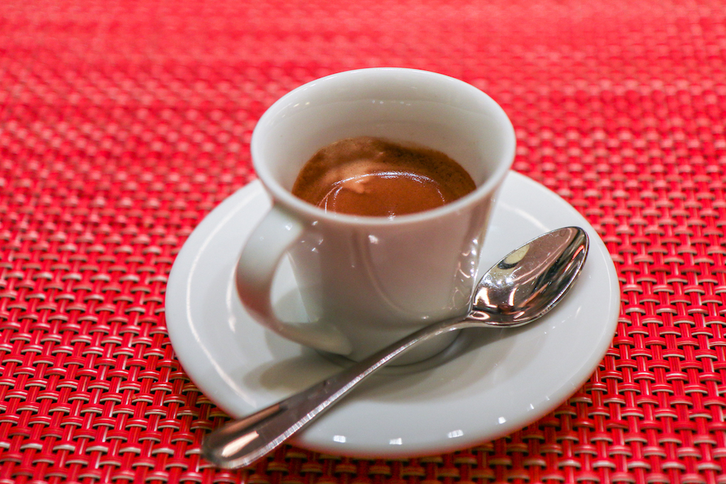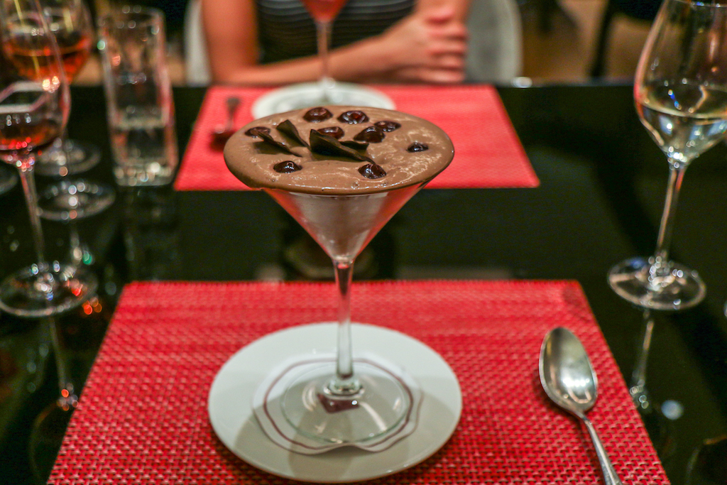 The puddings available are those of the standard bistro menu. It’s a selection of six (including the cheese platter) and we try the Milk Chocolate Mousse with Cherries in Kirsch and the Soaked Savarin with Raspberry. It’s clear by the look of them that these aren’t the refined courses someone might expect, but more sugary and filling bar-style desserts.