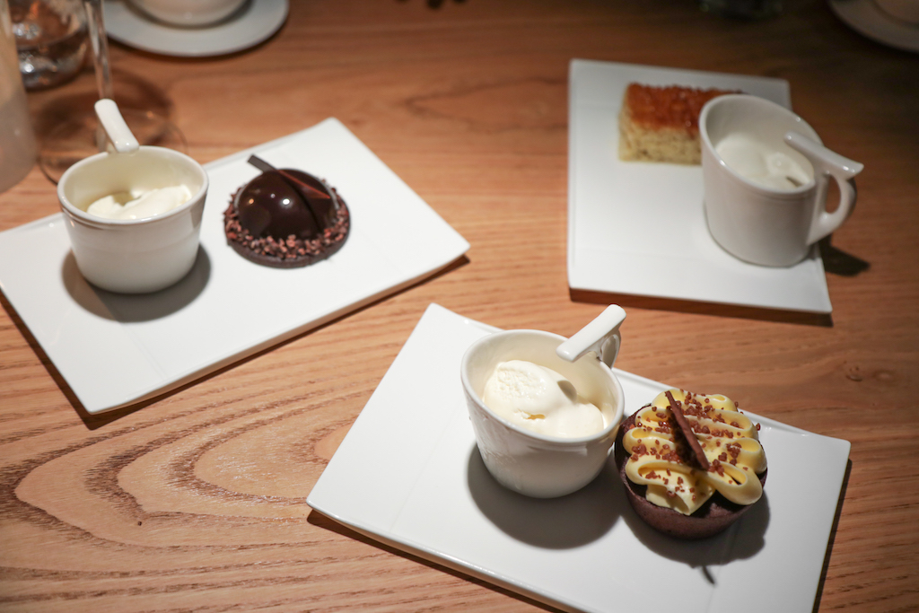Next to the kitchen there’s a dessert trolley that diners can’t keep their eyes off of. Consistently with the rest of the menu, the number of choices is impressive, which inevitably prompts happy guests to come back and try more of Atxa’s cuisine. While the Chocolate and Pear Cake and Hazelnut Praline is not better than a pudding taken from an M&S shelf, the Dark Chocolate with Biscuit Crumble, and the Basque Ice Cream all the courses are served with, are delightful.