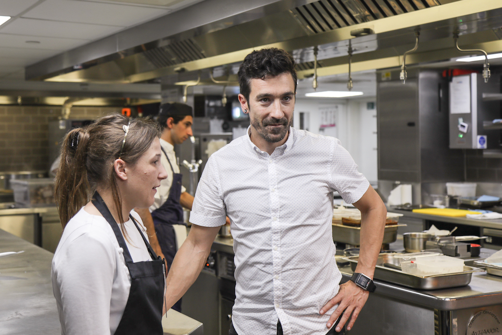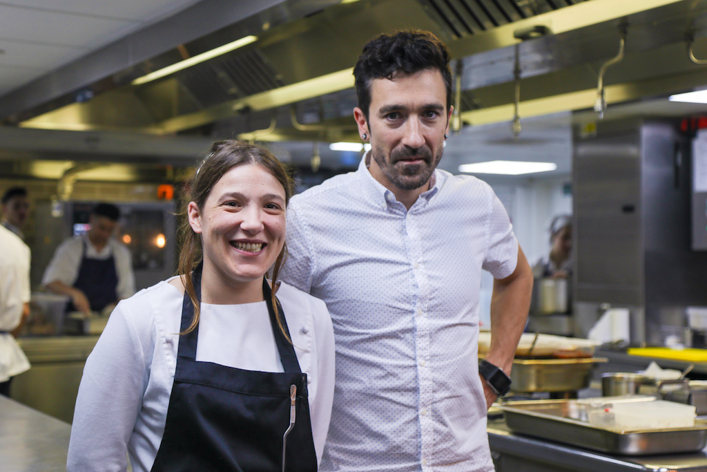 Eneko Atxa looks shy and humble as he introduces himself and his right-hand woman Edurne Martin Delgado. He hasn’t turned 40 yet but, not too far from London, he runs three-michelin-starred Azurmendi, voted 16th best restaurant in the world last June in New York. He’s all smiles but he rapidly turns focussed and demanding when he steps into his kitchen. Hailing from the Basque city of Bilbao, Atxa relies on chef Delgado – with whom he worked for 11 years –  when he is not in the UK