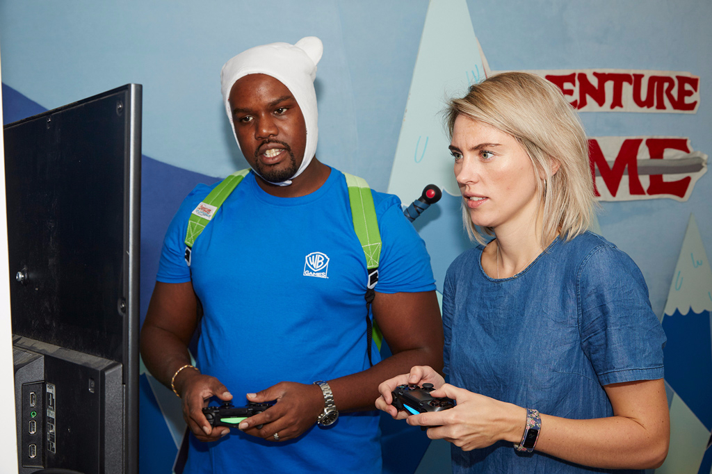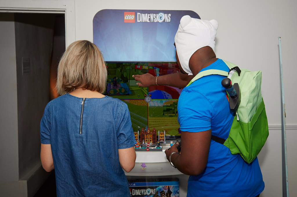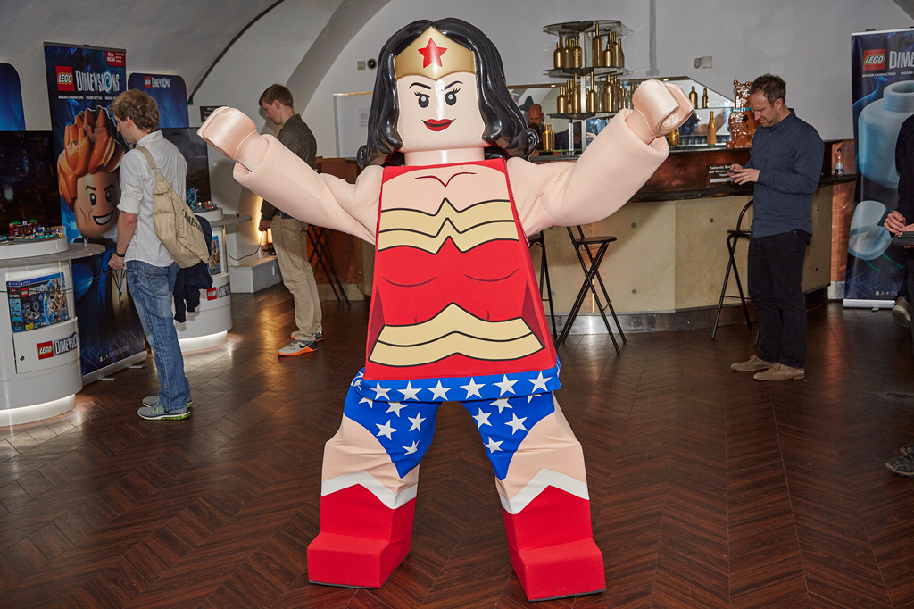 We were treated to hands-on gameplay time with the LEGO Dimensions expansion content in an immersive environment, playing the game within the iconic locations from the blockbuster film and TV titles that are featured. We climbed down into a suitcase from Fantastic Beasts and Where to Find Them, were in a cinema crawling with Gremlins, hung horizontally from a harness Mission: Impossible style, played fancy dress in the characters of Adventure Time and crawled into the cupboard under the stairs in Harry Potter’s neglected hovel – each time to play the game in its unique setting. Visitors were also introduced to life-size versions of The LEGO Movie characters, with Wonder Woman making a particular song and dance for the audience and Mr T from the A-Team could be found casually playing at one of the game stands.