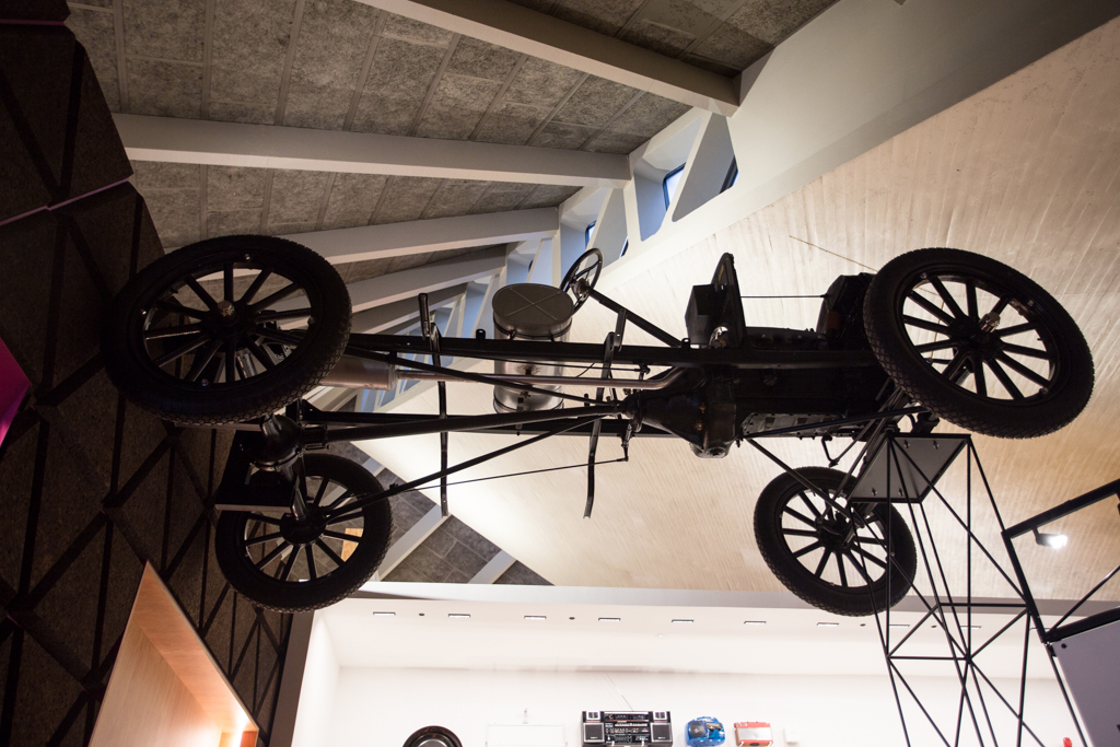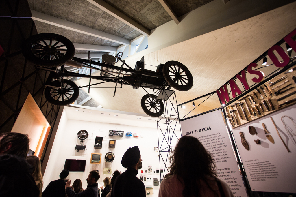 This is only thrown into sharper relief by the groundbreaking and daring designs evident in many of the exhibits on show. Some of these objects have become so eponymous that we often don’t even think of them as design any more. A Model T Ford, for example, is exhibited alongside a Tesla driverless car, showcasing innovation and design across decades. There are some stunning examples of design gems from the more expected areas of furniture and fashion, but also some brilliant objects which show the development of sound and technology, such as a My First Sony tapedeck and early Apple Mac computer.