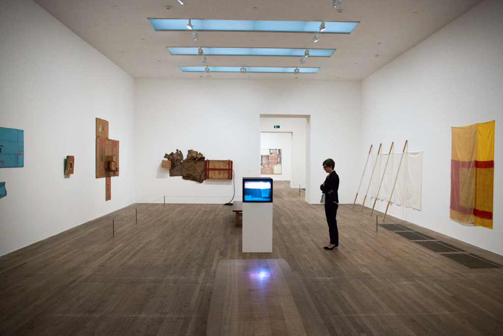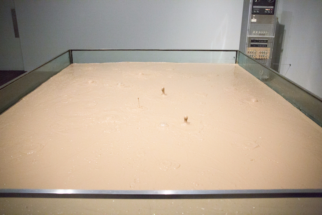 The latter part of the exhibition emphasises the artist’s embracing of technology, working with engineers to explore what he saw as an “adventure of the modern world”. Mud Muse (1968-71), containing 1,000 gallons of bubbling Bentonite clay mixed with water, is a vast, swamp-like incarnation of paradoxically complex technology while Oracle (1962-5), a five-part found-metal assemblage, is an imposing physical embodiment of his interest in object and action. However, pieces such as Cardboards 1971-2, the Gluts series (1986-9, 1991-4) of discarded gas station signs and car parts reflecting the collapse of the American oil industry, and his studies of life in Cuba, Tibet, China and Chile in the late 80s show a more bleak view of modernisation through globalisation.