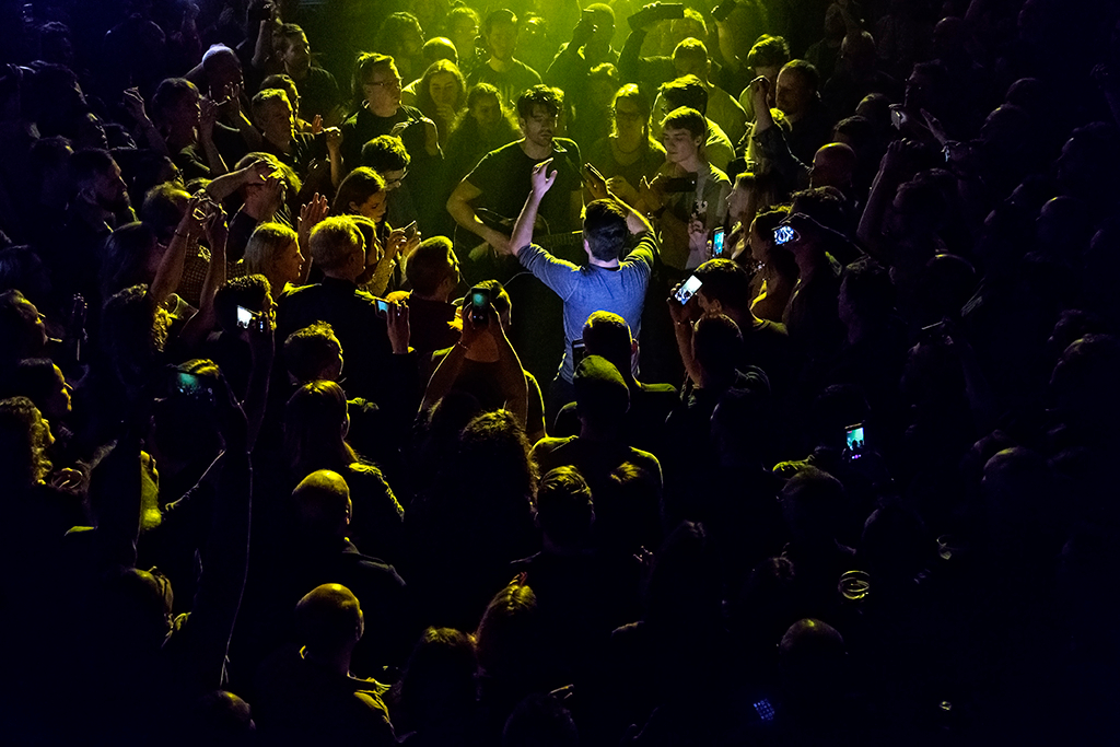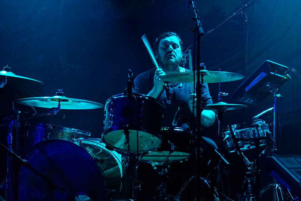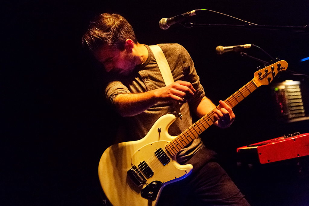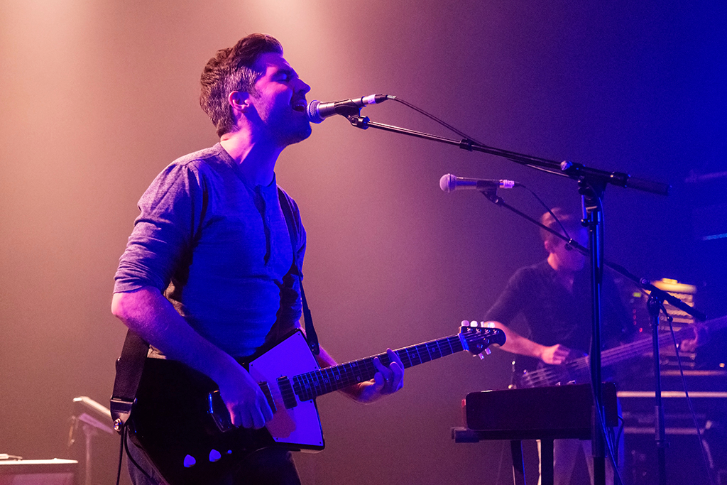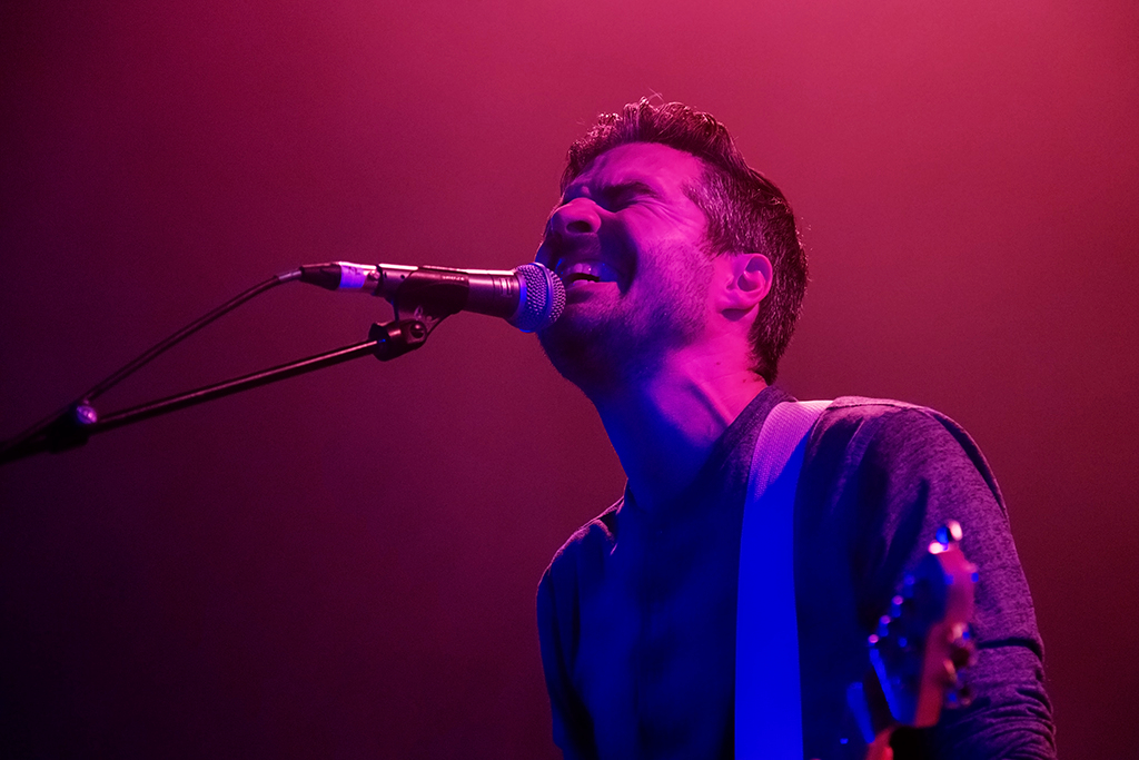 Appropriately for a band that’s seeped into the public consciousness more through their inclusion on movie, TV, and video game soundtracks than breakthrough chart success, opening numbers Let It Go and Big Ideas combine to establish an atmospheric mood that remains in place throughout the 90-minute set. With the influence of more famous noughties indie acts such as Coldplay and Biffy Clyro immediately apparent in the woozy waves of echoing melodies and sweetly pealing harmonic guitar that singer Nathan Nicholson’s falsetto soars over, there’s a comfortable familiarity to The Boxer Rebellion’s sound. This accessibility does perhaps come at the expense of much in the way of sonic variety. The unilateral MOR tone seems to keep the not-quite-sell-out crowd in a quietly contemplative state for a while before they fully warm up.