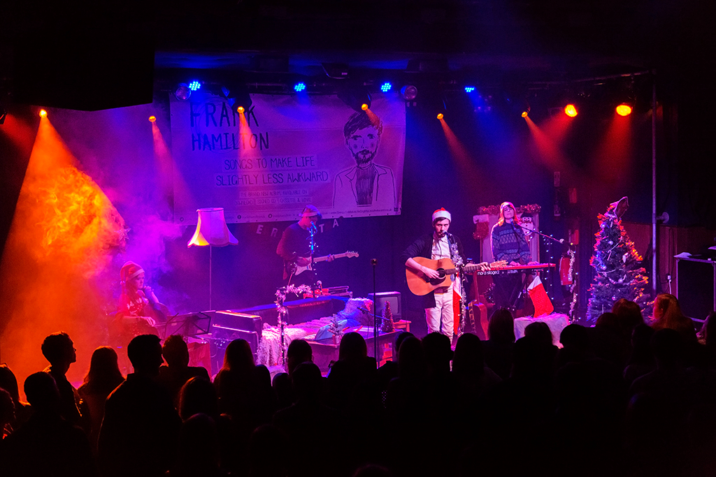 Best known for his #OneSongaWeek project back in 2012, Frank Hamilton is on tour again promoting his new album Songs to Make Life Slightly Less Awkward. Delayed from his original tour date in June, the crowd have eagerly awaited this gig for some months. Filled with young and old alike, the turnout is a testament to the musician’s broad appeal.