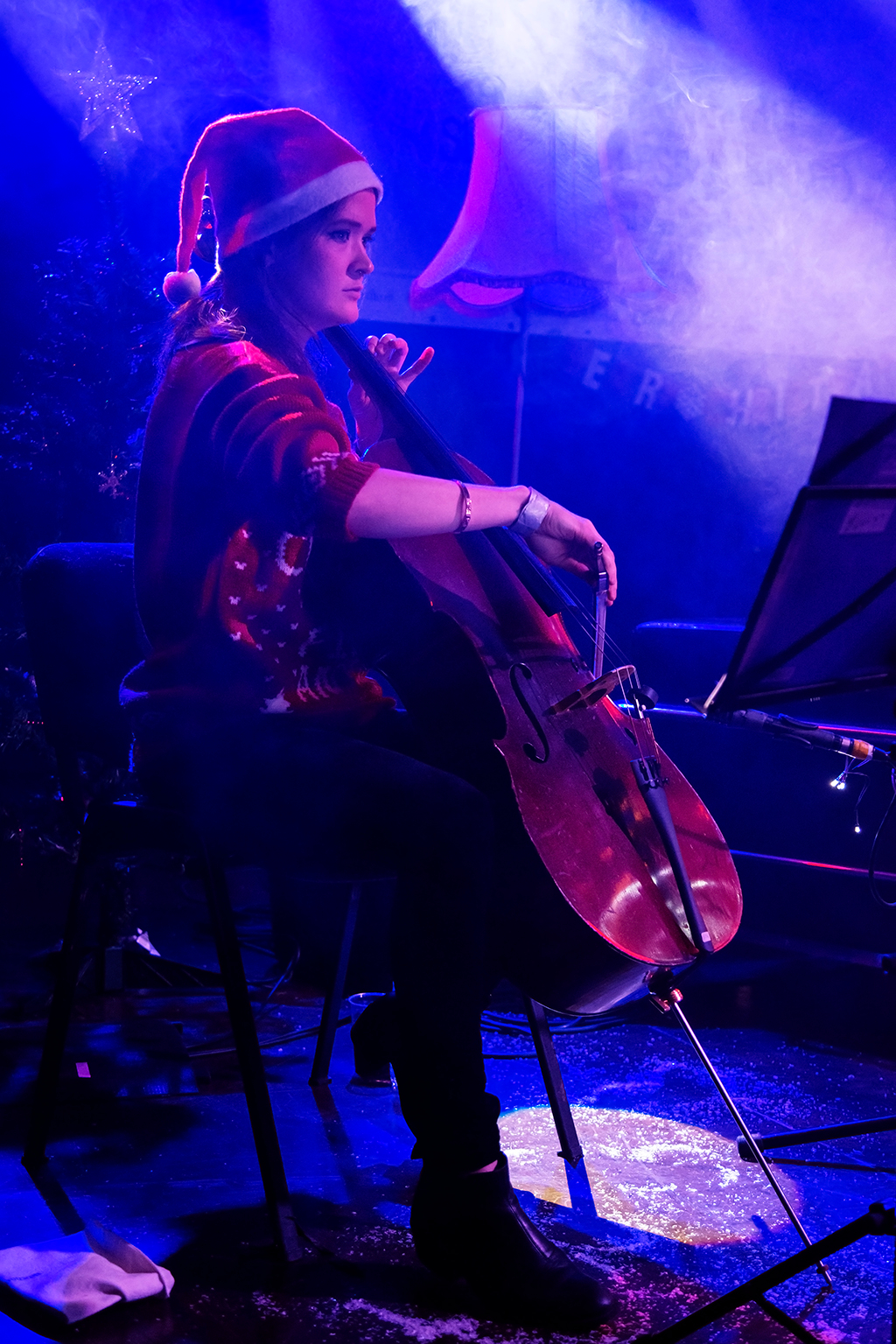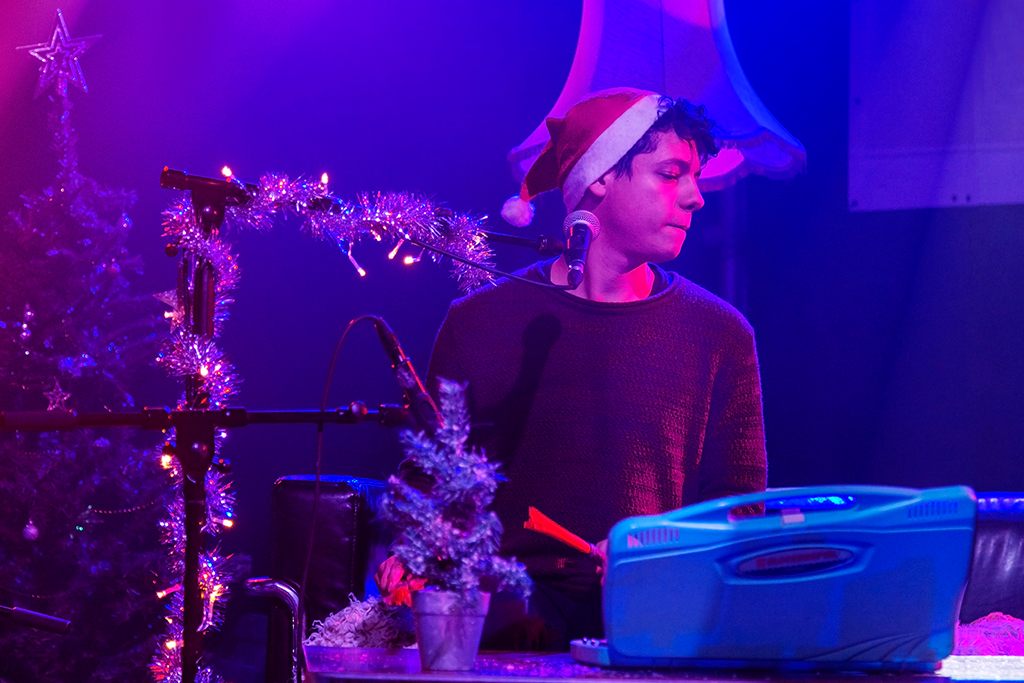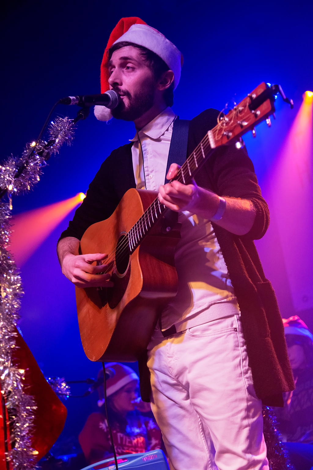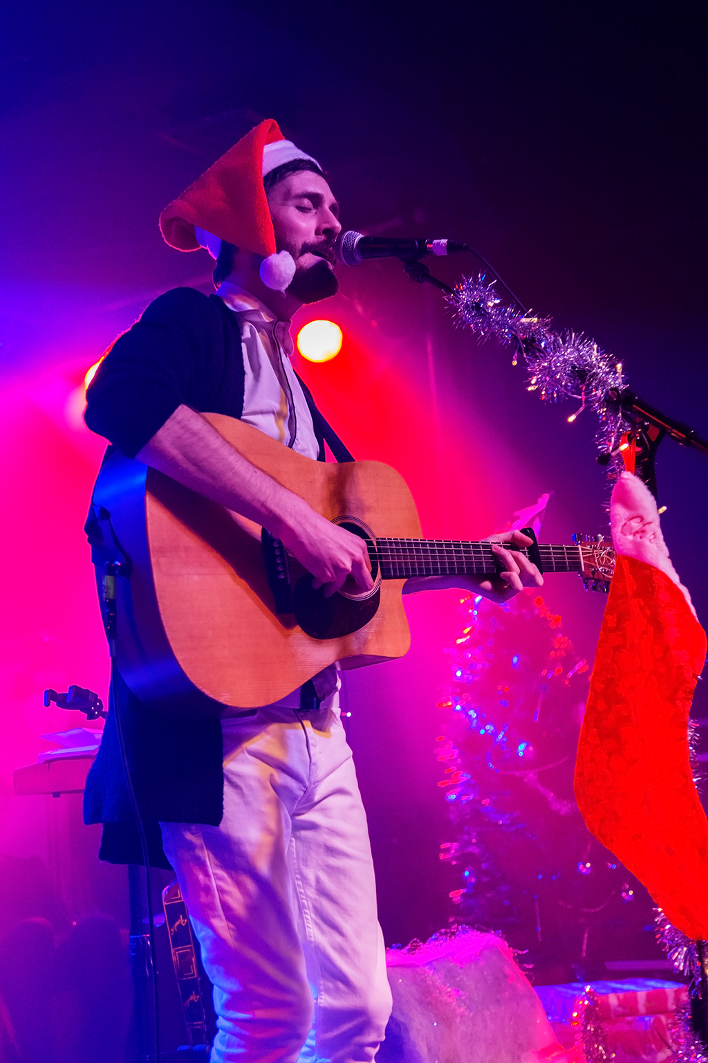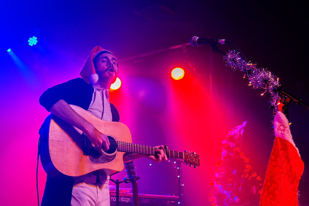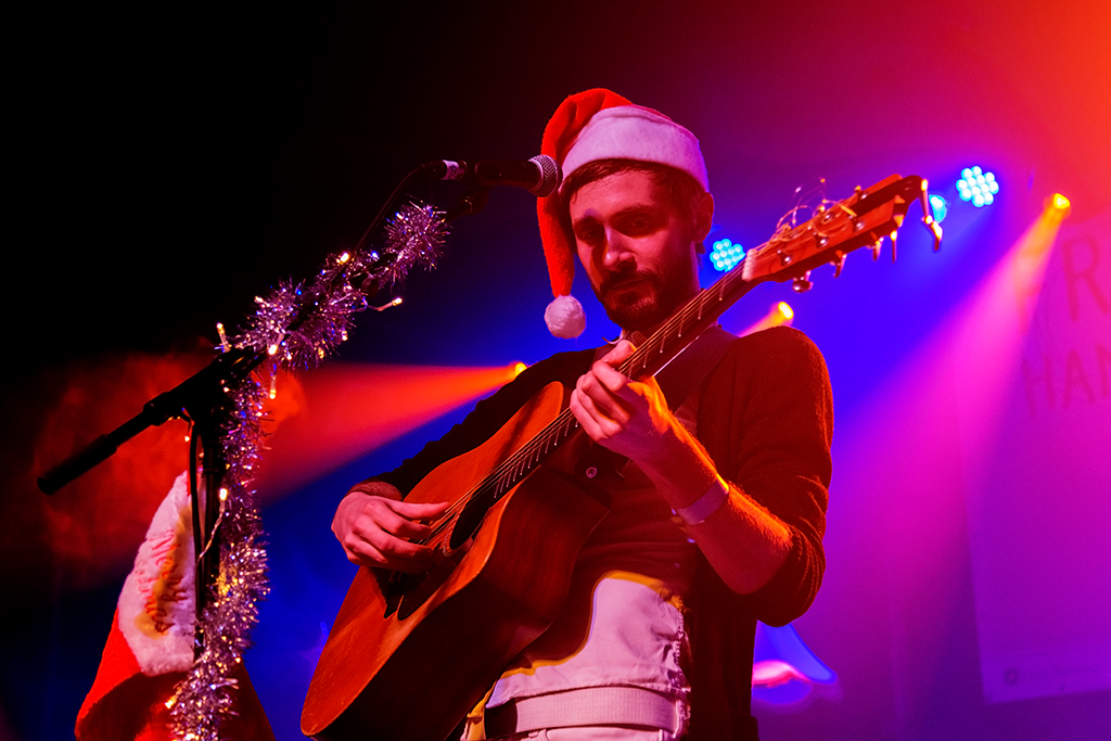 Warmed up and joined by an eclectic group of fellow singer-songwriters, the stage is set for a heart-warming Christmas-themed evening. The party decorations are out, the walls decked with festive props and heads with Santa hats. In all honesty it feels more like a group of friends and family getting together for a drink than a gig per se. Combined with Hamilton’s offbeat comedy between numbers and his earnest performance it all makes for a fun and light-hearted concert, if not the most musically powerful.