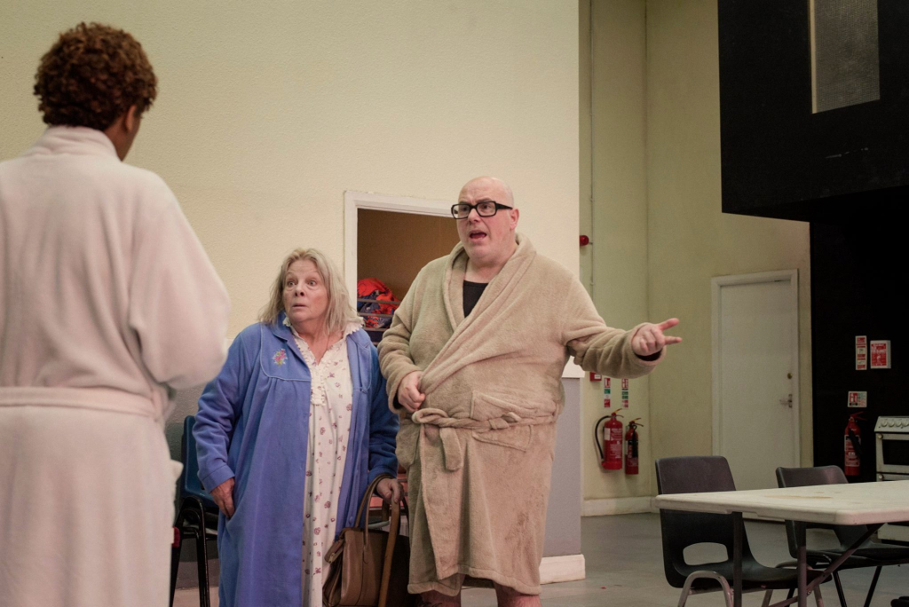 The most immediately striking aspect of the production is Natasha Jenkins’s design. Stained walls and grubby furniture (though furniture suggests a homeliness this space is utterly devoid of) dominate the communal area of the setting, with numbered doors allowing only the briefest glimpses into the tiny bedrooms shared by those who live there. Scored by nothing but the ambient noise of people trying to go about their lives, the lines between stage and seating are then dissolved so at times one becomes the other. This effect is sustained by Marc Williams’s stark lighting, which drags the audience into the same atmosphere as the actors.