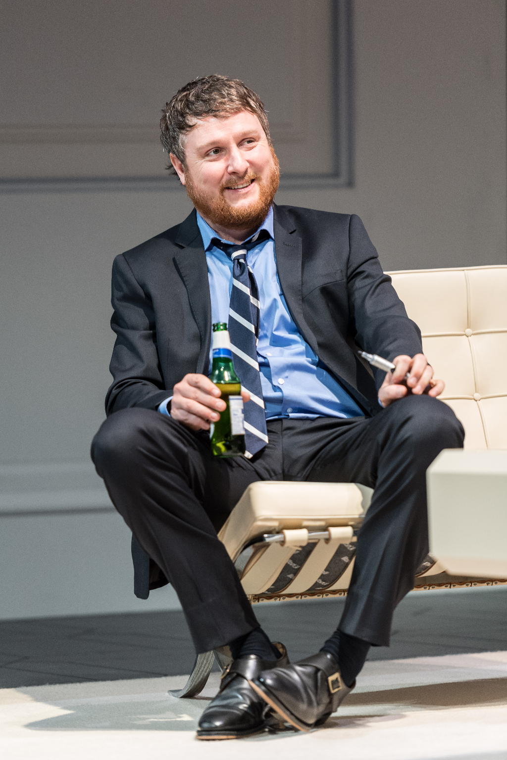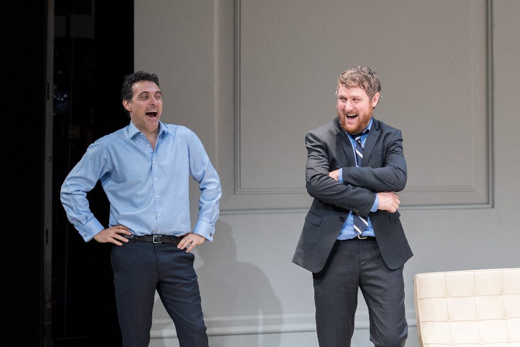 This 2016 version of Art does flirt with relevance. In a year defined by extreme opinions it’s almost too easy to place each character on the political spectrum. Serge is the smug liberal, baffled at anyone who can’t grasp his version of “modernism”; Marc is the rage-filled man who feels cast aside by a world he is unable or unwilling to understand; and Yvan is in the middle, one of the many undecided that opt out of offering an opinion entirely. Yet, one suspects this is more brought to the play by a politically weary audience than elicited by the Old Vic’s fun, if somewhat pointless, revival.